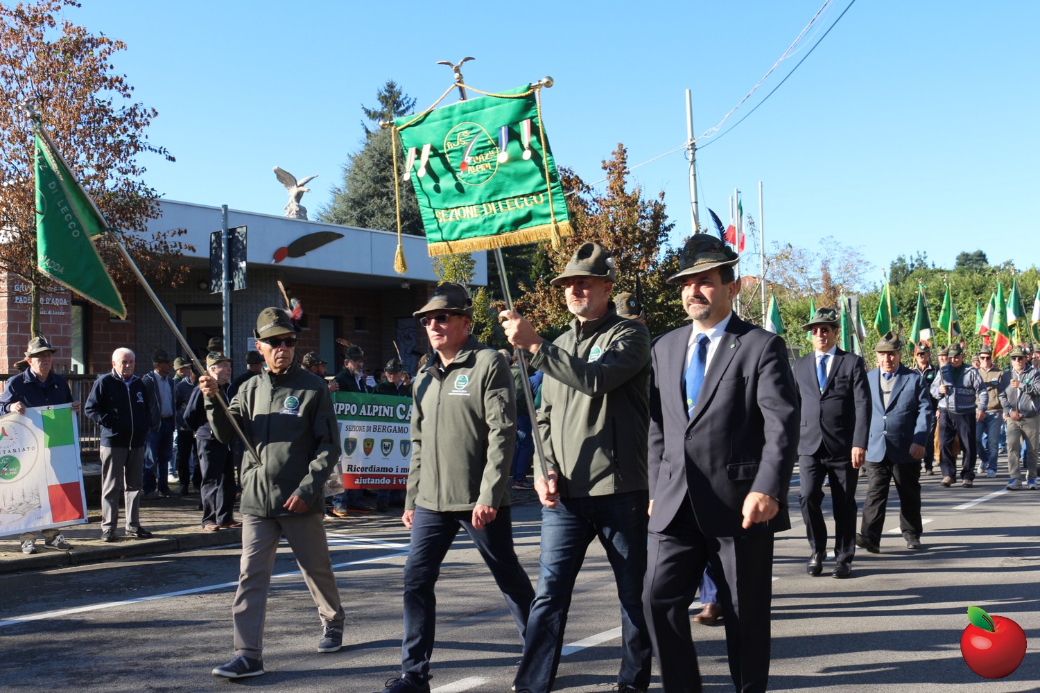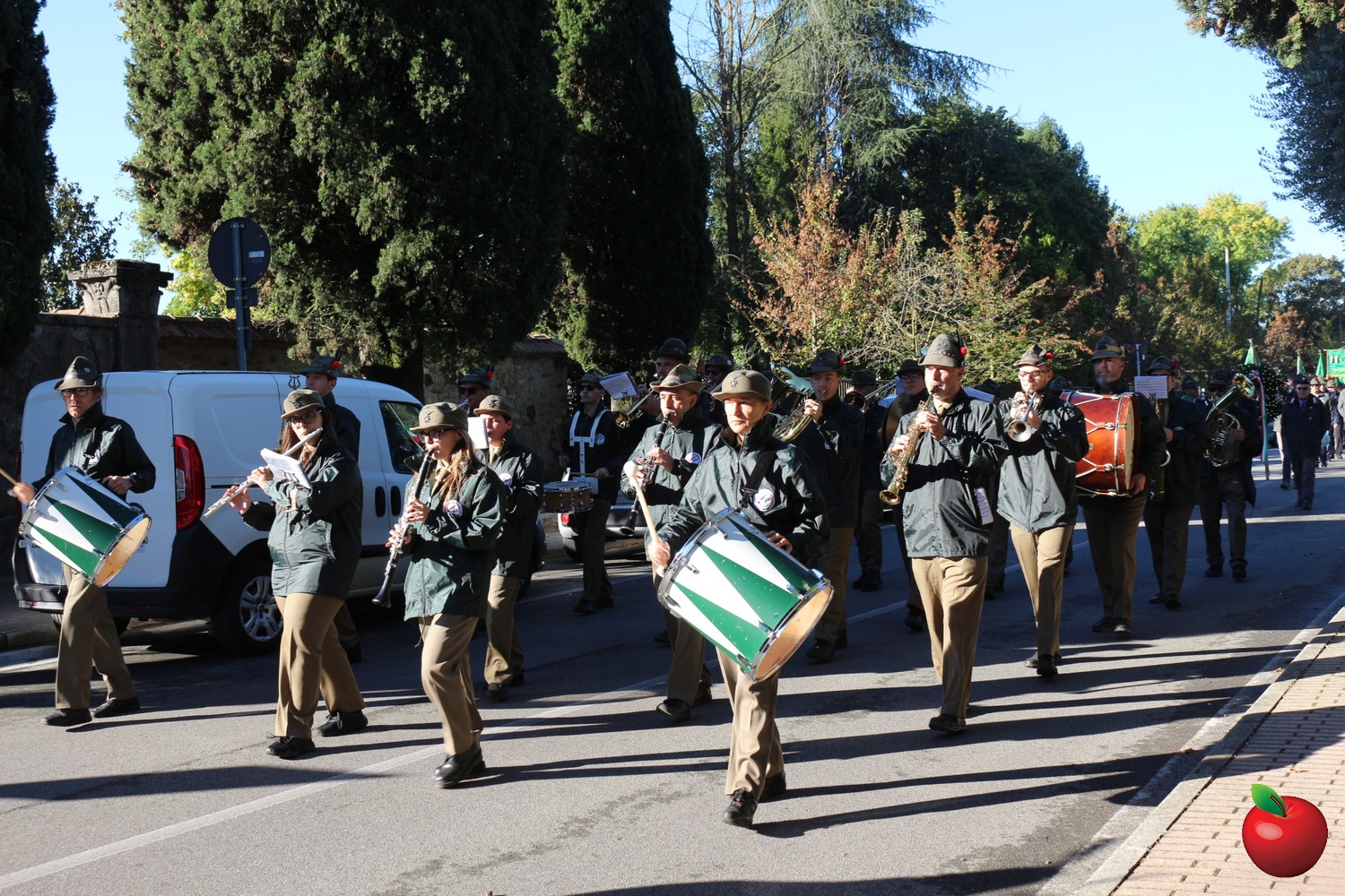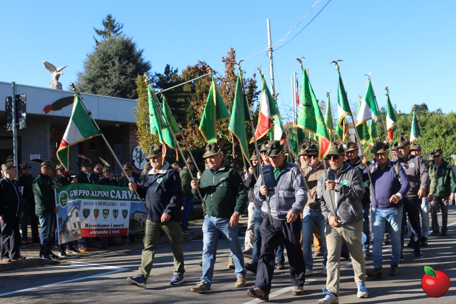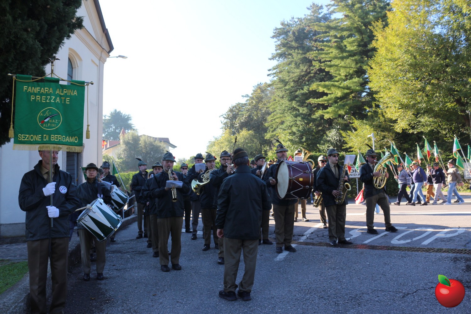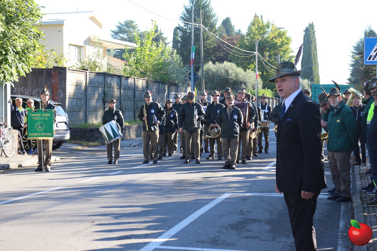 Sin dalle prime ore del mattino, le penne nere si sono ritrovate presso la sede di via Airoldi per l’ammassamento, da dove ha preso avvio la cerimonia ufficiale. Dopo l’alzabandiera e gli onori iniziali, il corteo – accompagnato dalla Fanfara Alpina di Prezzate – ha sfilato lungo le vie del paese fino al Monumento ai Caduti di fronte al cimitero, dove è stata deposta una corona d’alloro in segno di riconoscenza e memoria per chi ha sacrificato la propria vita per la patria.