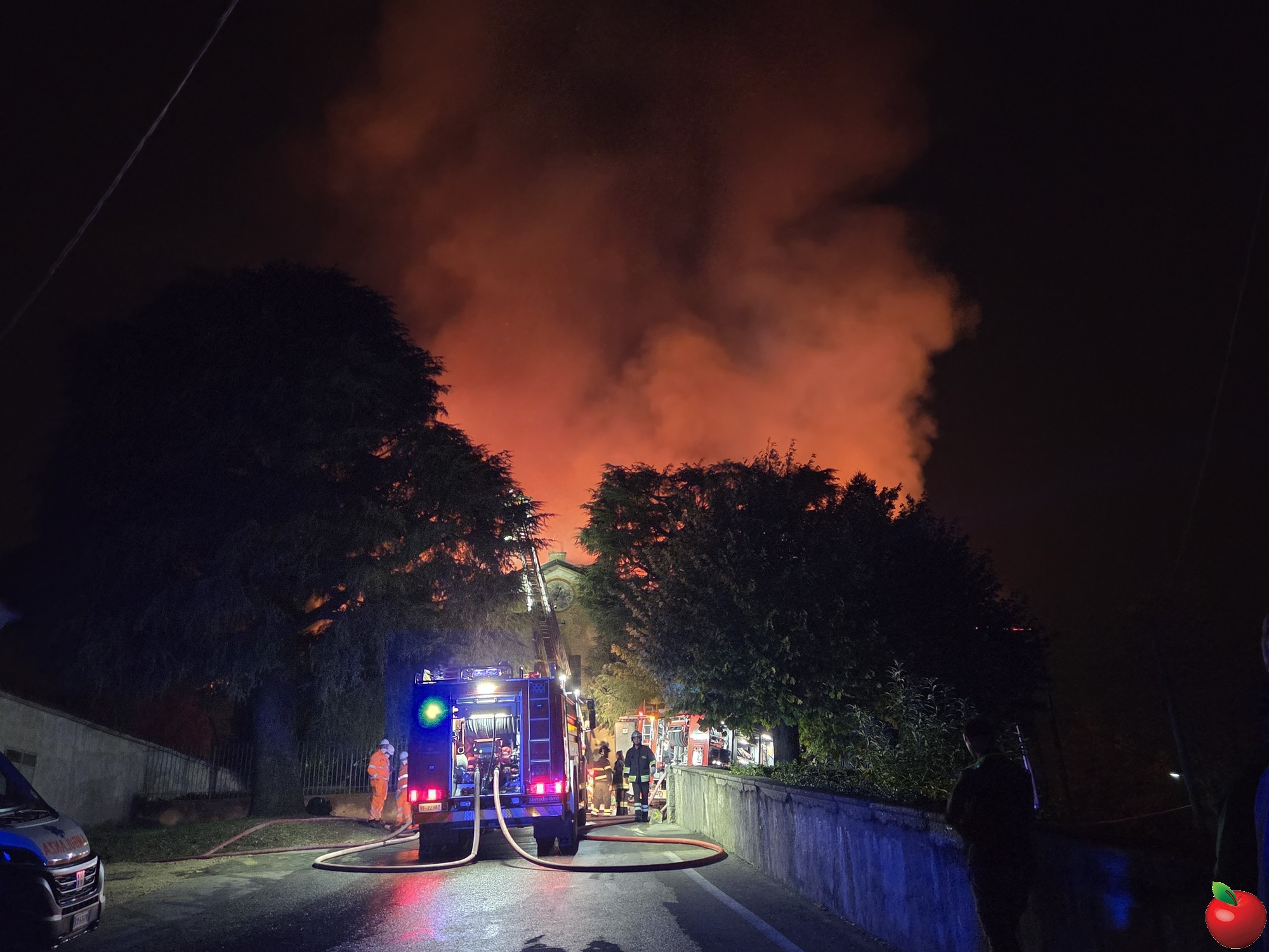 Centinaia di persone, sia dalla provinciale che dai paesi limitrofi hanno visto la “palla arancione” che riluceva nel buio della collina e, data l'altezza dove era posizionata, hanno subito compreso che si trattava del convento. E così si sono riversati sul posto, con problemi non indifferenti per la gestione del traffico e del passaggio dei mezzi di soccorso.