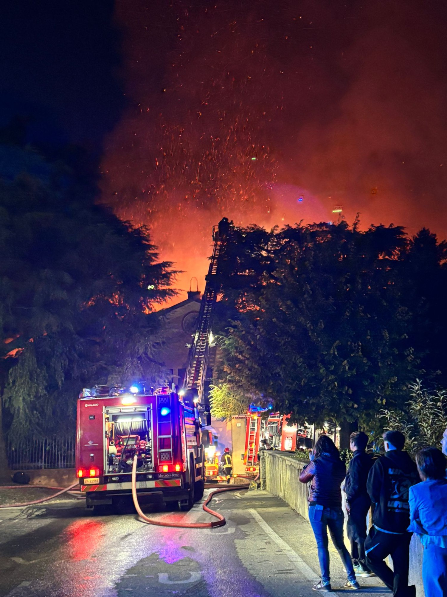 Da Merate, Lecco, Valmadrera, Monza, Como sono stati dirottati i mezzi del 115 con due autoscale che hanno raggiunto la sommità dell'edificio e rovesciato acqua sulle fiamme. Protetti dallo speciale equipaggiamento i vigili del fuoco hanno lavorato senza sosta per ore, alternandosi e cercando in tutti i modi di arginare lo spargersi delle fiamme ma la situazione è apparsa da subito in tutta la sua gravità.