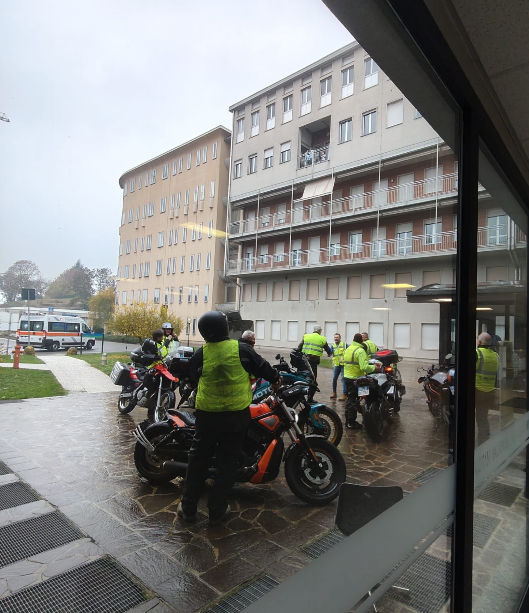Sabato mattina nel piazzale antistante l'ospedale Mandic di Merate, non sono state le sirene delle ambulanze a fare da sottofondo alla giornata uggiosa. Ma il rombo delle potenti dueruote degli "Angeli in moto".