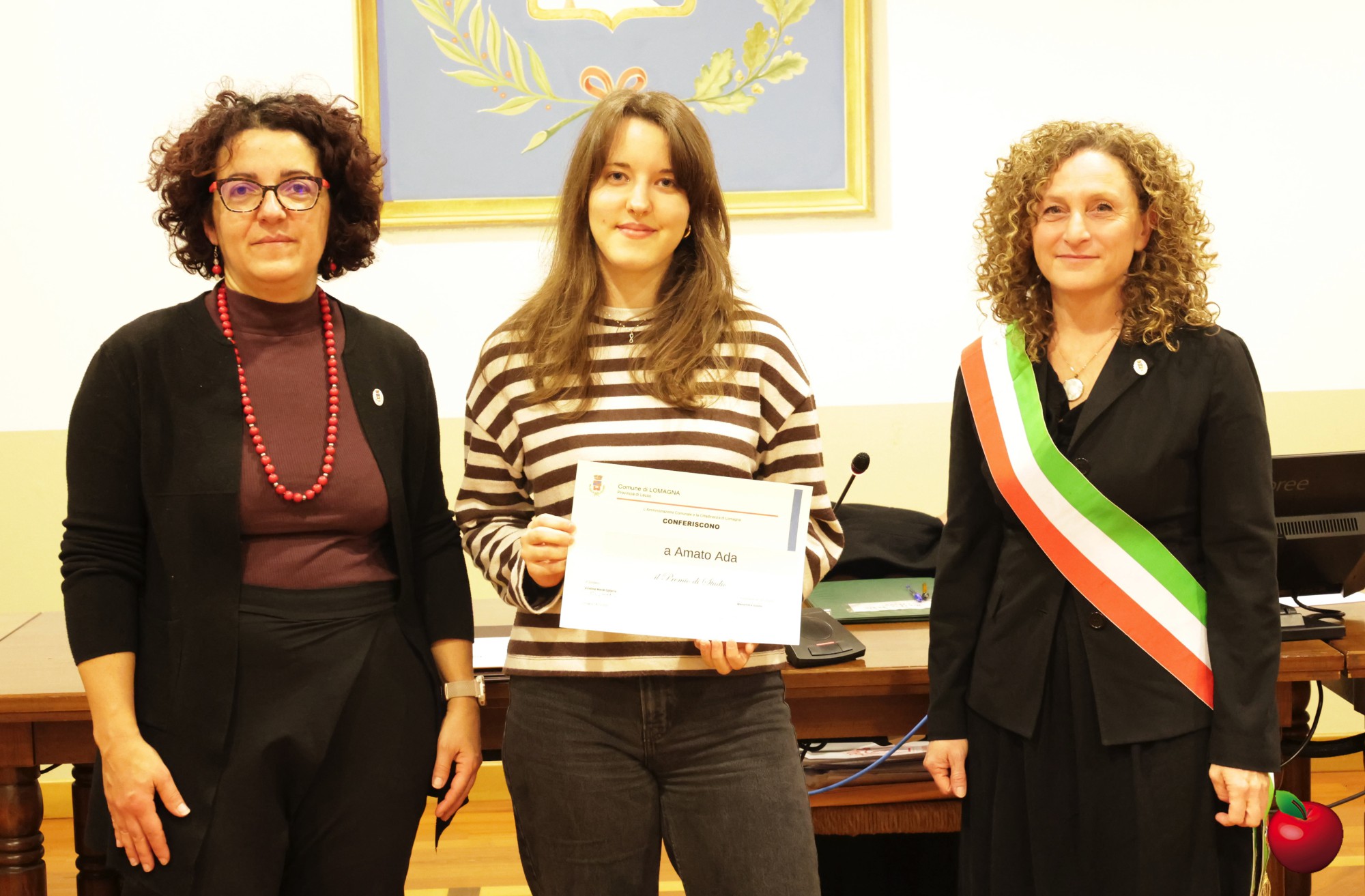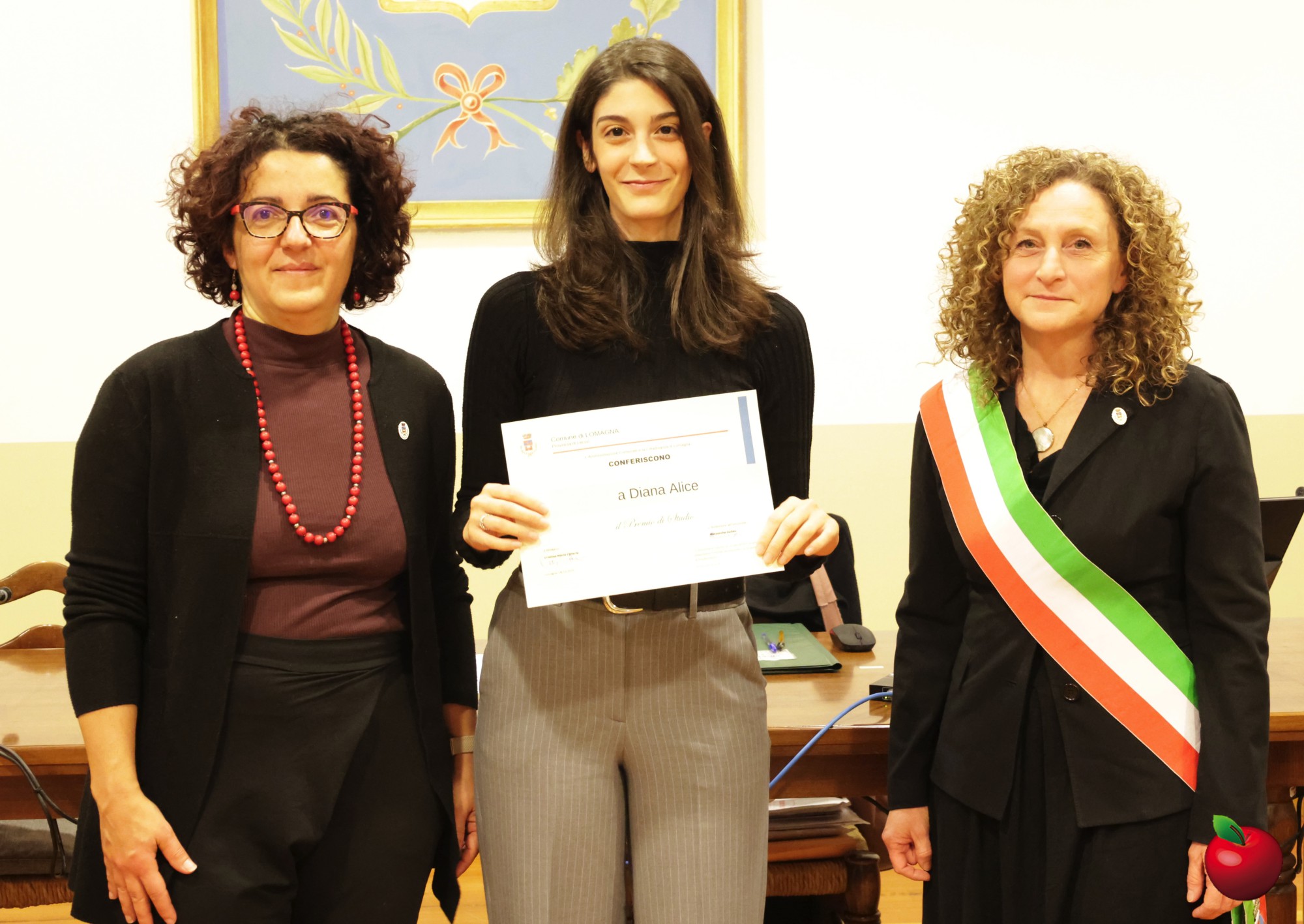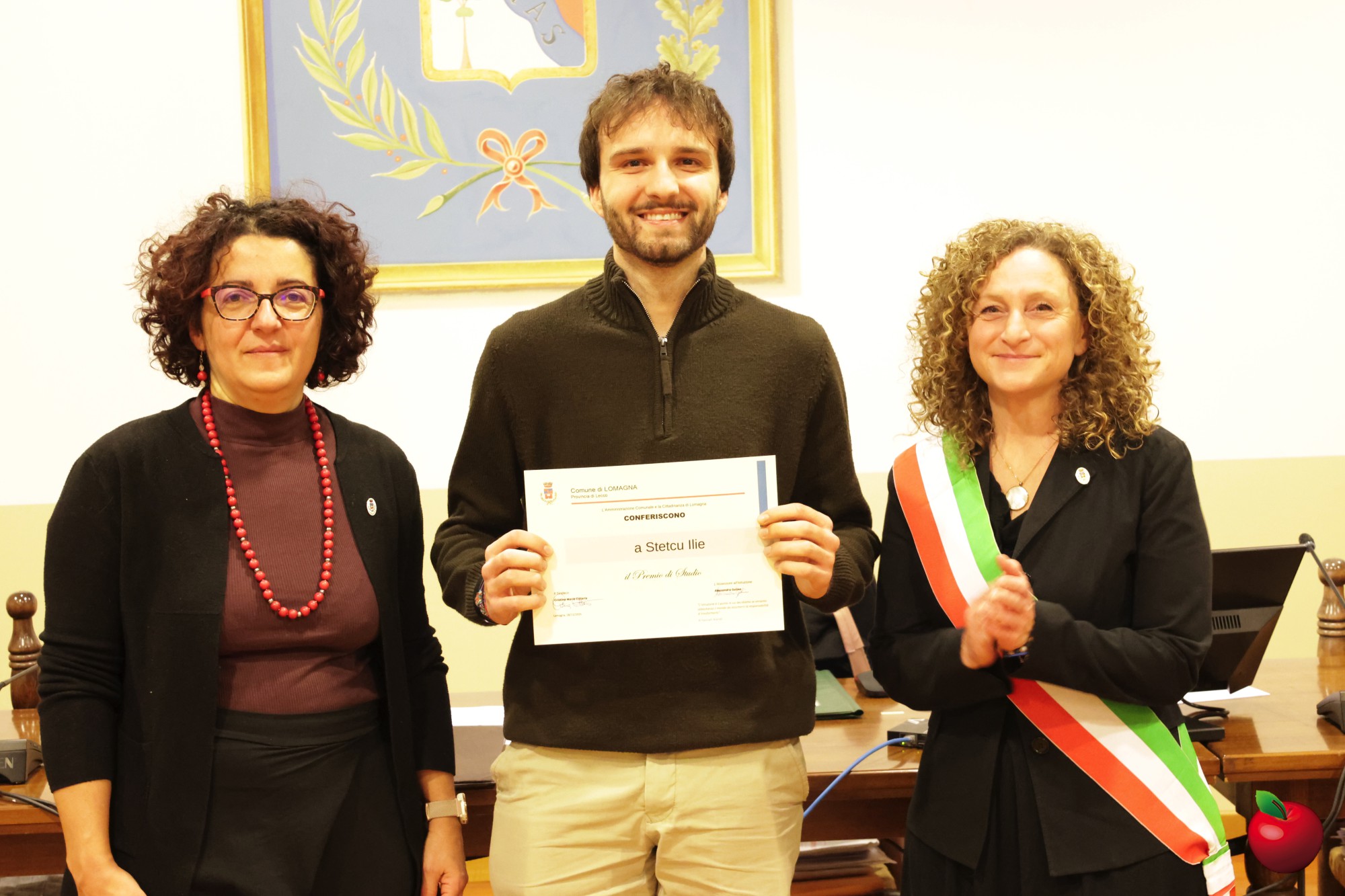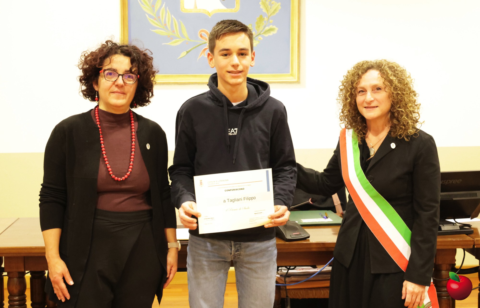 Uno a uno, i giovani premiati sono stati chiamati al centro della sala per ricevere la borsa di studio e l’attestato. Il sindaco ha dialogato con ciascuno, chiedendo quale percorso stessero intraprendendo dopo il traguardo raggiunto. Gli studenti hanno raccontato sogni, scelte, università, lavoro e prospettive, offrendo un quadro di entusiasmo e fiducia verso il futuro. Sono stati premiati per la scuola secondaria di primo grado Tagliani Filippo; per le scuole secondarie di secondo grado Amato Ada ed Elisa Pulimeno; per i corsi di laurea triennale Flavia Frezzini, Nicole Galetti e Simone Biraghi (assenti alla cerimonia poiché studiano fuori provincia o all’estero); per i percorsi quinquennali o magistrali Giorgia Maria Espinosa Navarro, Ilie Stetcu e Alice Diana. Le loro storie hanno restituito l’immagine di una generazione consapevole, motivata e pronta ad affrontare nuove sfide.