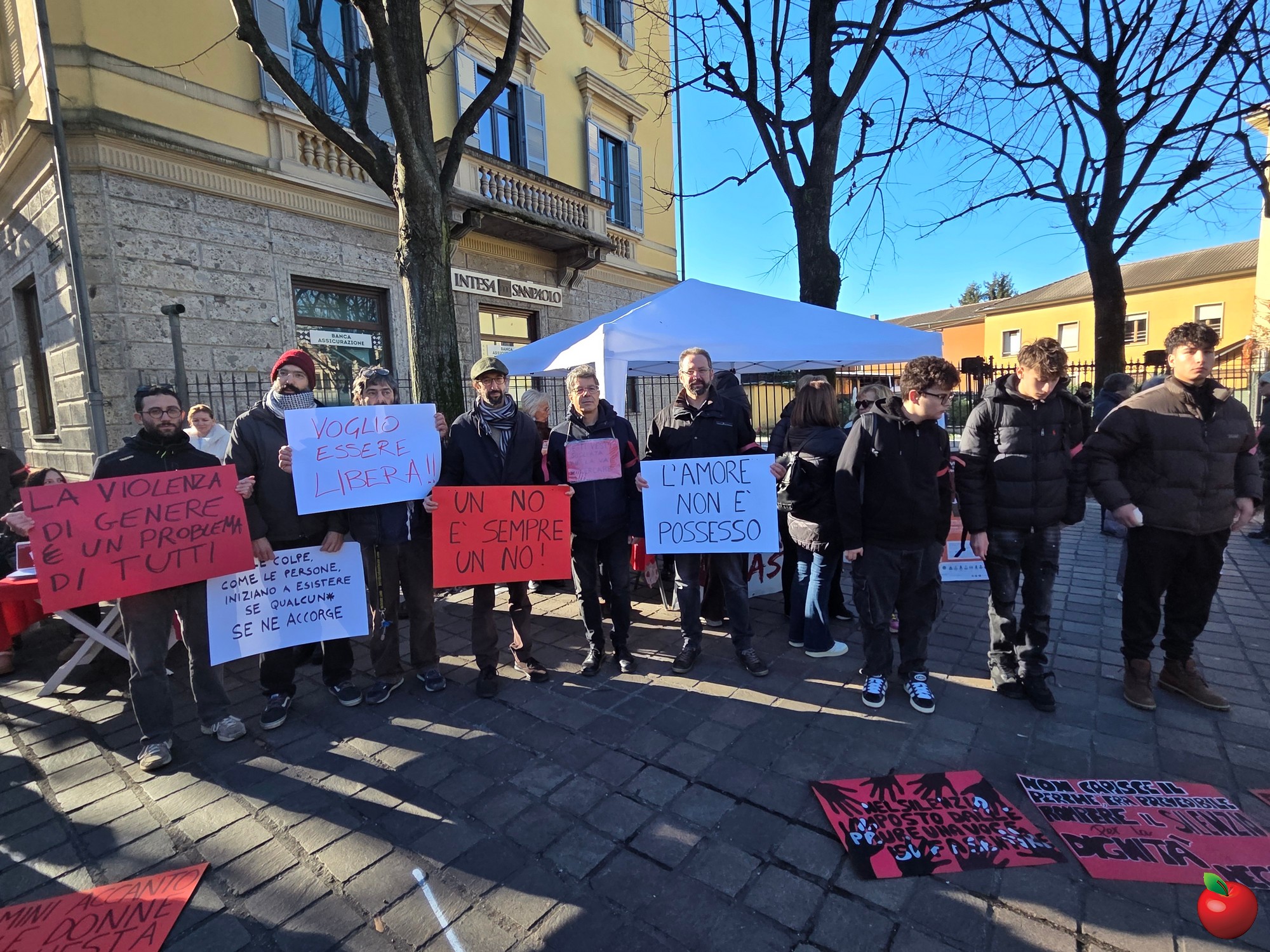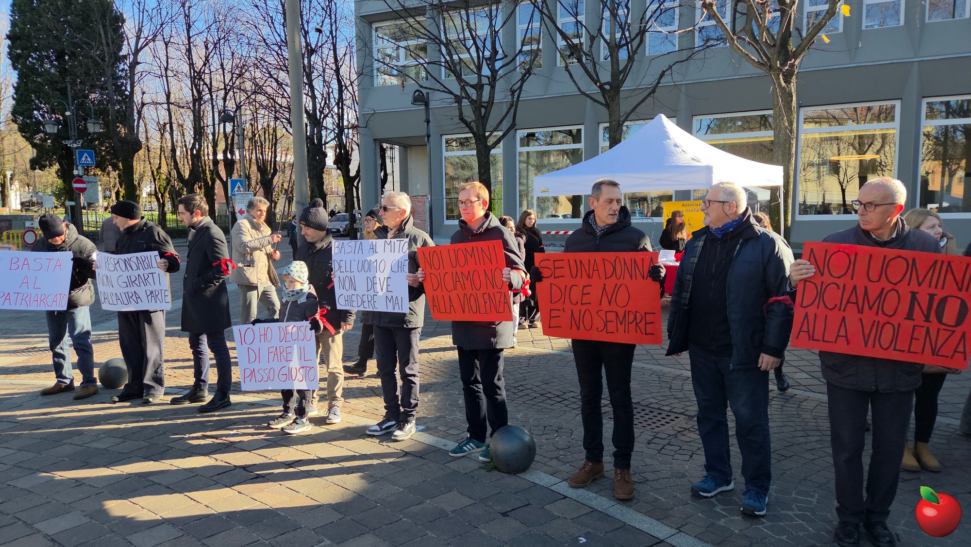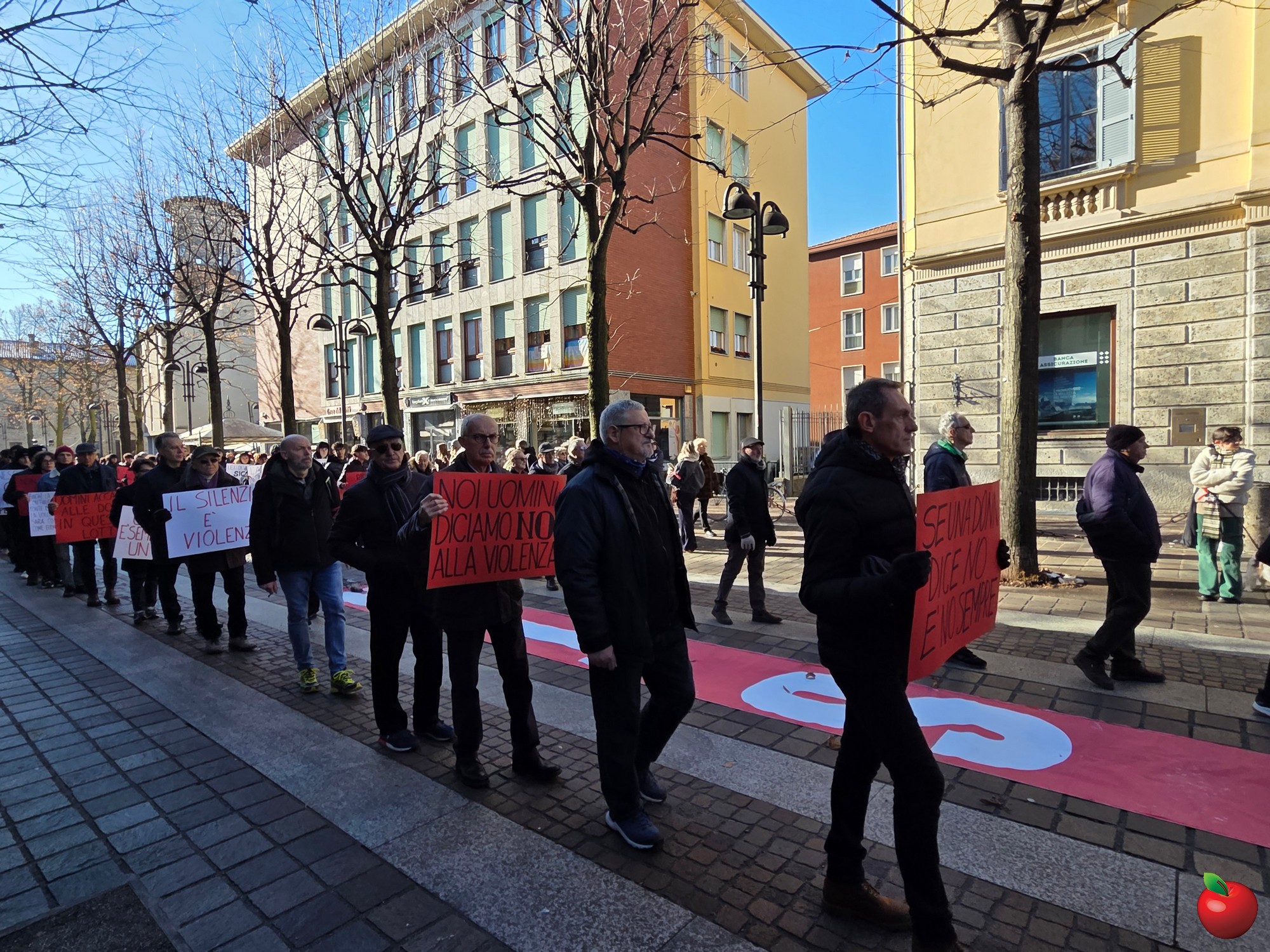 Con cartelli bianchi e rossi, uomini di ogni età, dagli anziani fino agli studenti del liceo Agnesi e dell'istituto Viganò, hanno messo la loro faccia per dire “no” a una delle piaghe del nostro tempo, che ogni giorno racconta di mogli, madri, fidanzate uccise dal compagno.