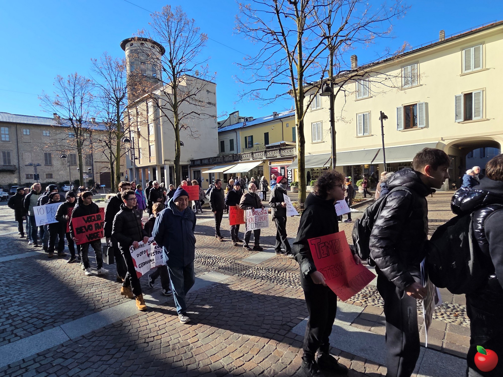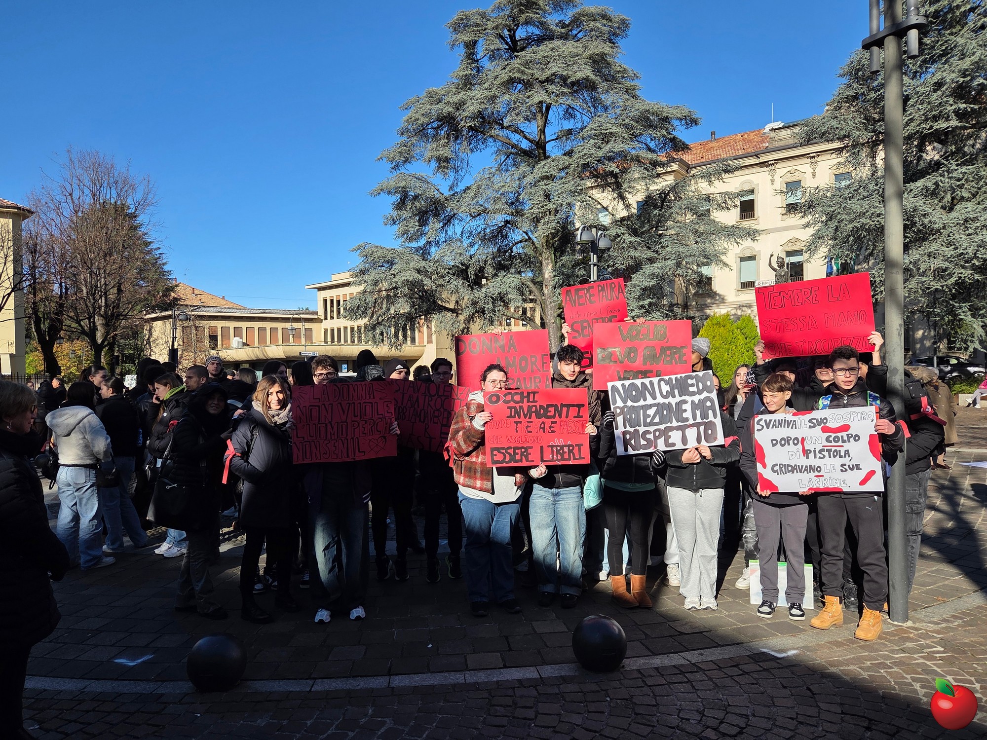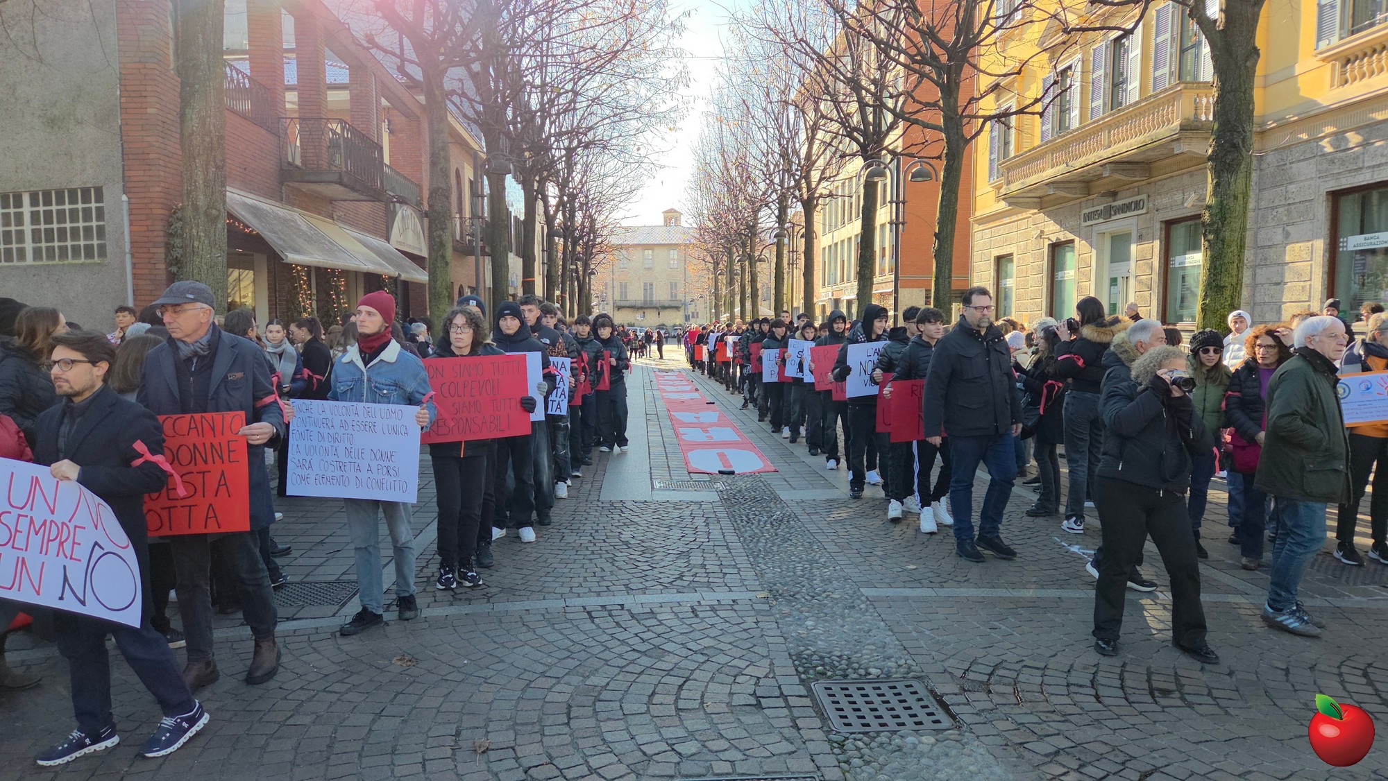 Con cartelli bianchi e rossi, uomini di ogni età, dagli anziani fino agli studenti del liceo Agnesi e dell'istituto Viganò, hanno messo la loro faccia per dire “no” a una delle piaghe del nostro tempo, che ogni giorno racconta di mogli, madri, fidanzate uccise dal compagno.