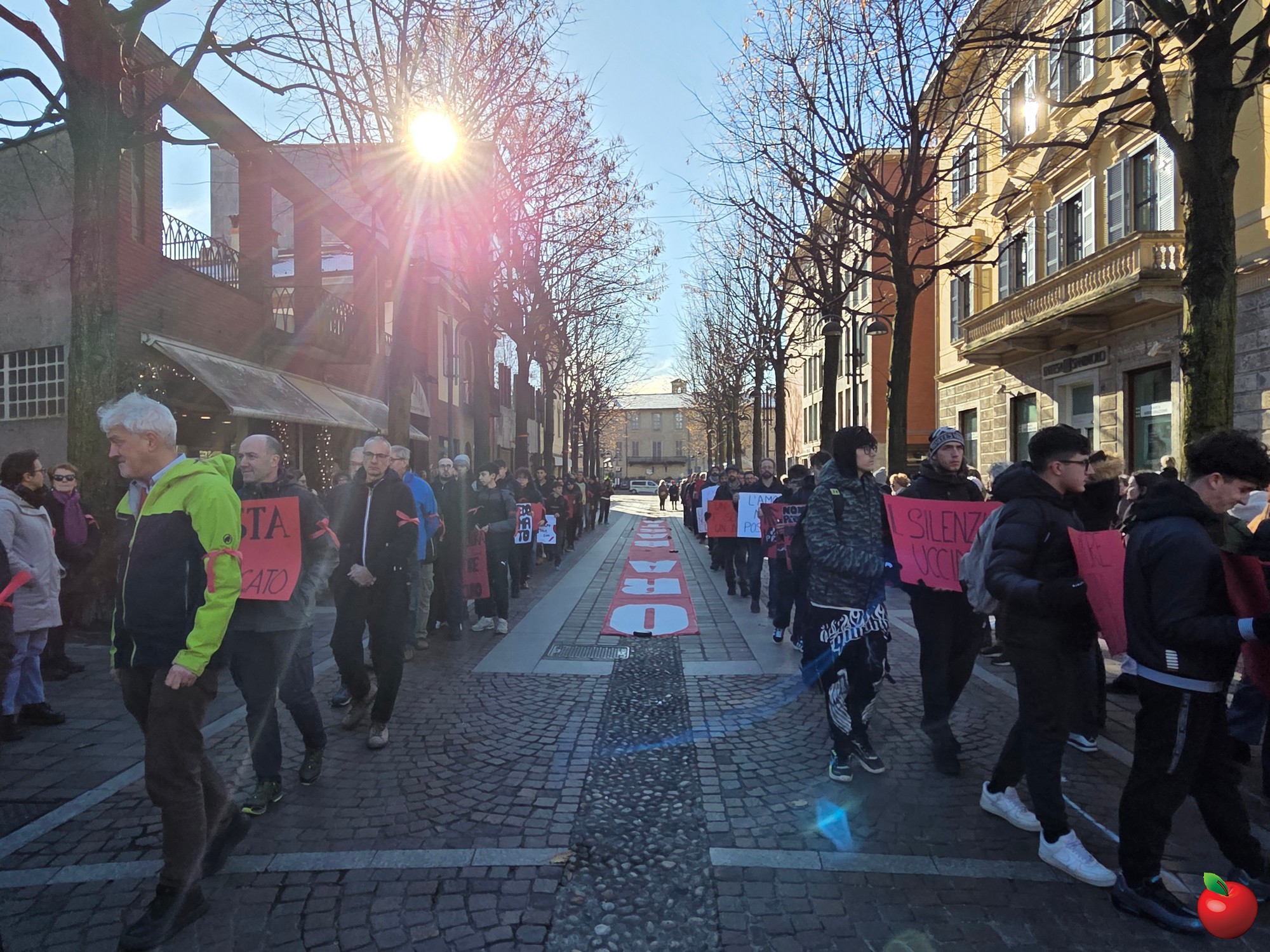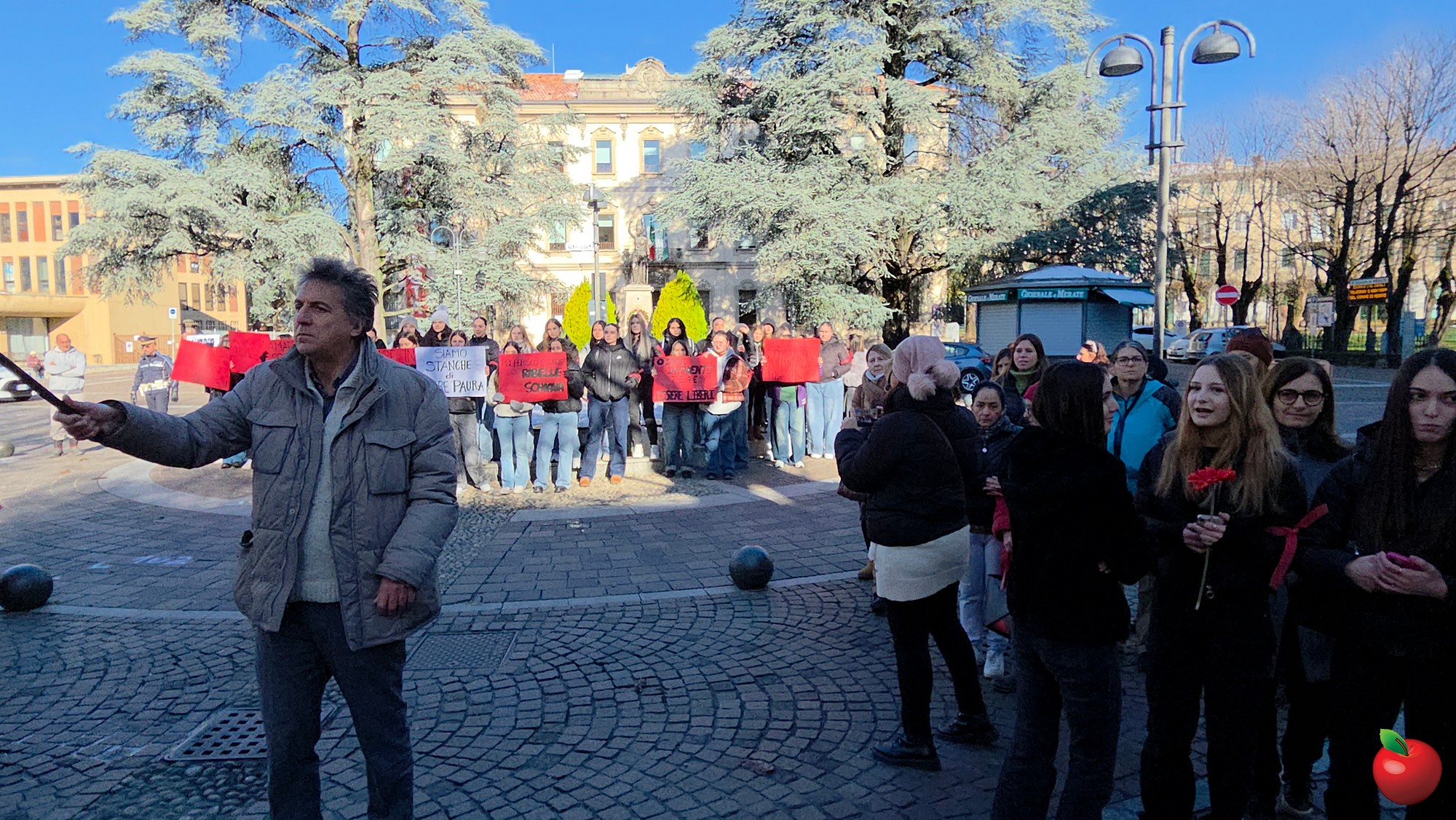 Il lungo striscione con la scritta “Ora basta” disposto lungo il canocchiale formato dai tigli di via Carlo Baslini, ha accompagnato questa marcia silenziosa ma solo nelle parole perchè la partecipazione degli uomini a questa iniziativa del collettivo “Ora basta” è stata certamente più incisiva e toccante di tanti discorsi.