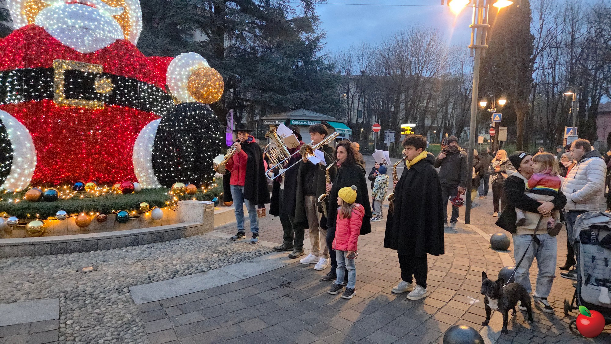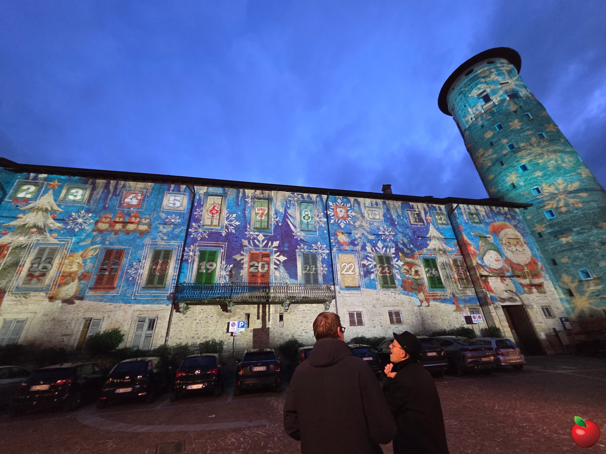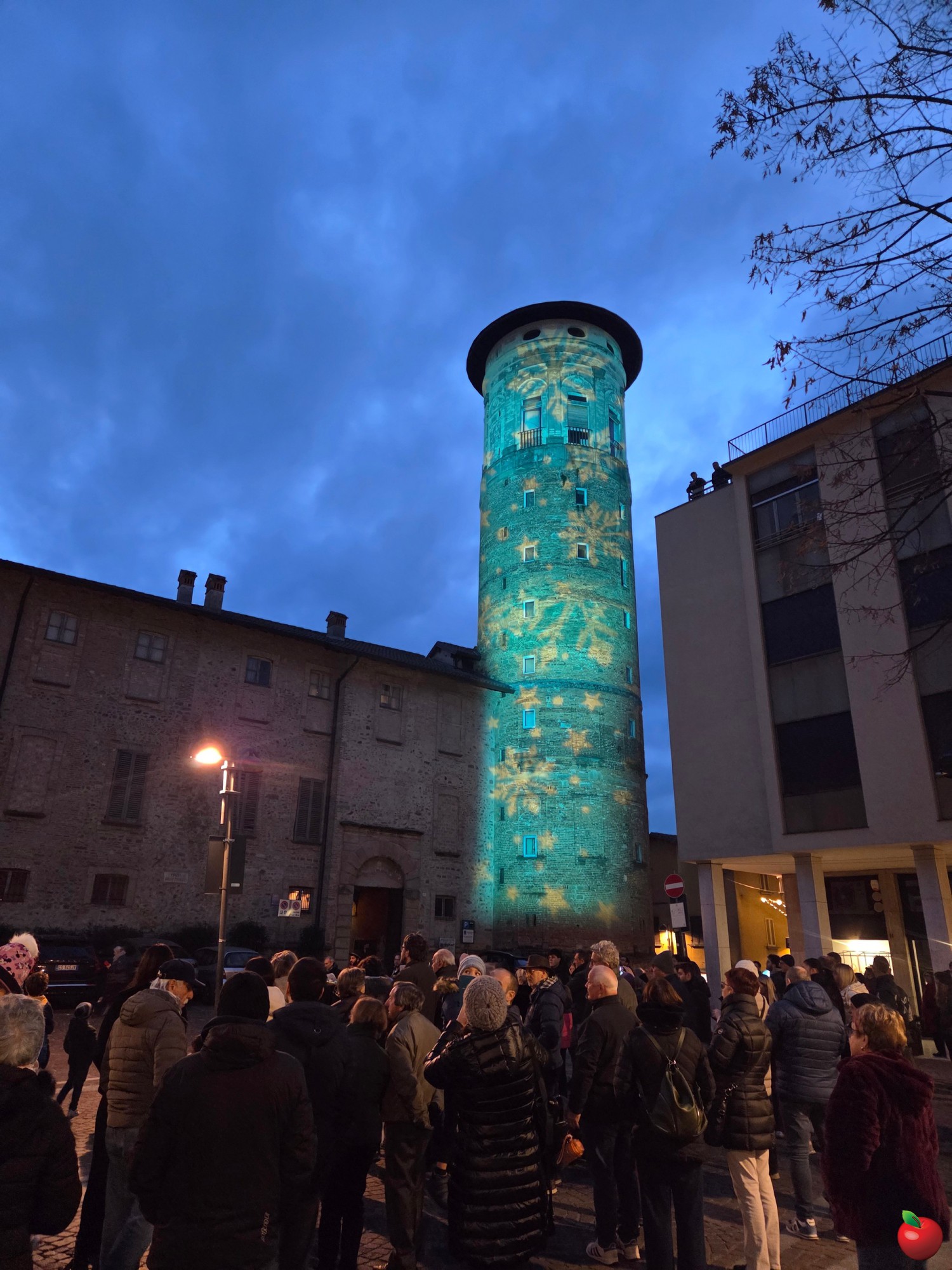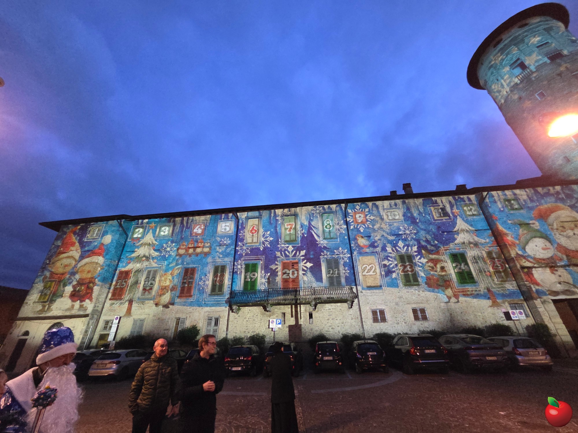 La folla si è poi spostata, seguendo la banda, fino al castello Prinetti dove il sindaco Mattia Salvioni e il parroco don Mauro Malighetti hanno augurato a tutta la cittadinanza presente l'avvio di una festività carica di felicità e serenità. Contemporaneamente c'è stata l'accensione dei disegni sulla facciata principale del palazzo e qualche istante prima sulla torre. Tra gli applausi e gli scatti fotografici dei presenti.
