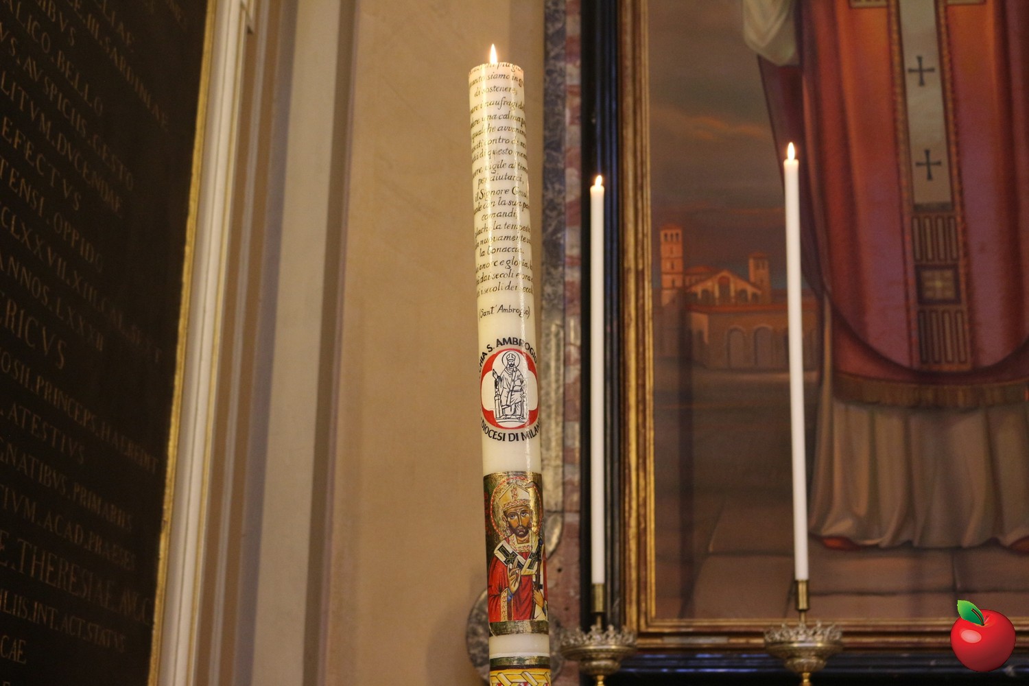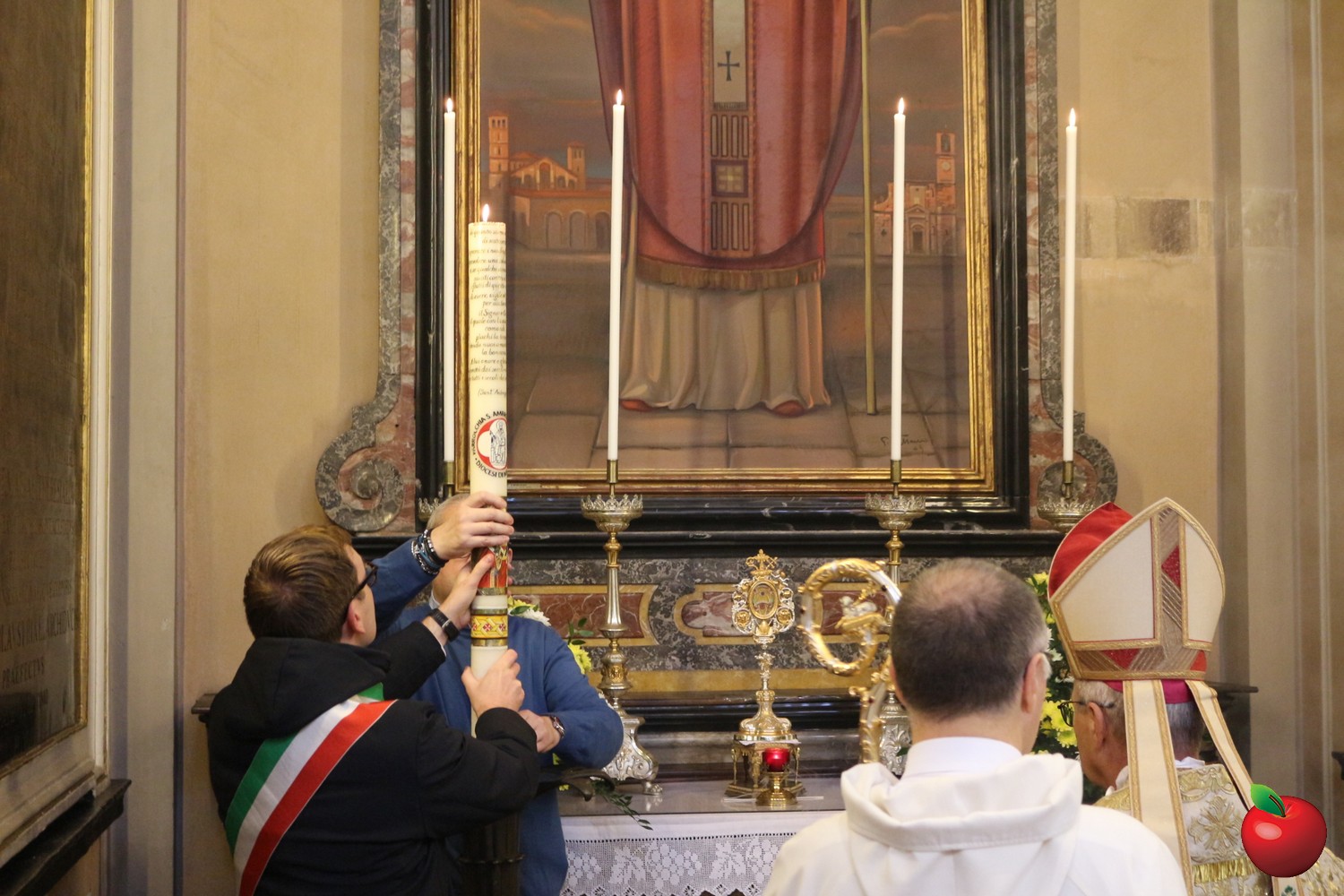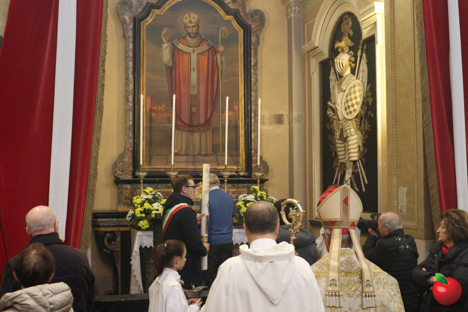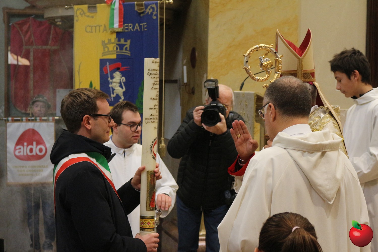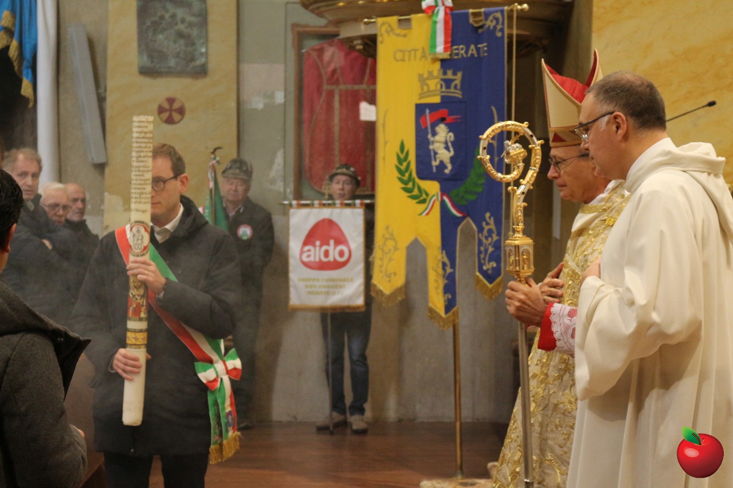 Dopo l'offertorio, si è svolto uno dei gesti più attesi della festa: la deposizione del cero da parte del sindaco Mattia Salvioni davanti alla raffigurazione del Patrono, rito che unisce idealmente fede e vita civica e che ribadisce il legame antico tra Merate e Sant’Ambrogio.