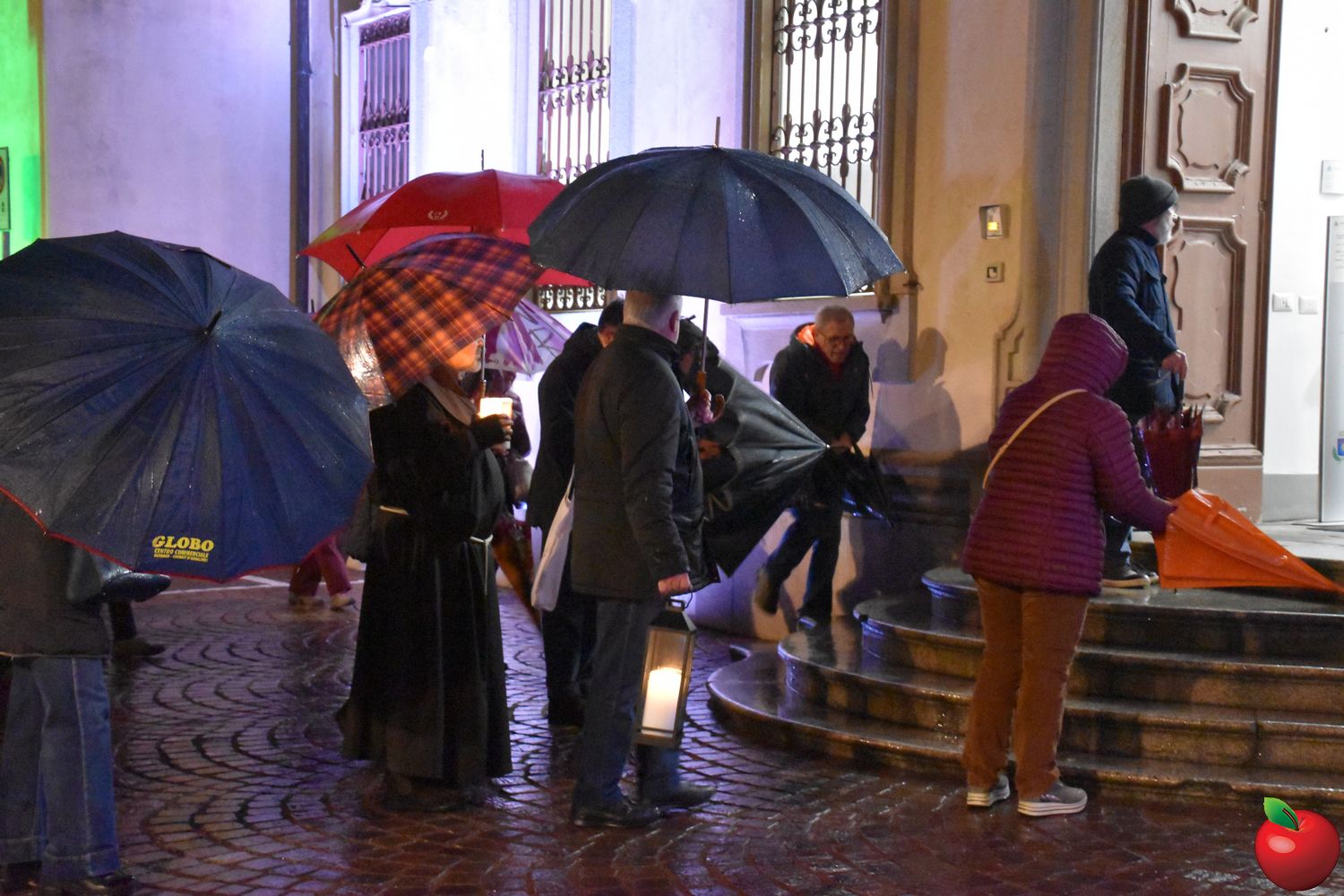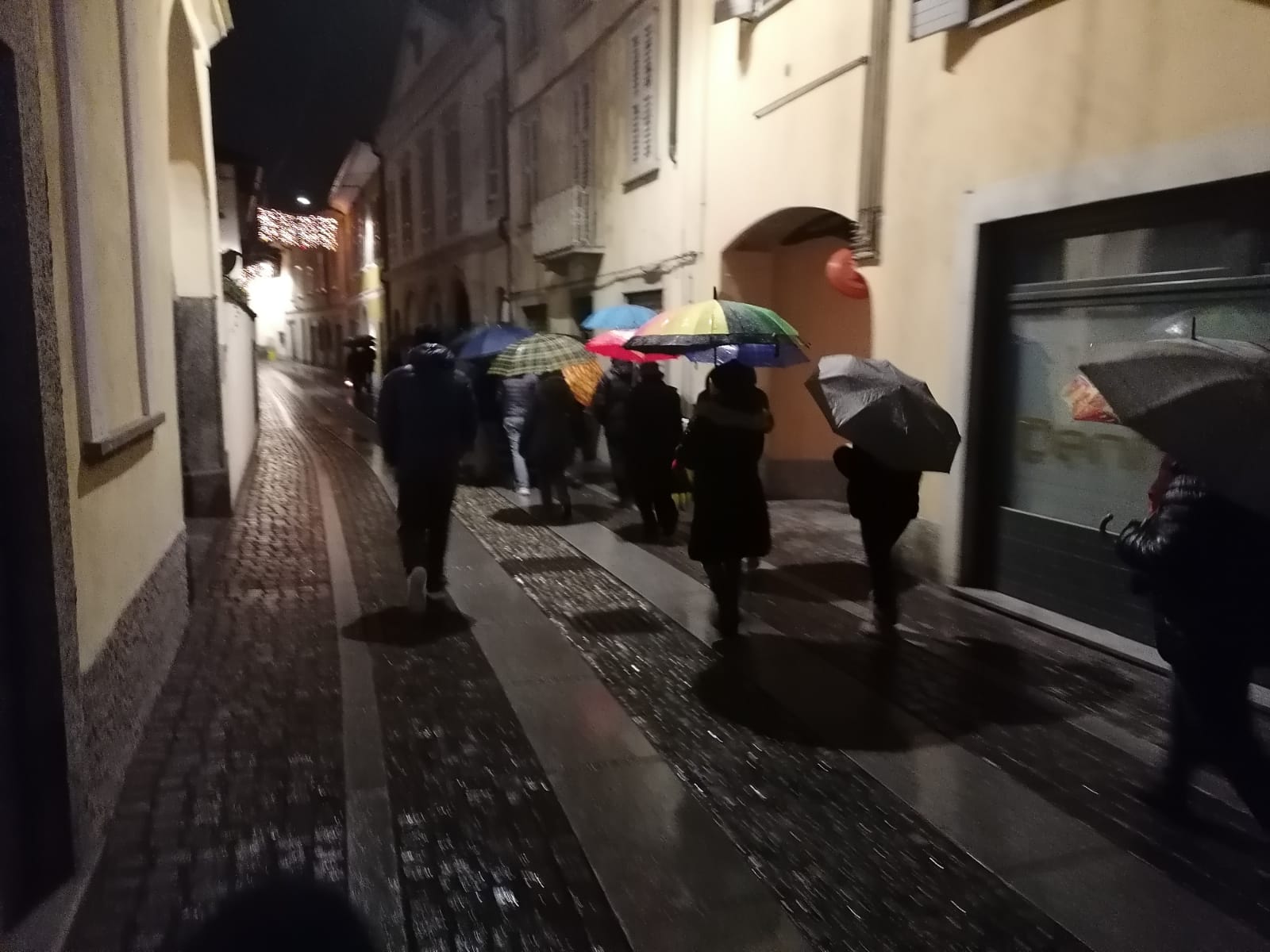 Così nemmeno la pioggia battente ha potuto spegnere l'entusiasmo e le fiammelle delle lanterne trasportate dai meratesi, partiti in due gruppi separati dall'Istituto Villoresi e dalla chiesa prepositurale di Sant'Ambrogio, poi confluiti in Piazza degli Eroi, nei locali del Comune: parole, silenzi e passi condivisi hanno accompagnato i partecipanti in un cammino capace di unire riflessione personale e dimensione comunitaria.