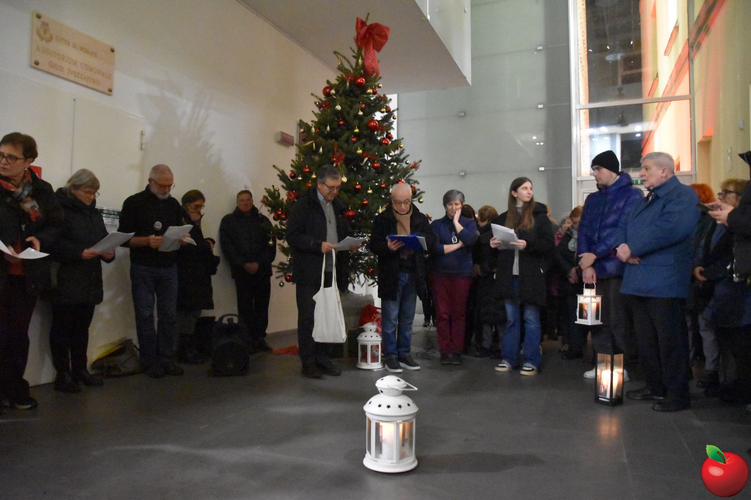 Il momento conclusivo, svoltosi all’interno del Municipio, è stato accompagnato da un breve ma intenso momento di riflessione proposto dalla parrocchia di Merate. In un’atmosfera intima e raccolta, con le luci soffuse e il sottofondo delle parole lette dai parrocchiani, una dopo l’altra le lanterne portate dai partecipanti sono state deposte al centro della comunità riunita ai piedi dell'albero di Natale. Un gesto semplice e simbolico, che ha trasformato le singole fiammelle in un unica grande luce condivisa, segno visibile di unità, presenza e responsabilità comune: “La luce del Natale non scende solo dall'alto: nasce tra le mani, nelle parole, nei gesti che scaldano, è la fiamma di chi ascolta, di chi offre, di chi crede ancora nella gentilezza”.