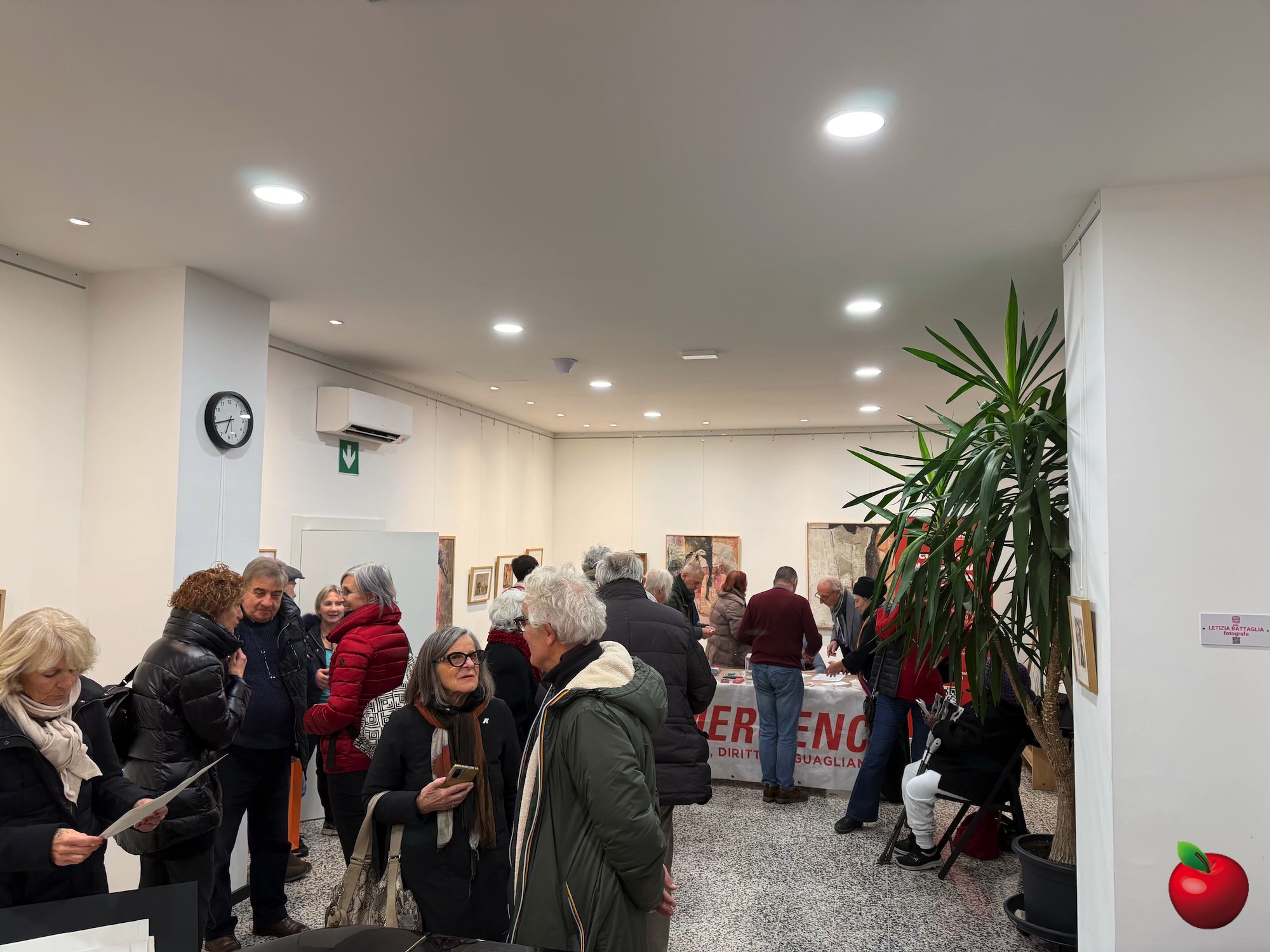 La serata inaugurale di venerdì 19 dicembre ha richiamato cittadini, sostenitori e istituzioni. Presenti, tra gli altri, gli ex sindaci Marco Molgora e Paolo Strina, insieme al pubblico che ha riempito la sala per un momento di arte, riflessione e solidarietà.