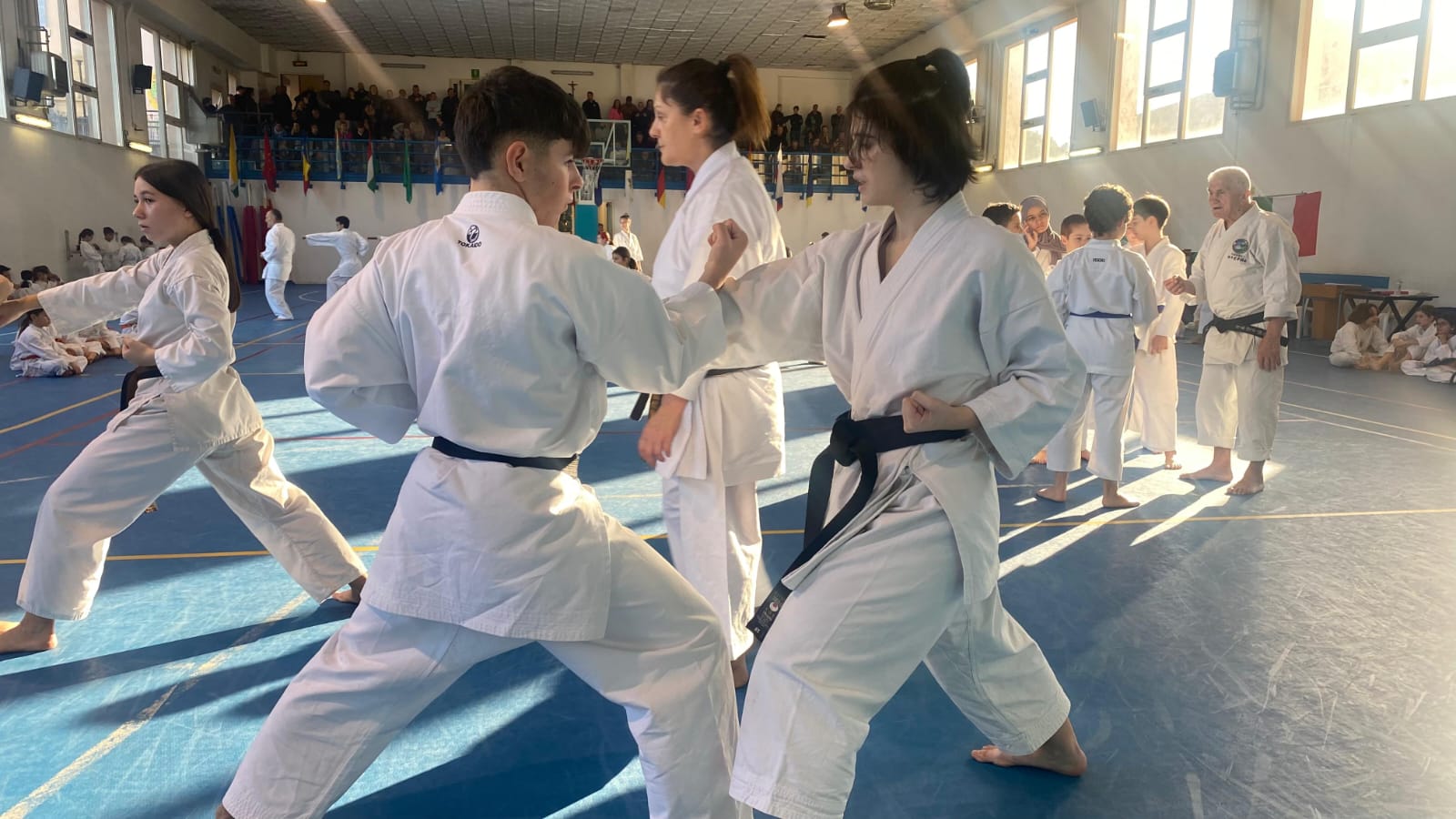 140 atleti, dai 3 anni del corso propedeutico Baby Gioco Karate fino agli 85 anni dei veterani, dalla cintura bianca alla nera, hanno risposto con entusiasmo alla chiamata.
