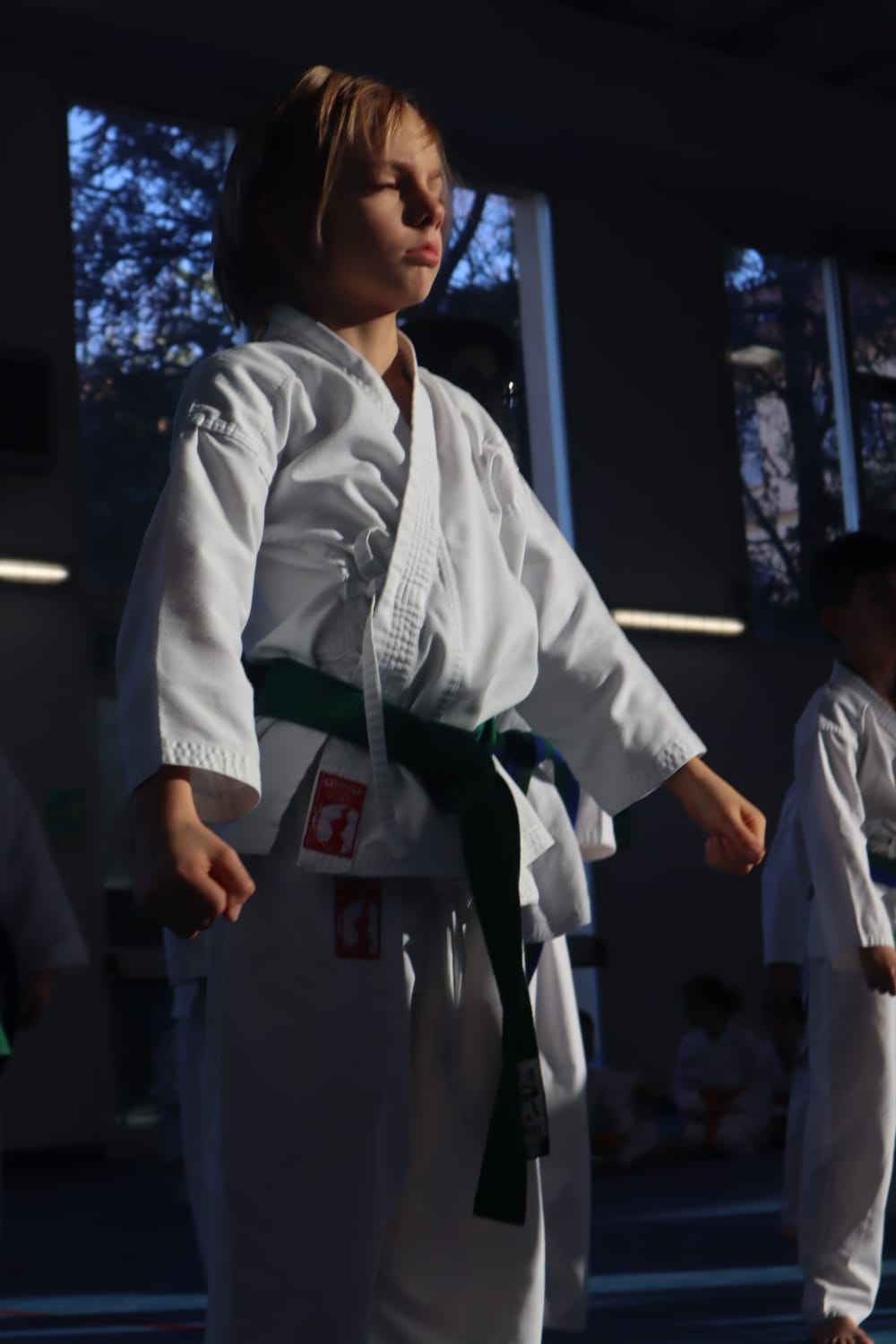 L’allenamento si è chiuso con il saluto e la recita del Dojo Kun, le regole della pratica enunciate in giapponese e ripetute da tutti i presenti, in un’atmosfera intensa e carica di significato.