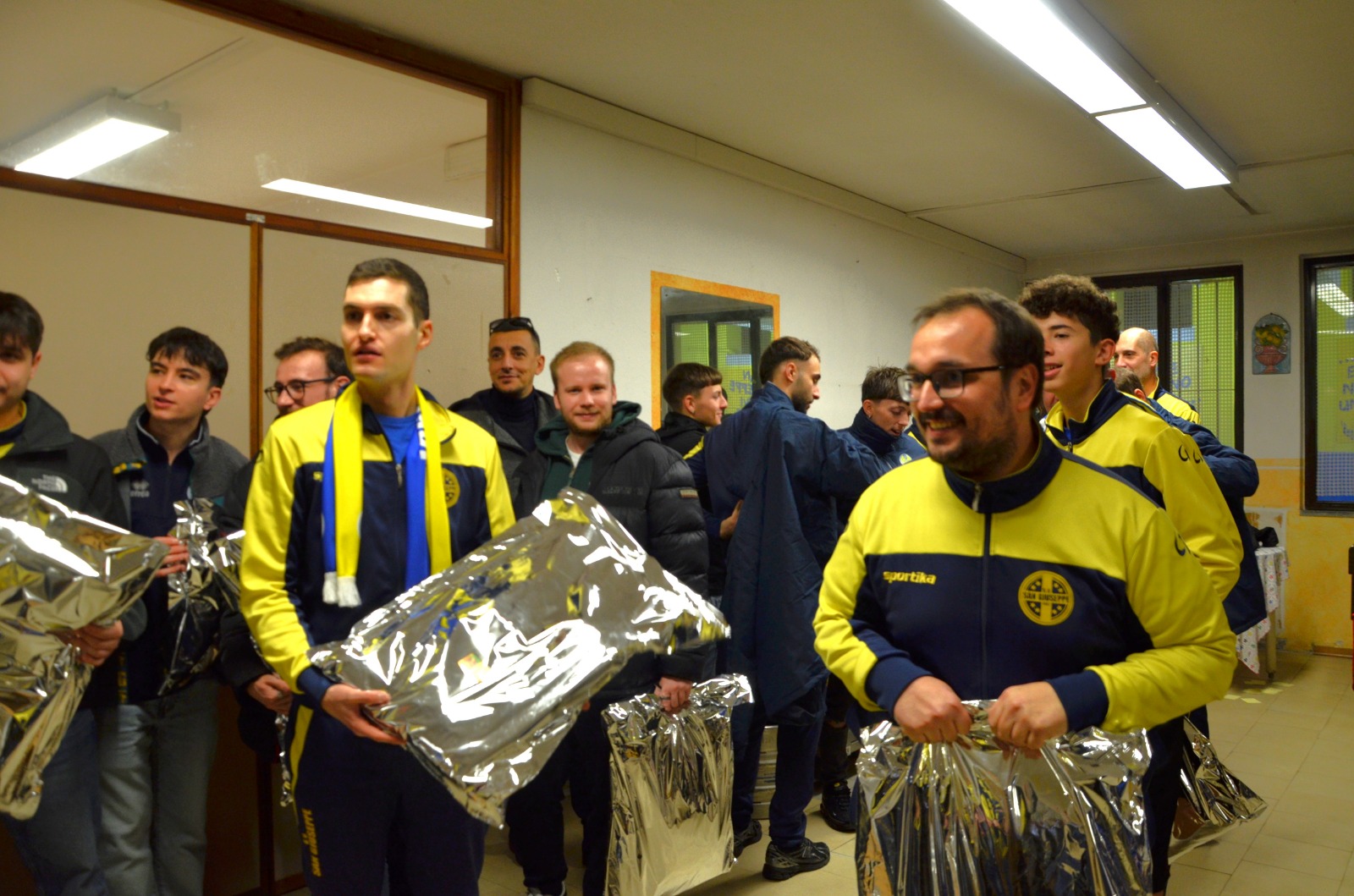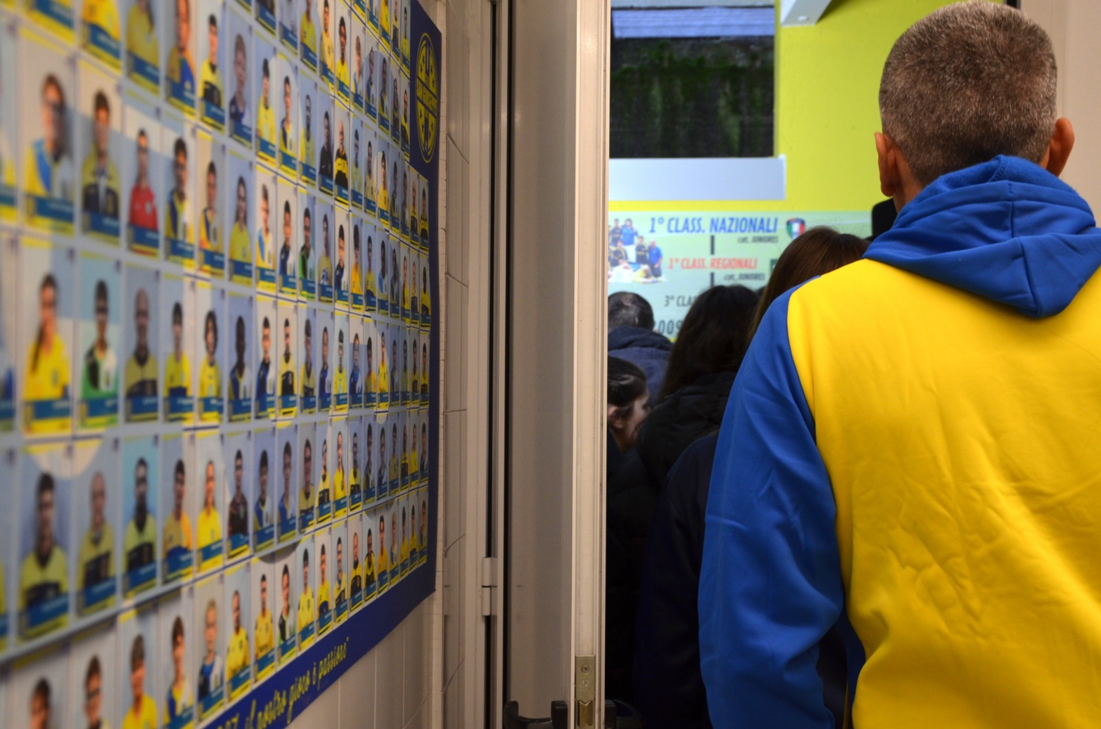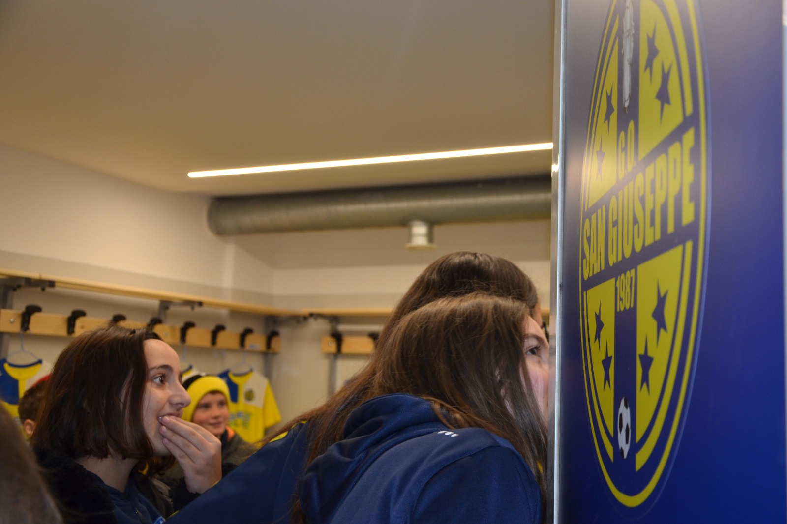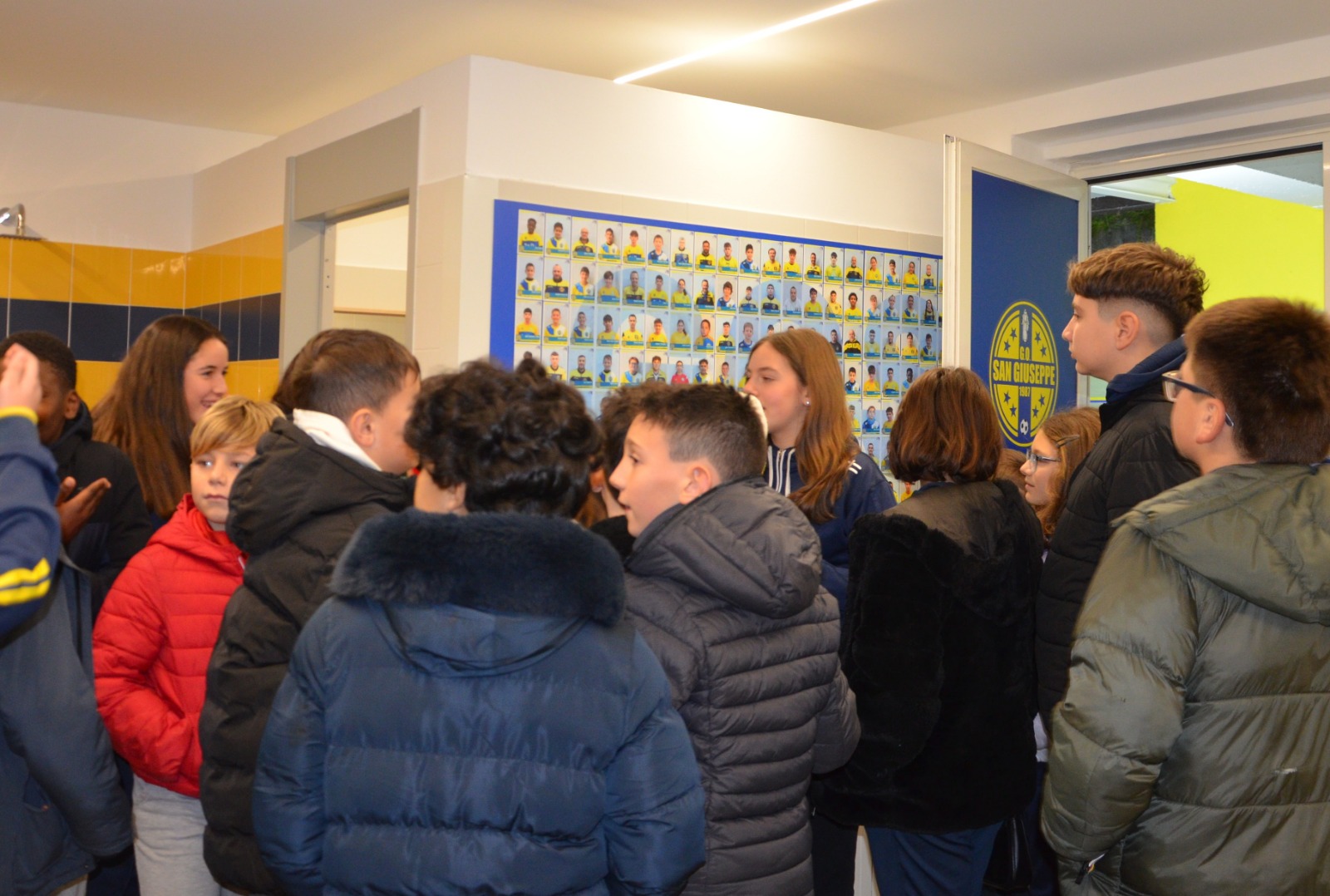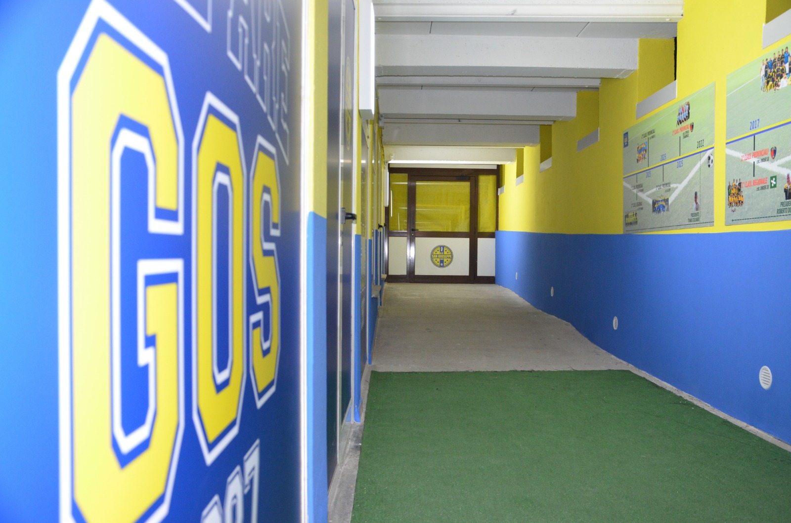 Il tunnel si è riempito in pochi istanti. Bambini, ragazzi, famiglie e amici hanno percorso il corridoio tra stupore e curiosità. Lungo le pareti, una serie di pannelli decorativi raccontano con immagini e parole l’identità sportiva del San Giuseppe. Alcuni riportano brani dell’inno ufficiale della società, mentre un grande pannello tricolore a metà tunnel richiama il 2007, anno del titolo nazionale: un ricordo indelebile nella storia del gruppo.