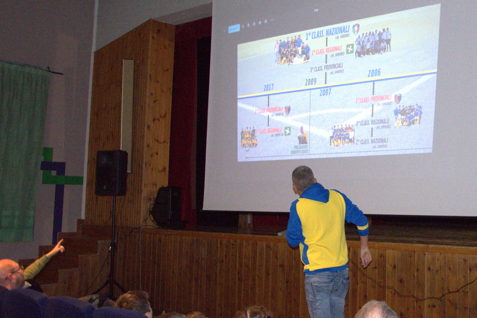 Tre ulteriori pannelli, ancora più grandi, ospitano una timeline dettagliata che ripercorre i momenti più importanti dal 1987 a oggi: vittorie, impegni sportivi, progetti, cambiamenti e tutti i presidenti che negli anni si sono avvicendati alla guida della società. Un percorso visivo che sottolinea quanto profonda sia la radice sportiva, educativa e comunitaria del San Giuseppe.