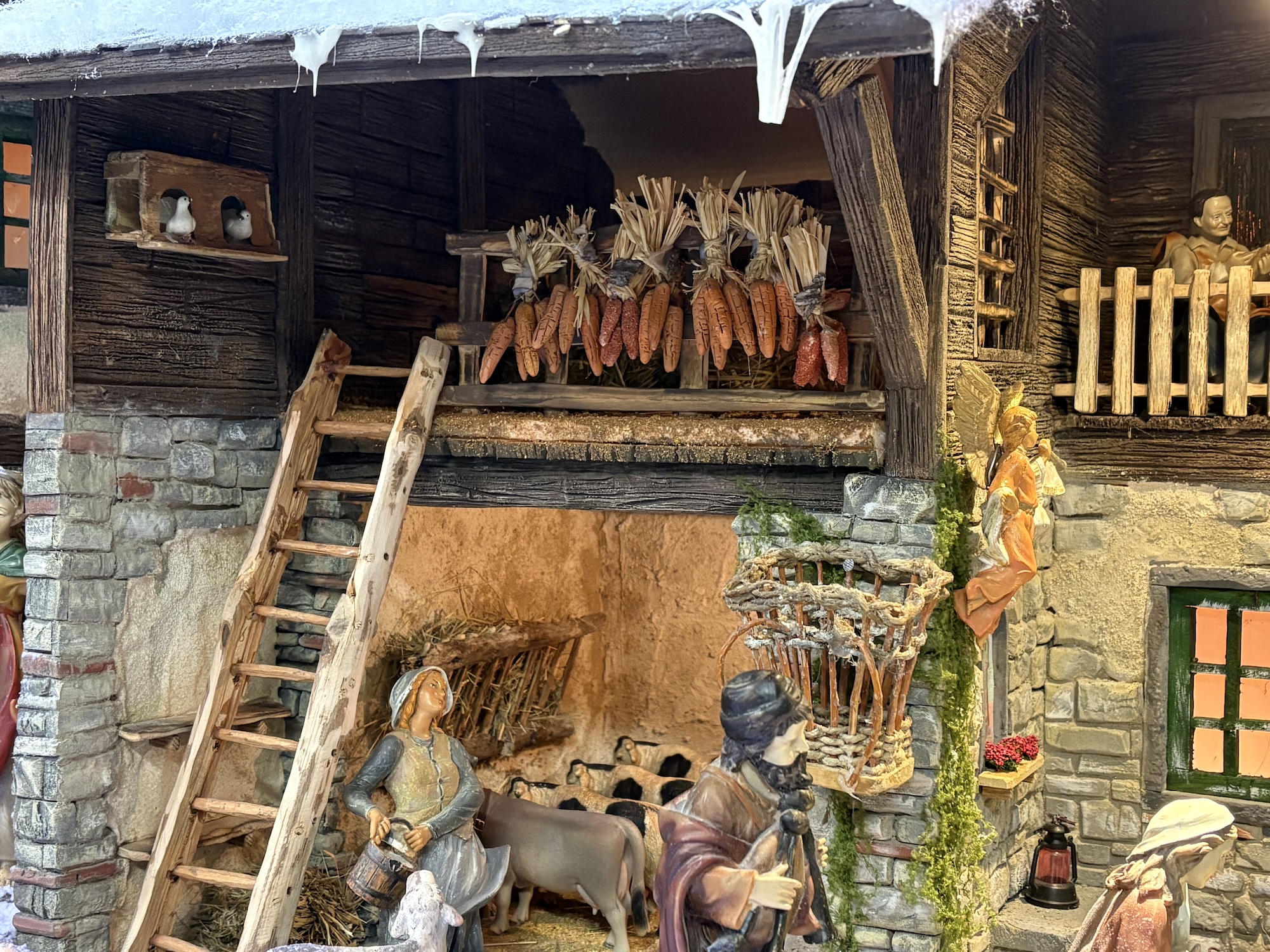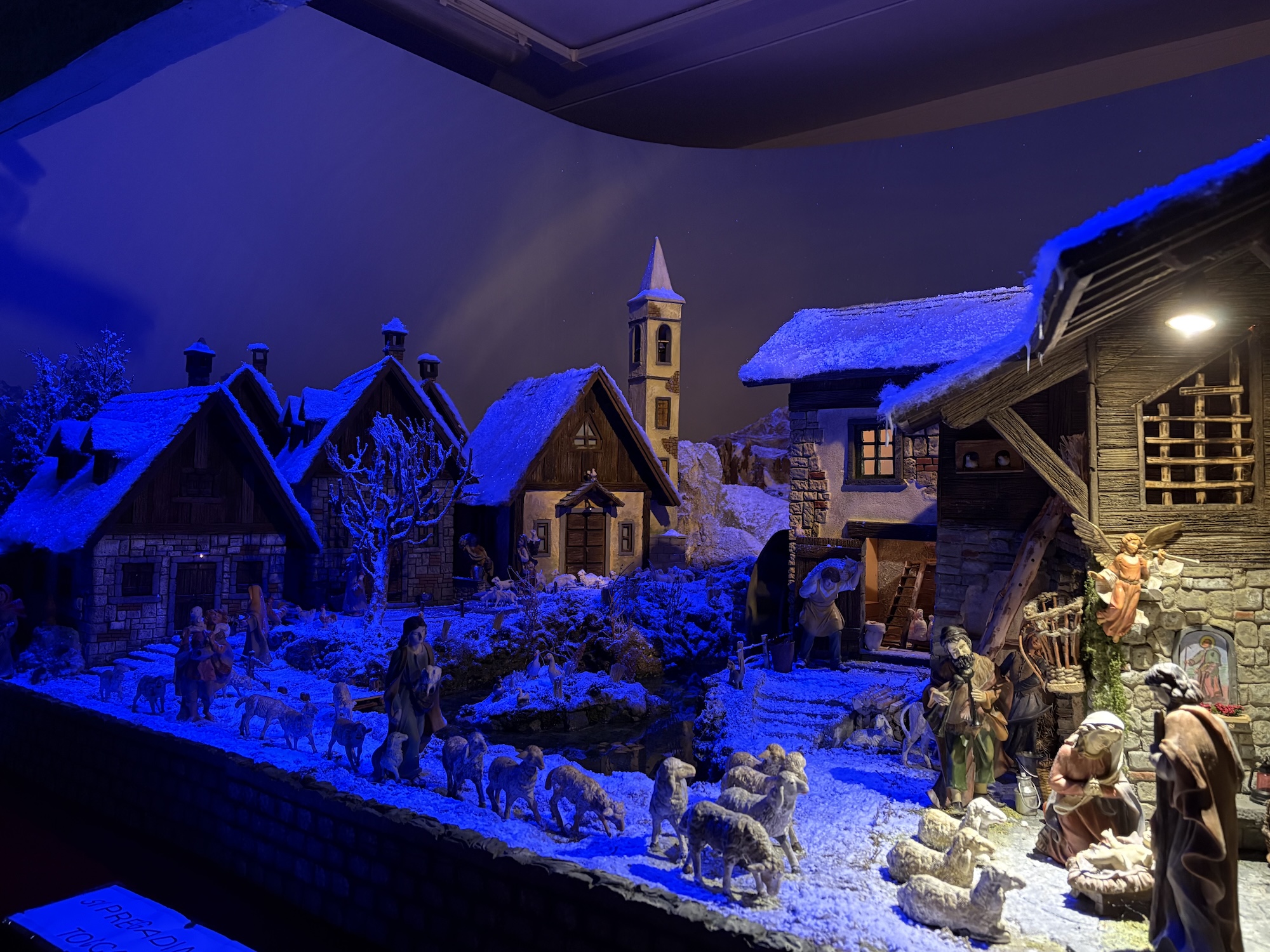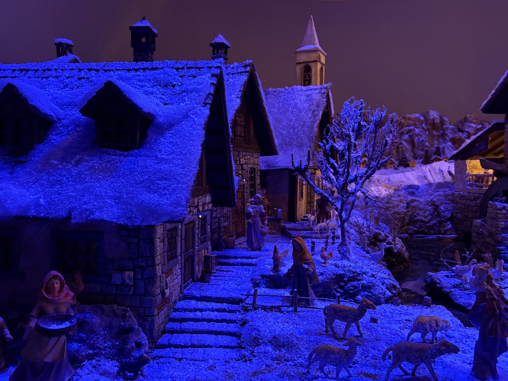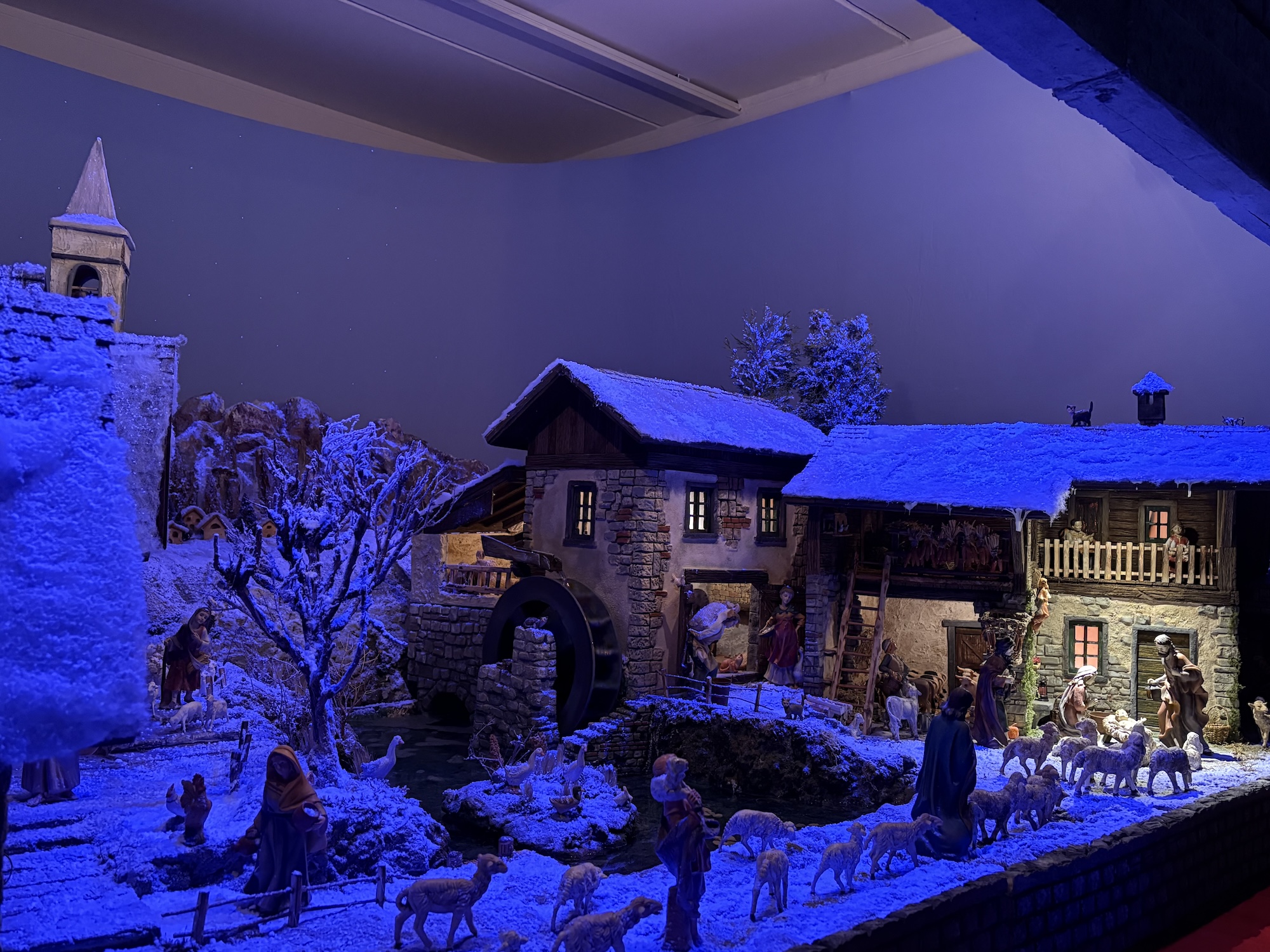 Quest’anno si è inoltre scelto di collocare la scena della Natività non nella classica stalla, ma in un ambiente più raccolto e familiare, per sottolineare il lato umano e quotidiano della nascita di Gesù. Ad accompagnare l’installazione c’è anche la musica, che contribuisce a rendere l'esperienza ancora più immersiva.