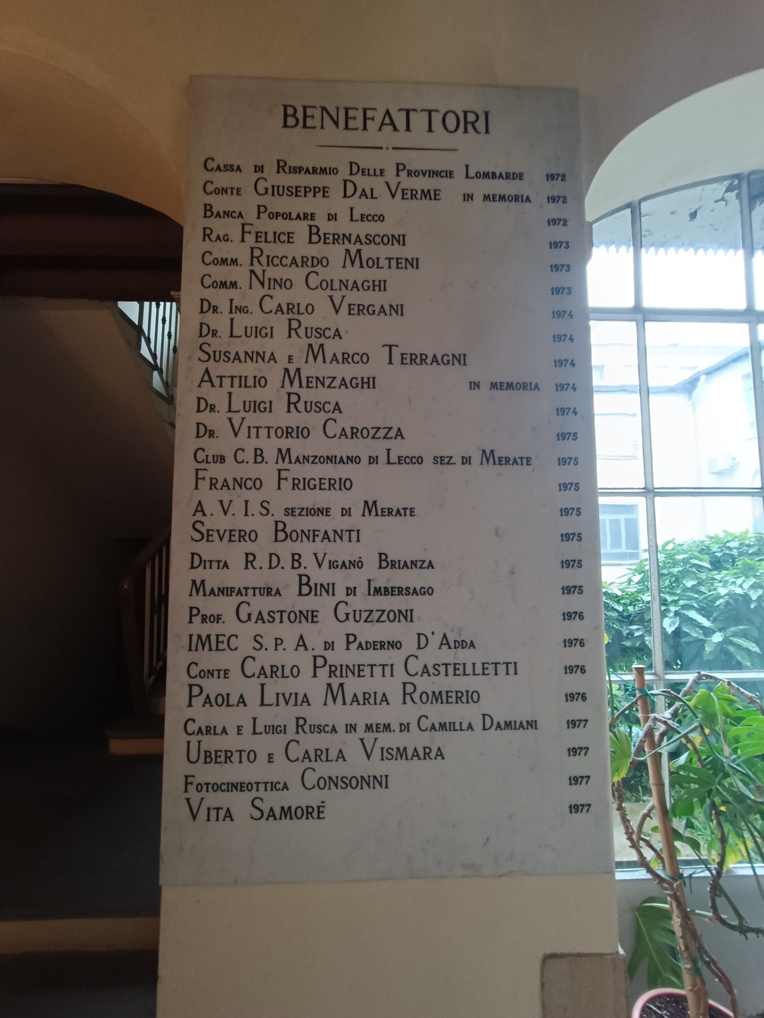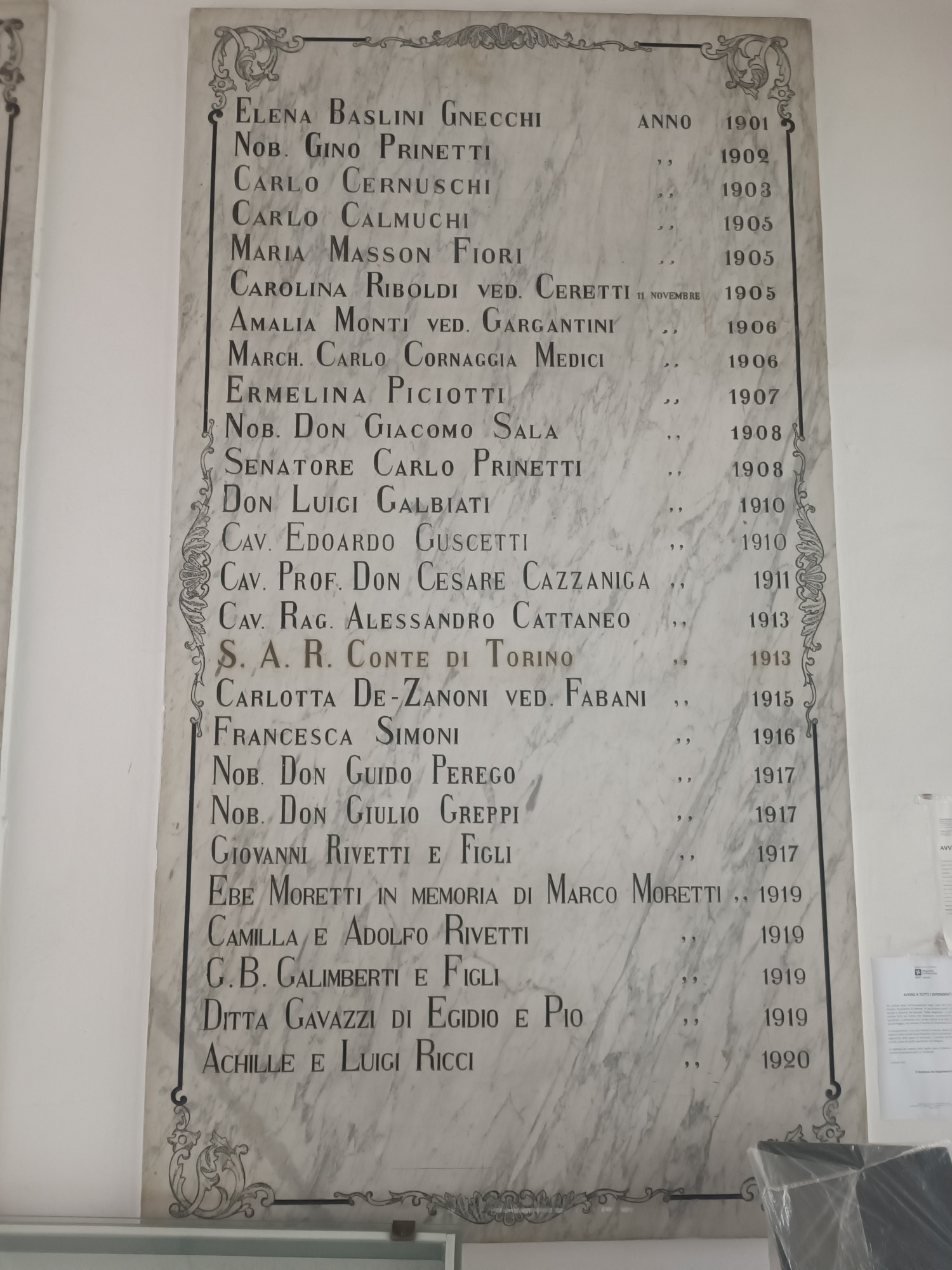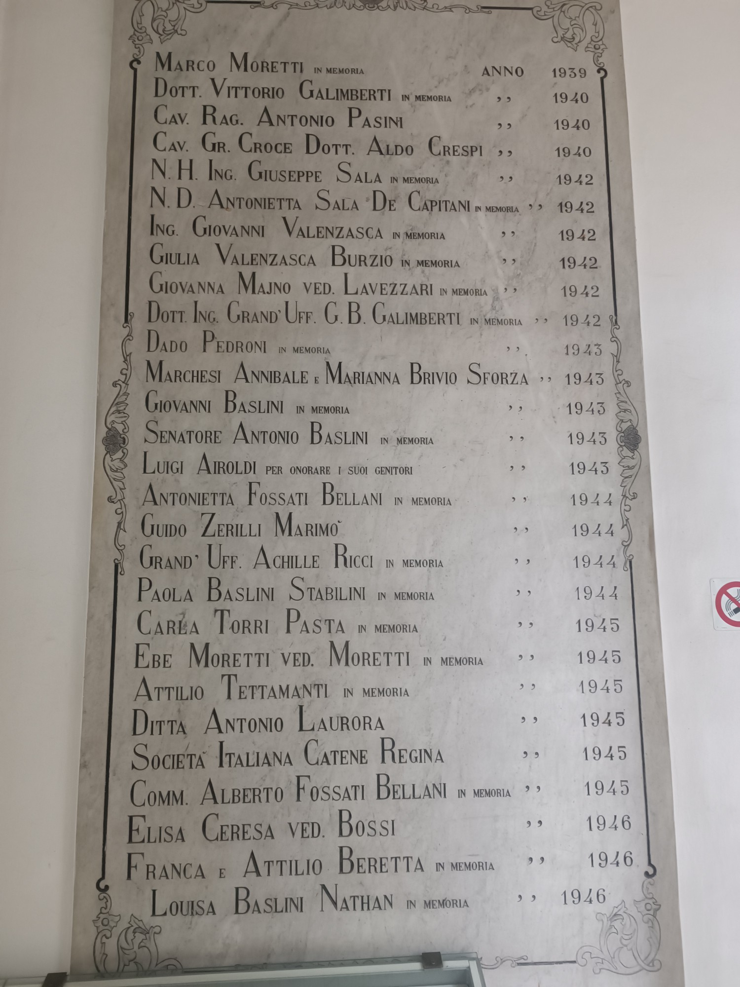 Non incideranno i loro nomi sulle tavole marmoree ma noi pensiamo che una dedica sia doverosa. Una fuga in avanti, la nostra. Forse persino sgradita. Ma un atto a futura memoria, accanto ai grandi benefattori come Giovanbattista e Felice Cerri, Giovanni, Antonio e Carlo Baslini, Giovanni Battista Torri, Famiglia Prinetti Castelletti, Famiglia Airoldi Fossati, Giulia Terzaghi, Giuseppe Villa, Gianbattista Galimberti, Arturo Toscanini, Carla e Luigi Rusca.