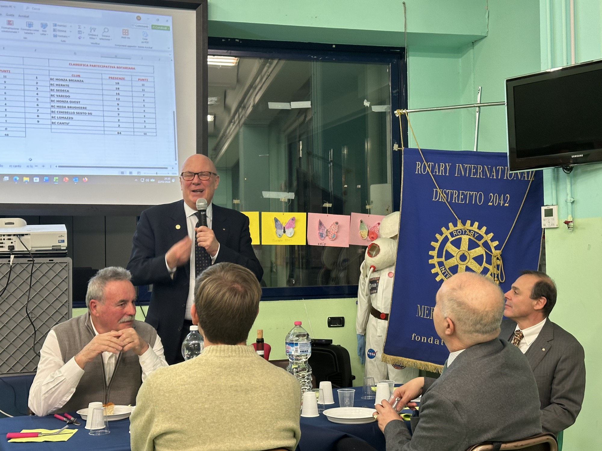 Durante la serata sono stati inoltre presentati alcuni dei principali progetti portati avanti dal Rotary Club Merate Brianza, con particolare attenzione al sostegno del territorio. Tra questi, l’impegno economico stimato in 28.000 euro destinato alla ristrutturazione delle canne dell’organo di Montevecchia, reso possibile grazie a donazioni e raccolte fondi legate ai service del Club.