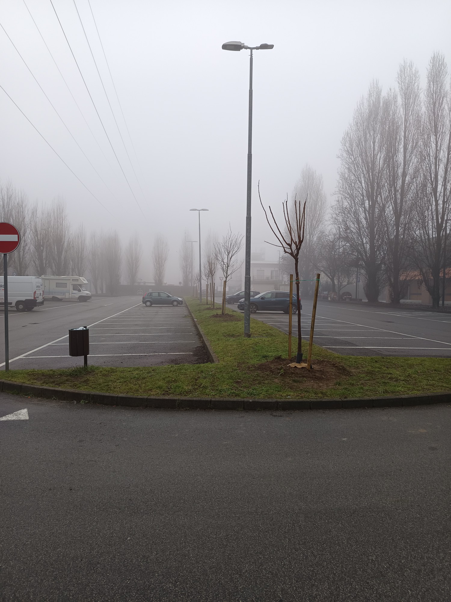 • Parcheggio pubblico di via degli Alpini, dove sono stati realizzati nuovi filari alberati con specie diversificate per migliorare il profilo stradale e la qualità ambientale;