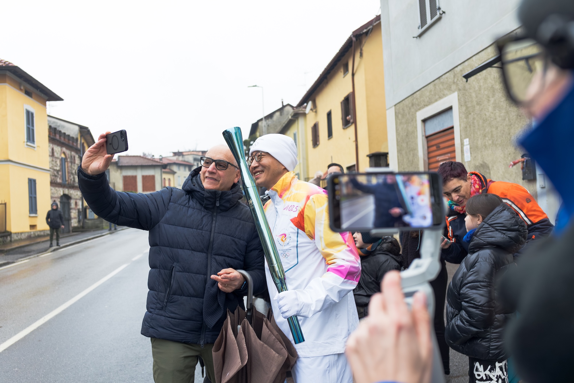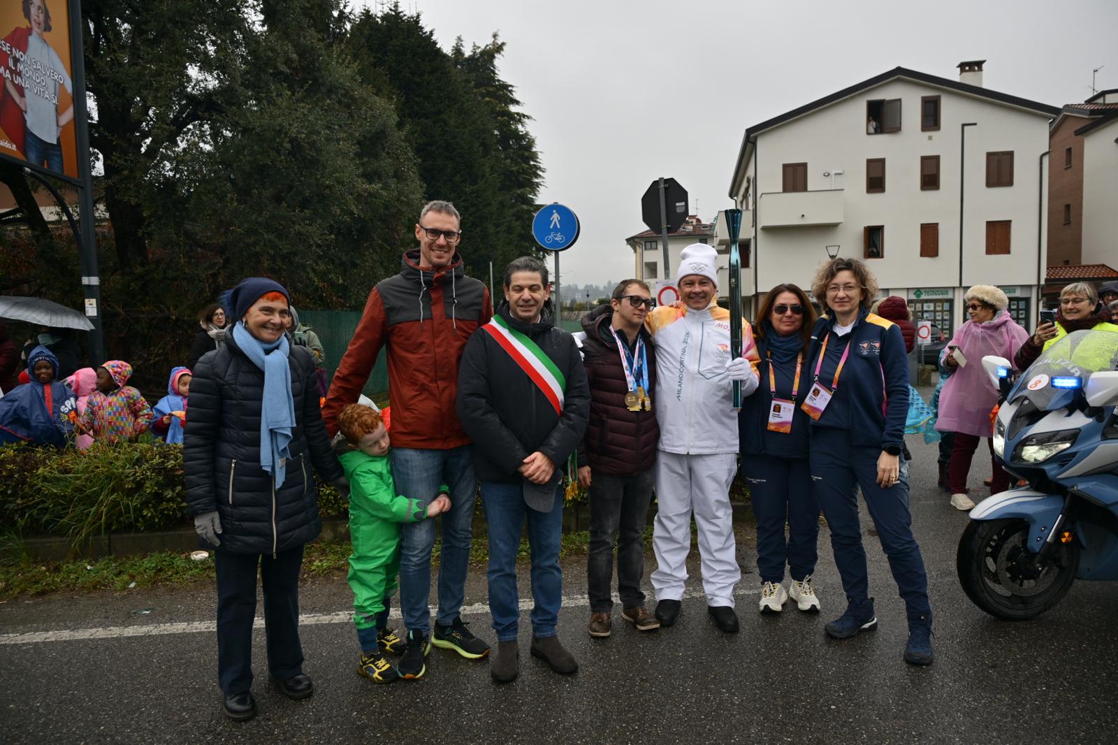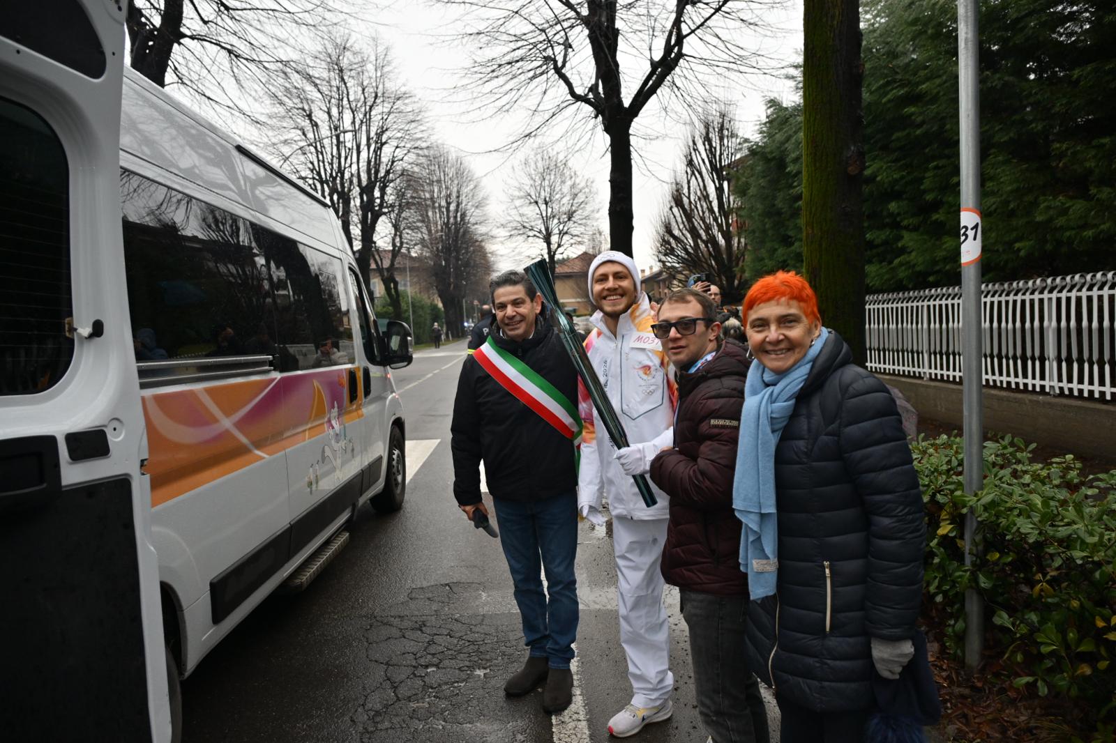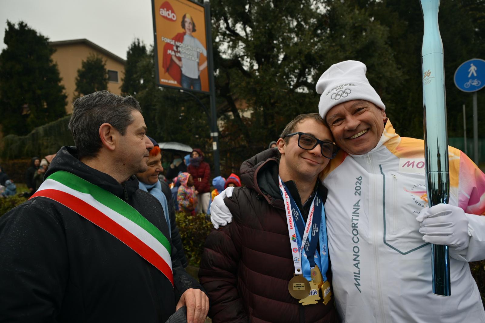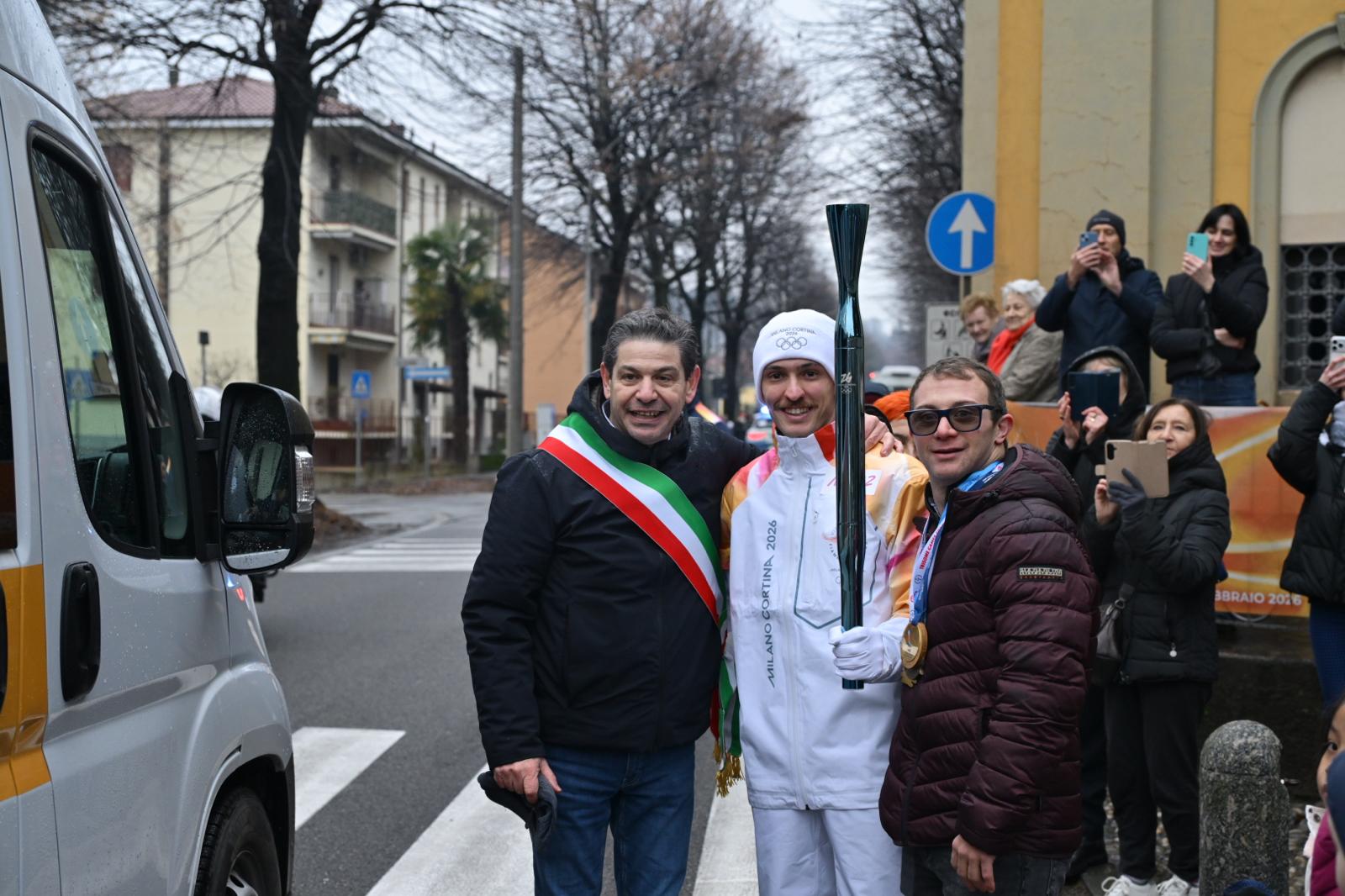Francesco Piccinini e il sindaco Marco Magni insieme a uno dei tedofori