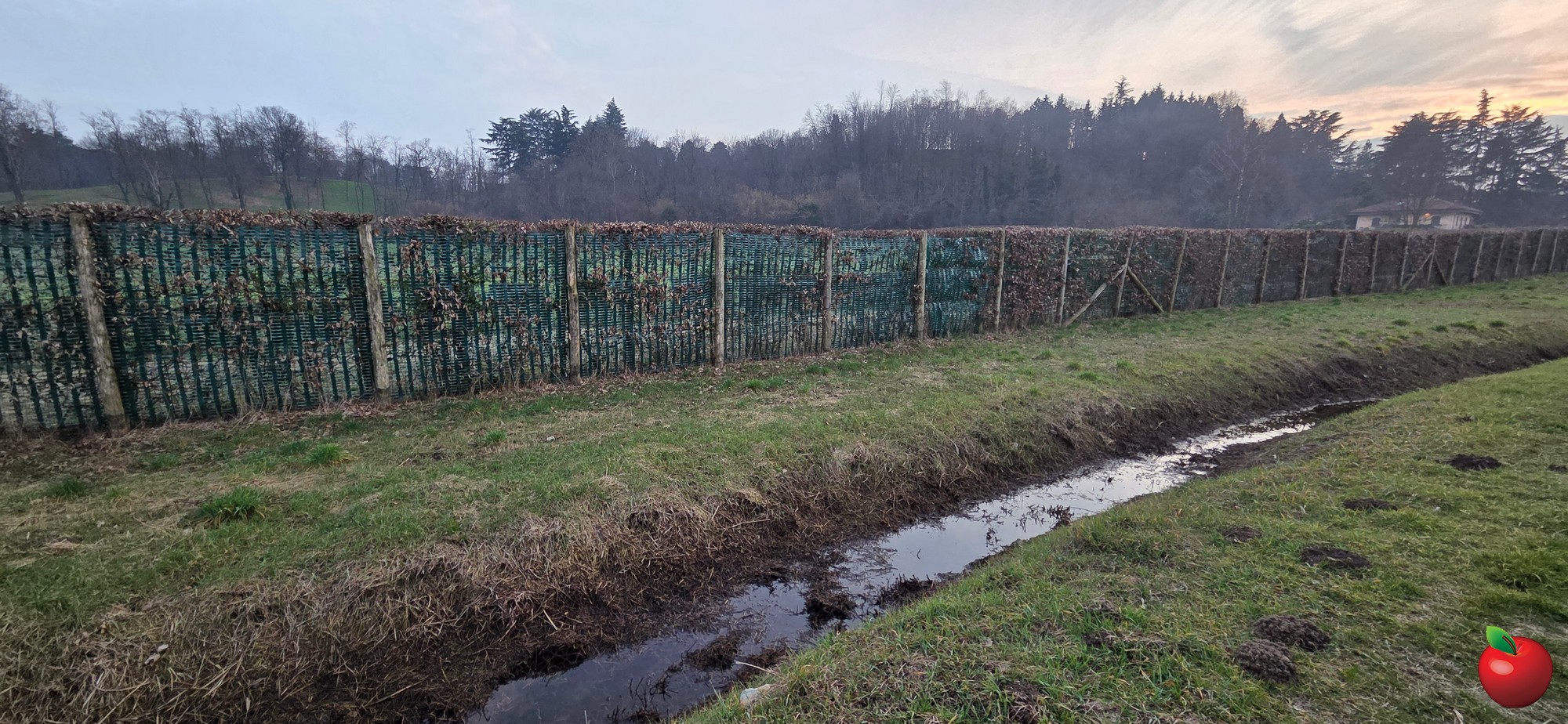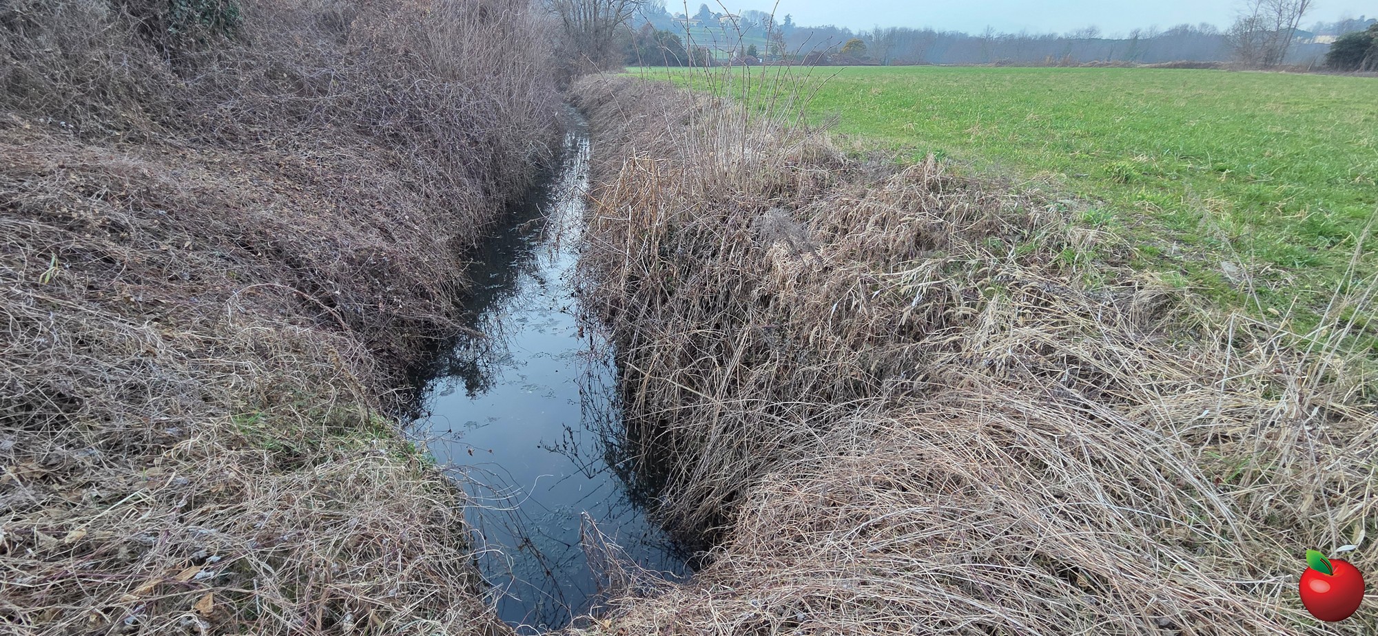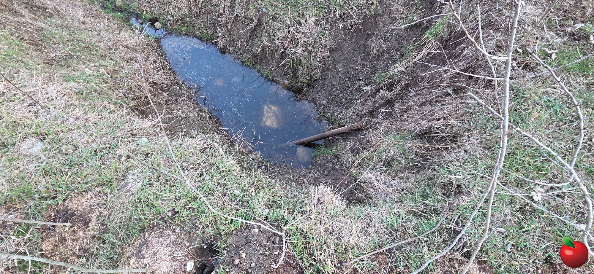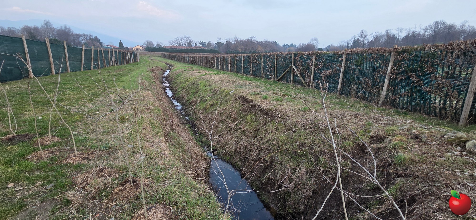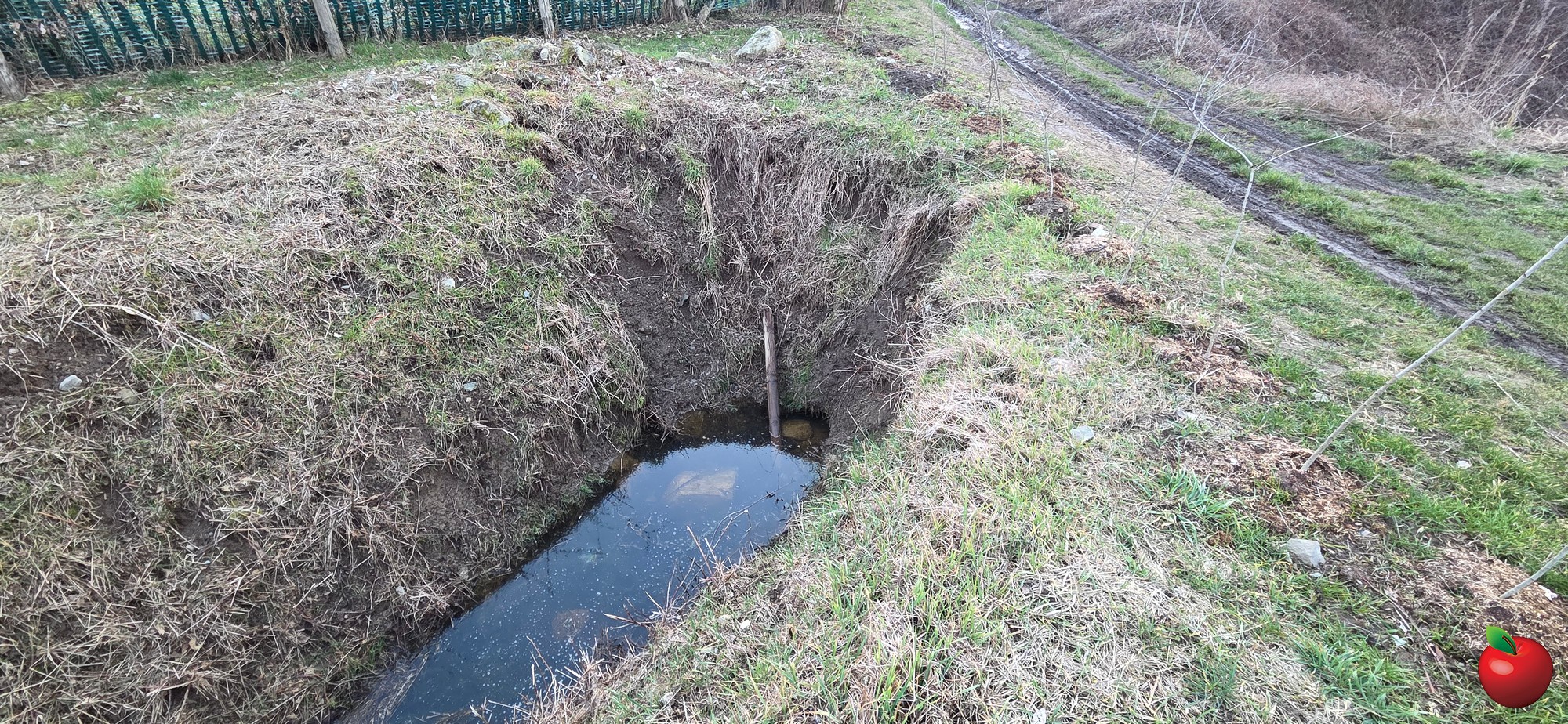E così anche ora. Si vede infatti che il piccolo corso d’acqua è stato volontariamente bloccato con terra e massi proprio a ridosso di una recinzione. Quindi l’acqua ristagna, se è eccessiva, tracima, poi si esaurisce.