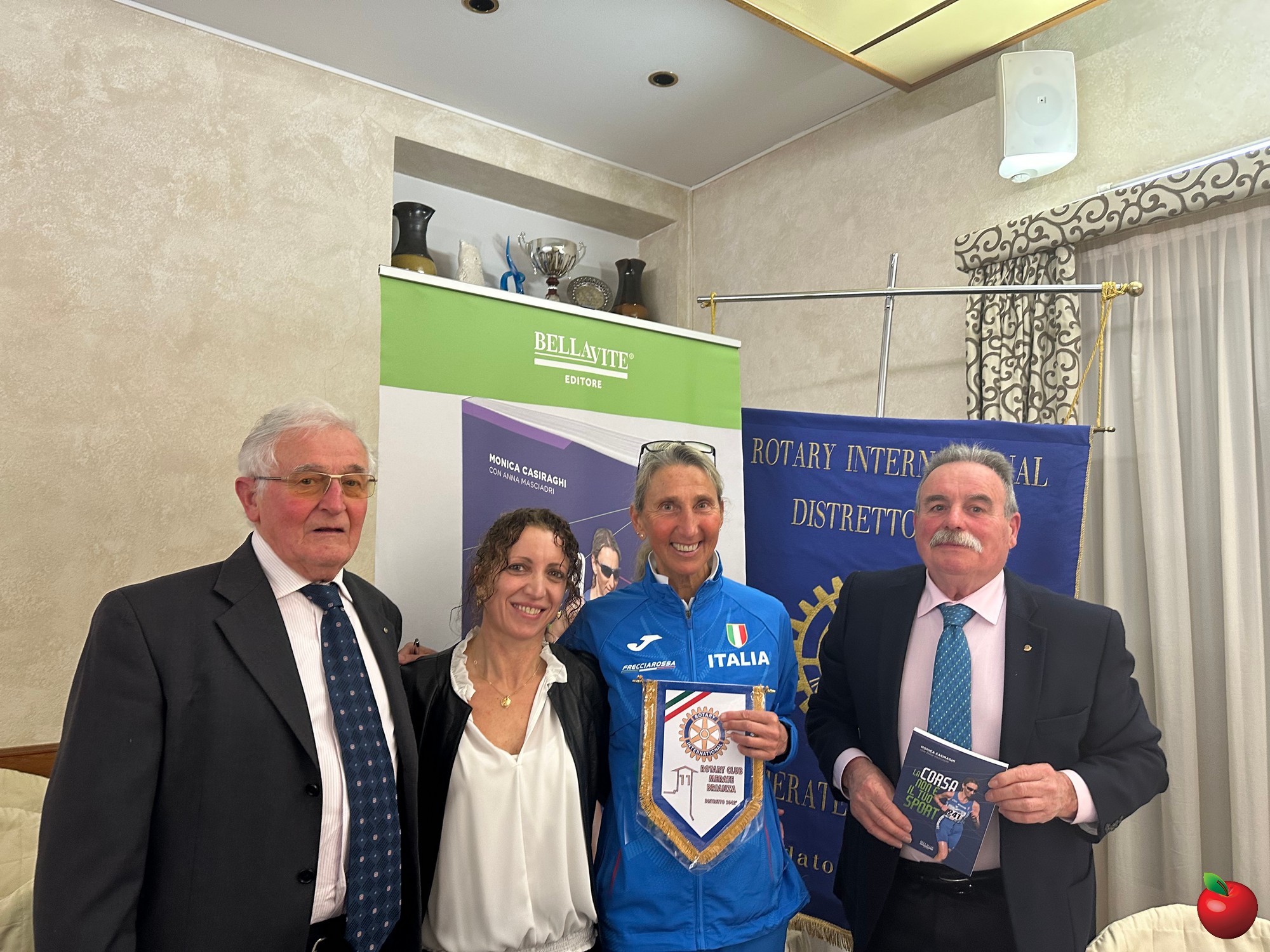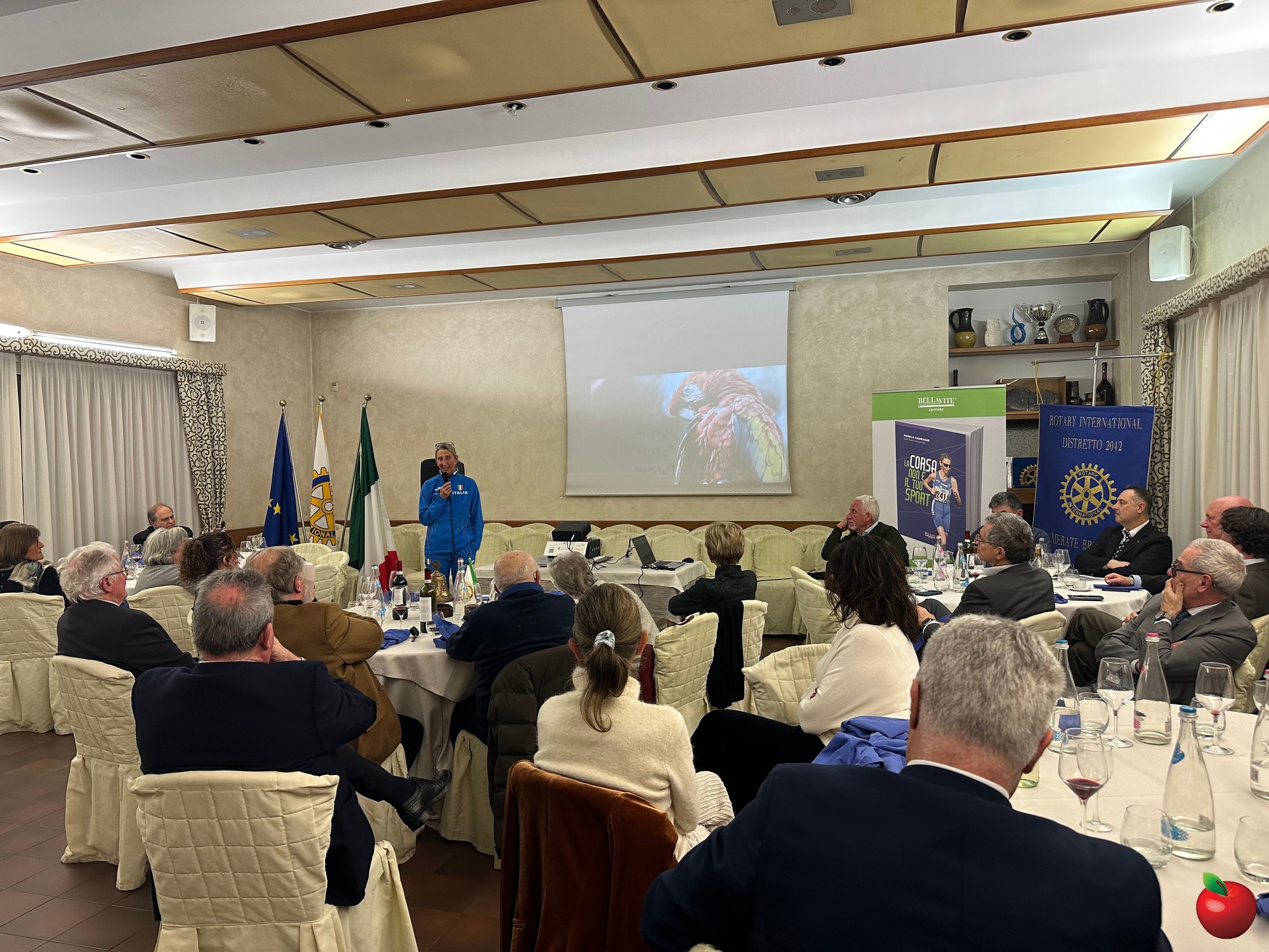 Al termine dell’incontro, il presidente del Rotary Merate Brianza, Marco De Capitani, ha ringraziato Monica Casiraghi per la testimonianza, omaggiandola con un libro e il gagliardetto del Club. La serata si è conclusa con un interessante momento di dialogo informale con i presenti e con la firma delle copie del suo volume dal titolo ''La corsa non è il tuo sport'' di Monica Casiraghi con Anna Masciadri, Bellavite Editore.