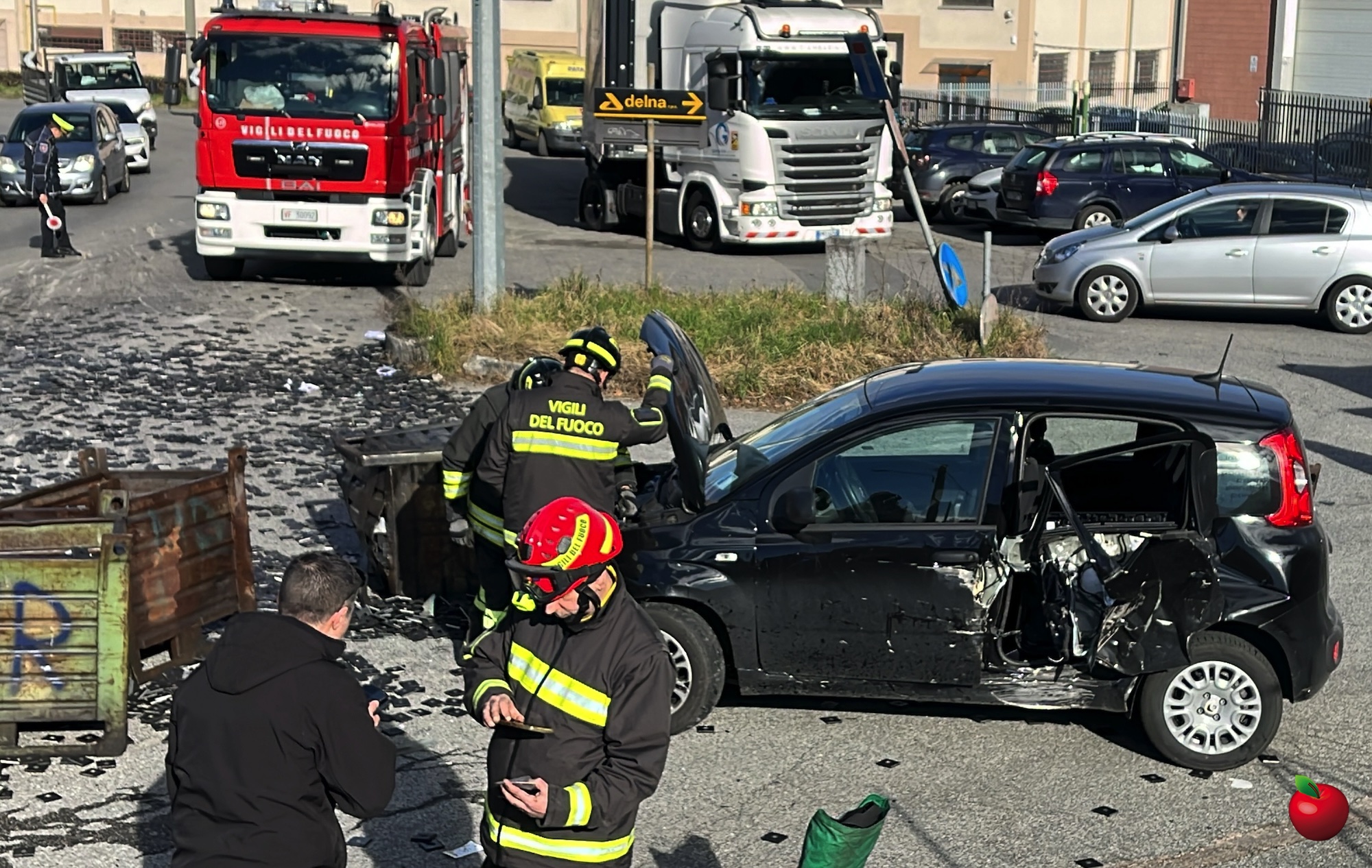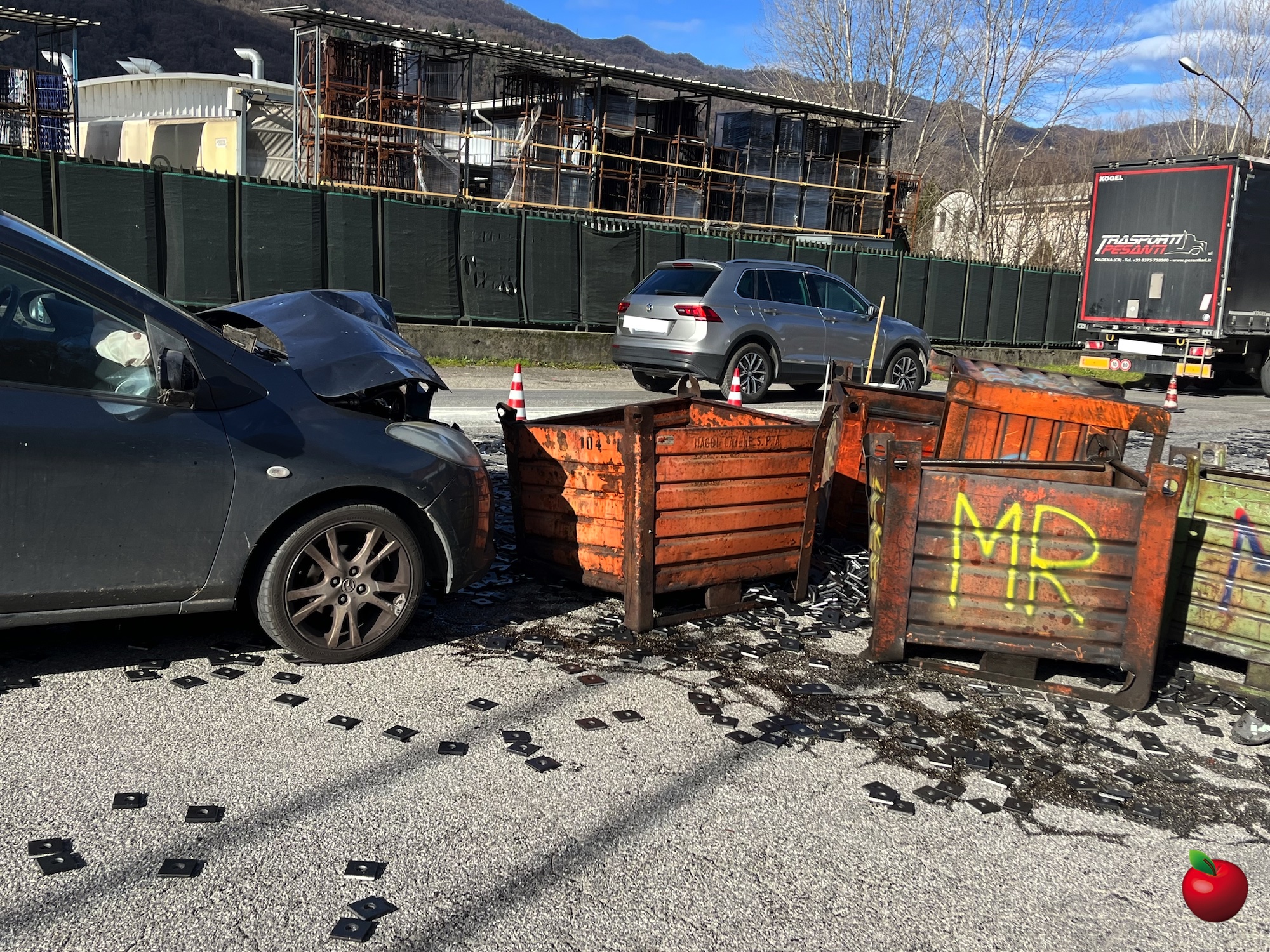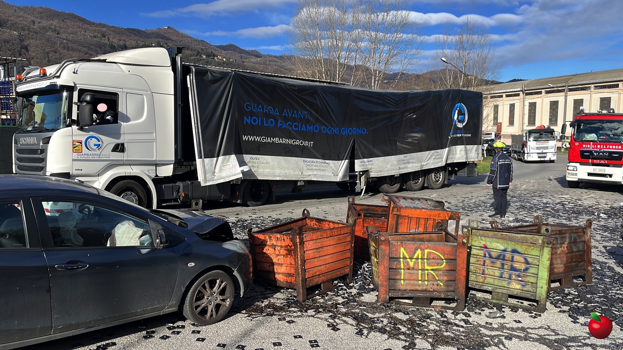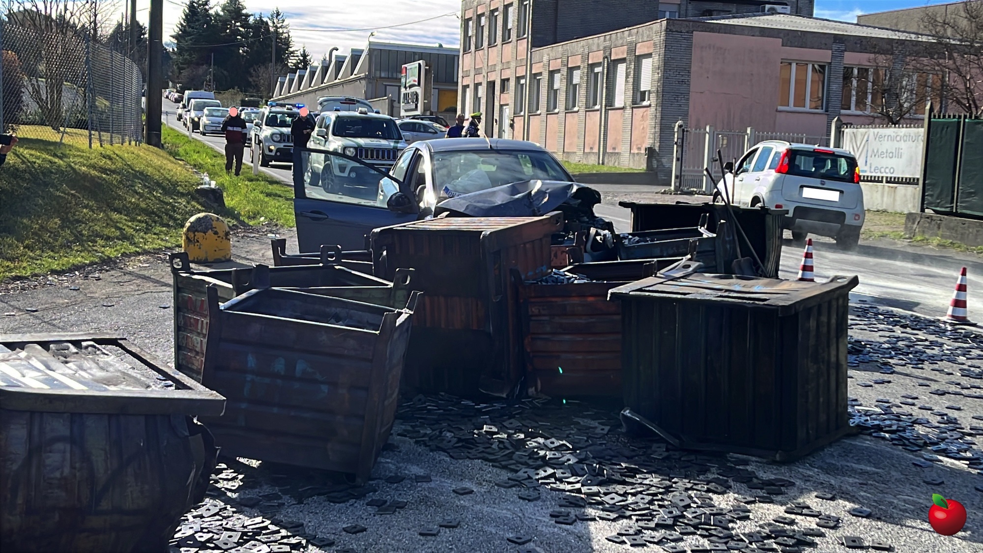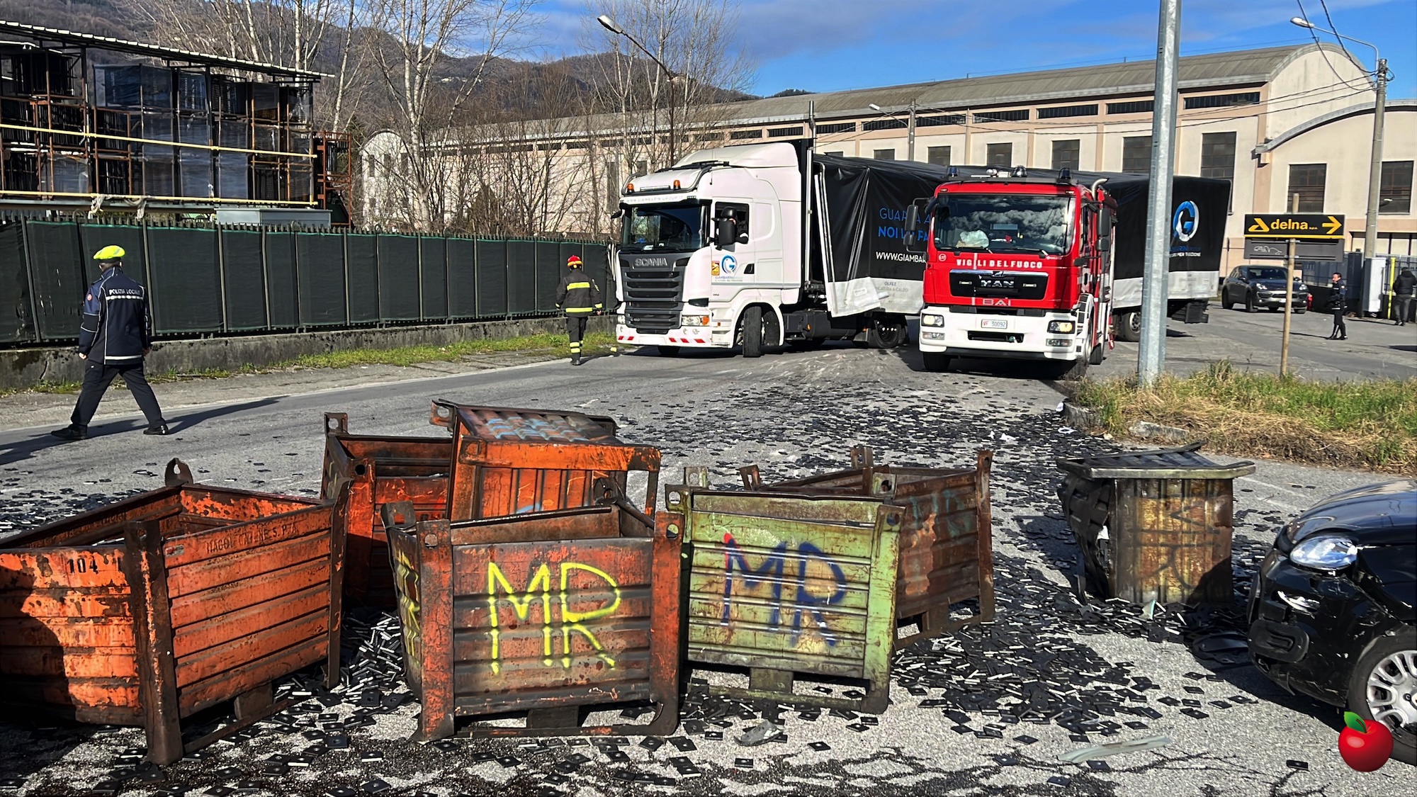 Tutto è accaduto in pochi istanti, un lasso di tempo non sufficiente per il conducente del mezzo pesante per avvisare i veicoli in transito ed evitare impatti contro i cassoni. Fatto che invece si è verificato.