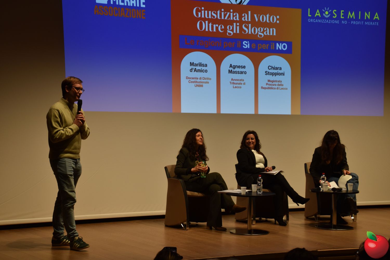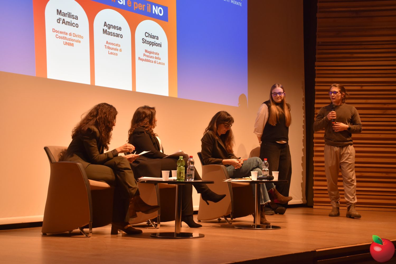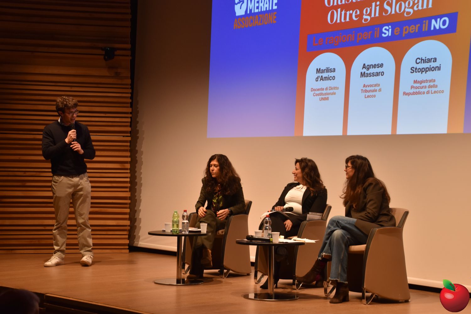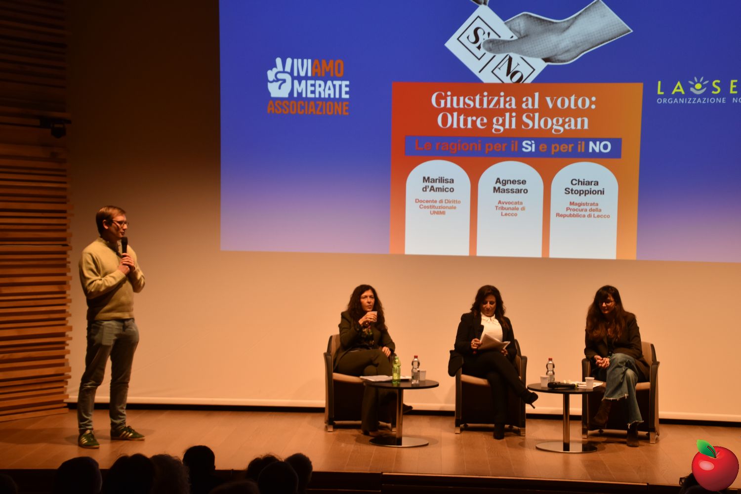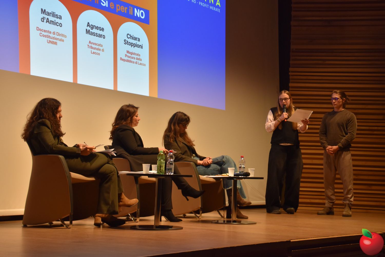 Sul palco due voci autorevoli, portatrici di posizioni differenti: la costituzionalista Marilisa D'Amico, docente di diritto costituzionale presso l'Università degli Studi di Milano, a spiegare le ragioni per il “Sì”, e la magistrata Chiara Stoppioni, sostituta procuratrice presso la Procura della Repubblica di Lecco e presidente della sottosezione locale dell'Associazione Nazionale Magistrati, schierata per il “No”.