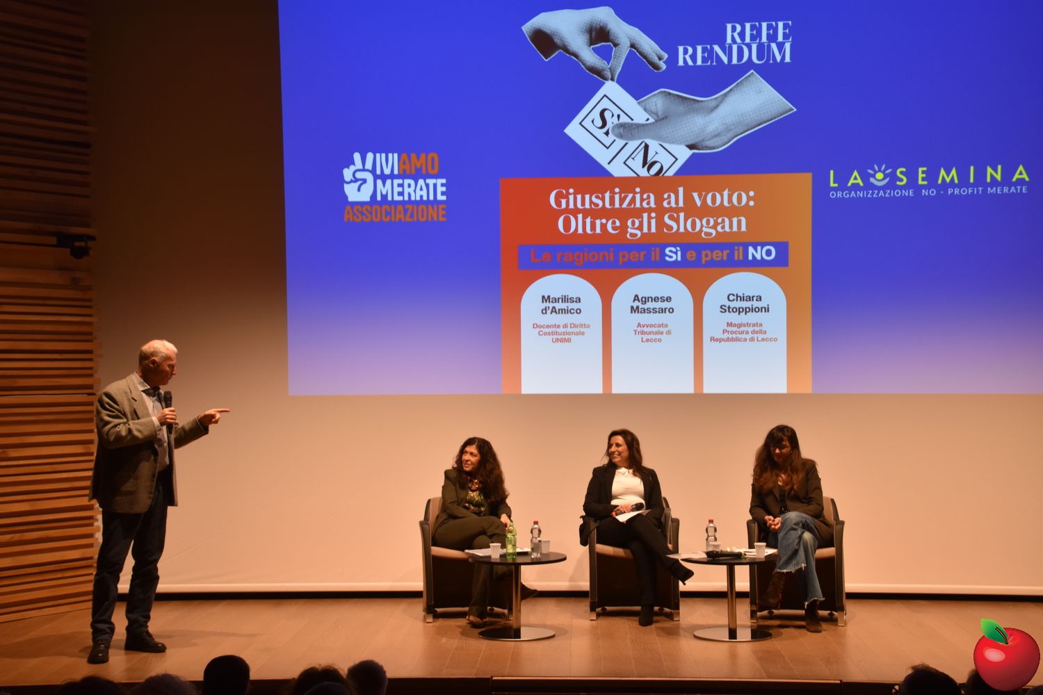 Auditorium pieno e tanta voglia di capire uno dei temi caldi del momento. In questo clima si è svolta ieri sera a Merate, presso la sala comunale intitolata a Giusy Spezzaferri, la serata “Giustizia al voto: oltre gli slogan”, promossa dalle associazioni Viviamo Merate e La Semina. Un appuntamento pensato per entrare nel merito della riforma costituzionale sulla giustizia e offrire ai cittadini gli strumenti necessari per esercitare il proprio diritto di voto in maniera consapevole.