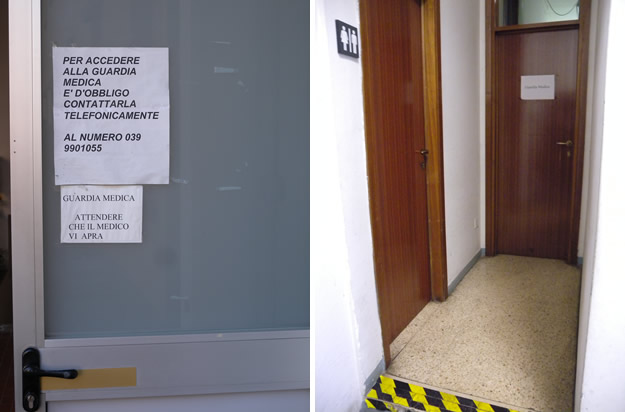 Per accedervi bisogna aver preventivamente avvisato telefonicamente il medico di turno e, in molti casi, bisogna anche attendere che, lo stesso, dopo aver ricevuto la chiamata, apra dall'interno la porta dell'ambulatorio.
