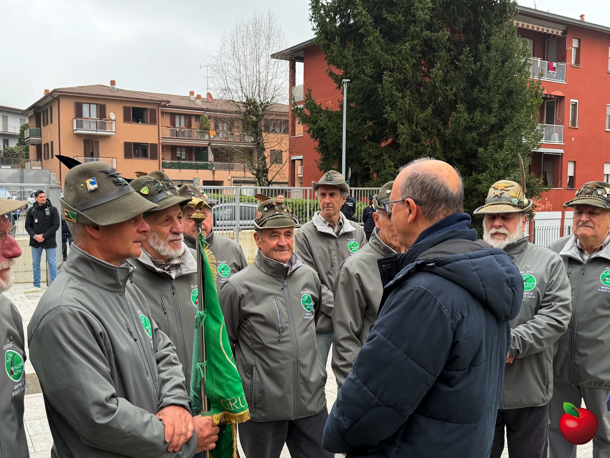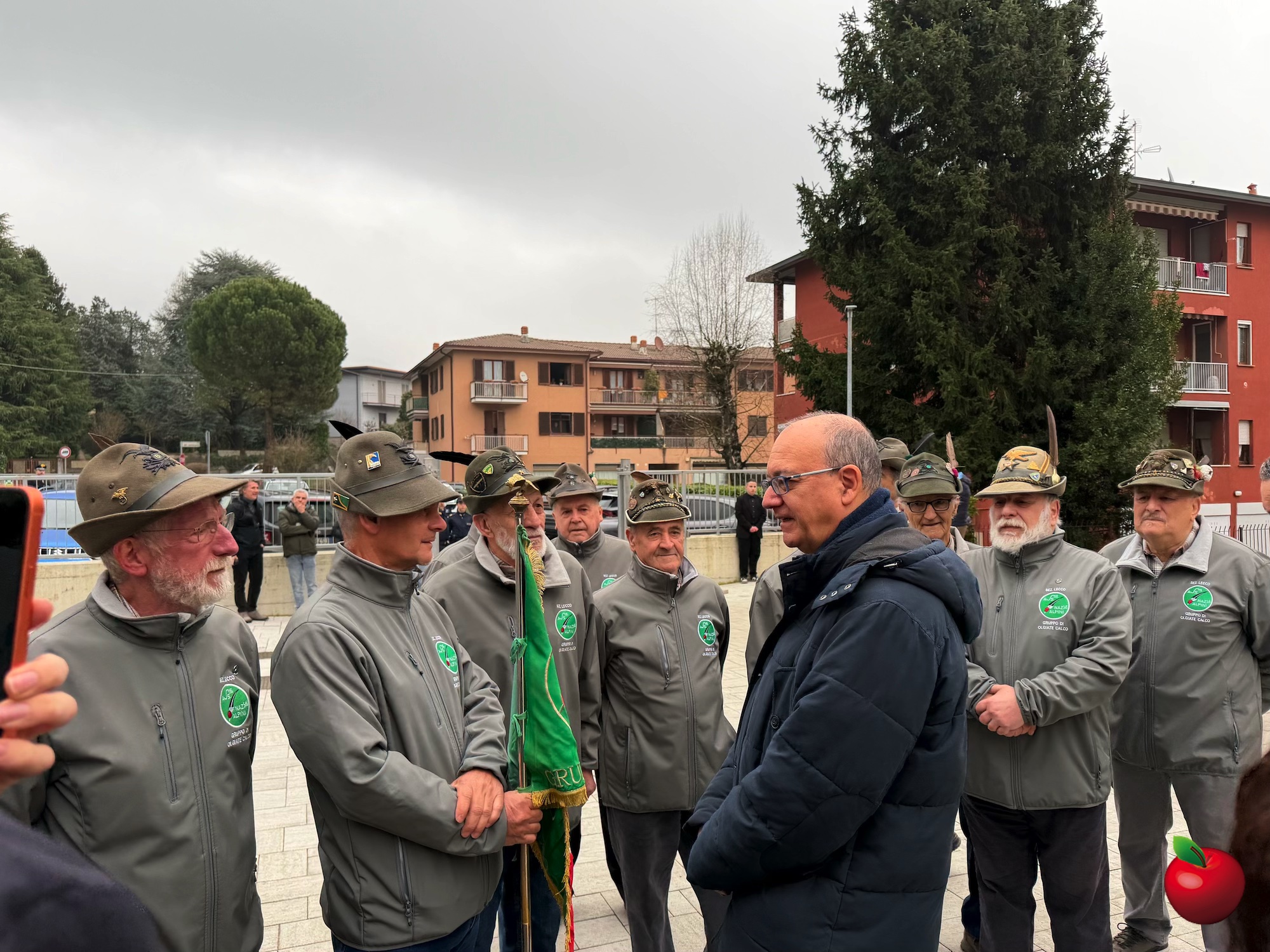 Particolarmente solenne il momento dell’alzabandiera, alla presenza degli Alpini del gruppo di Olgiate e Calco, che il Ministro ha salutato personalmente, scambiando con loro alcune parole.