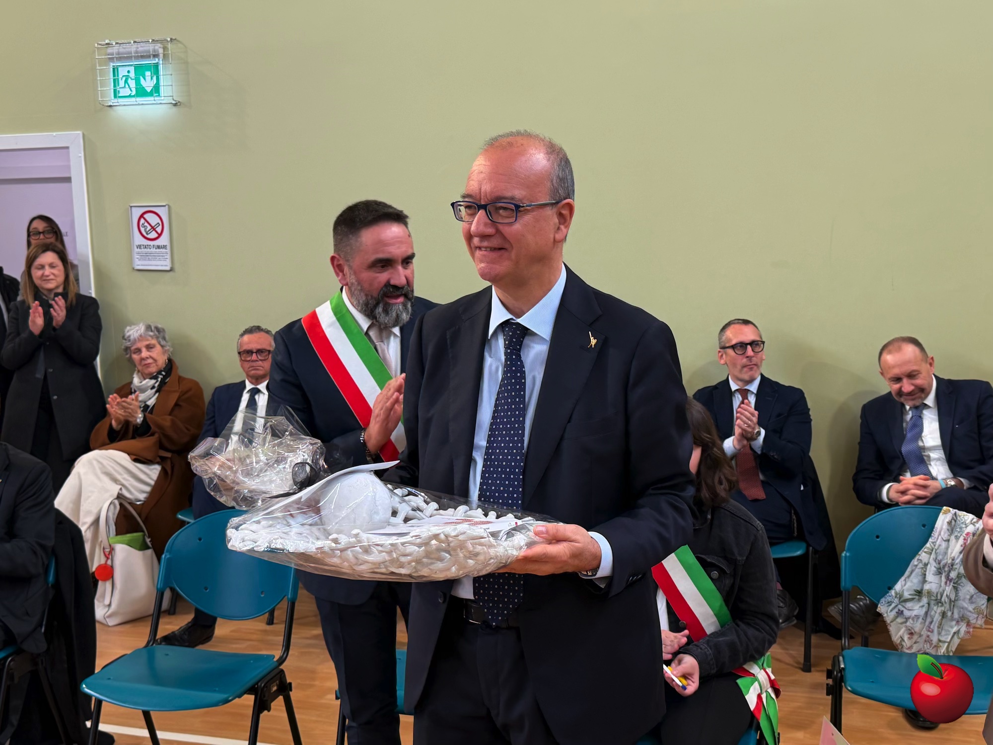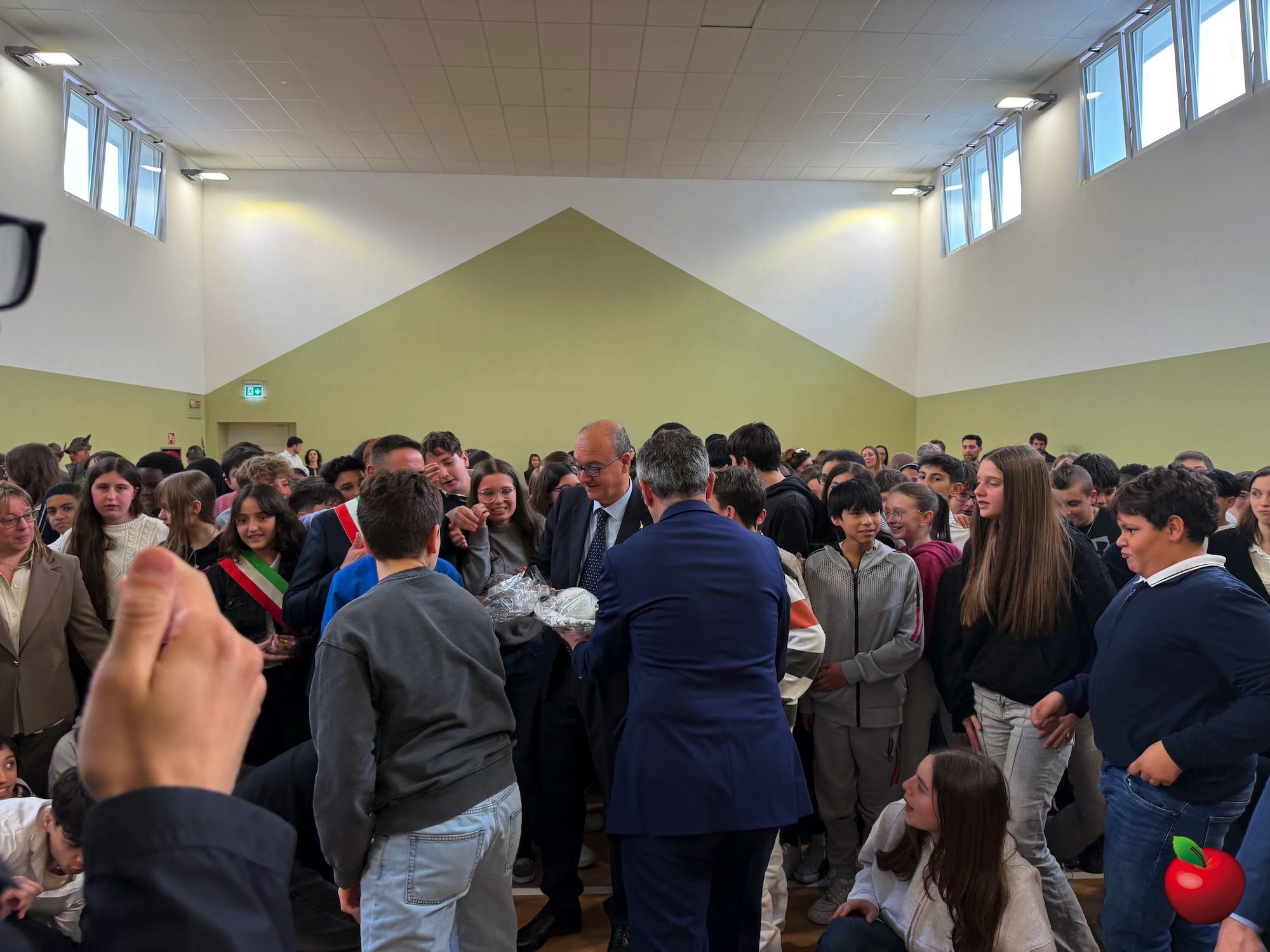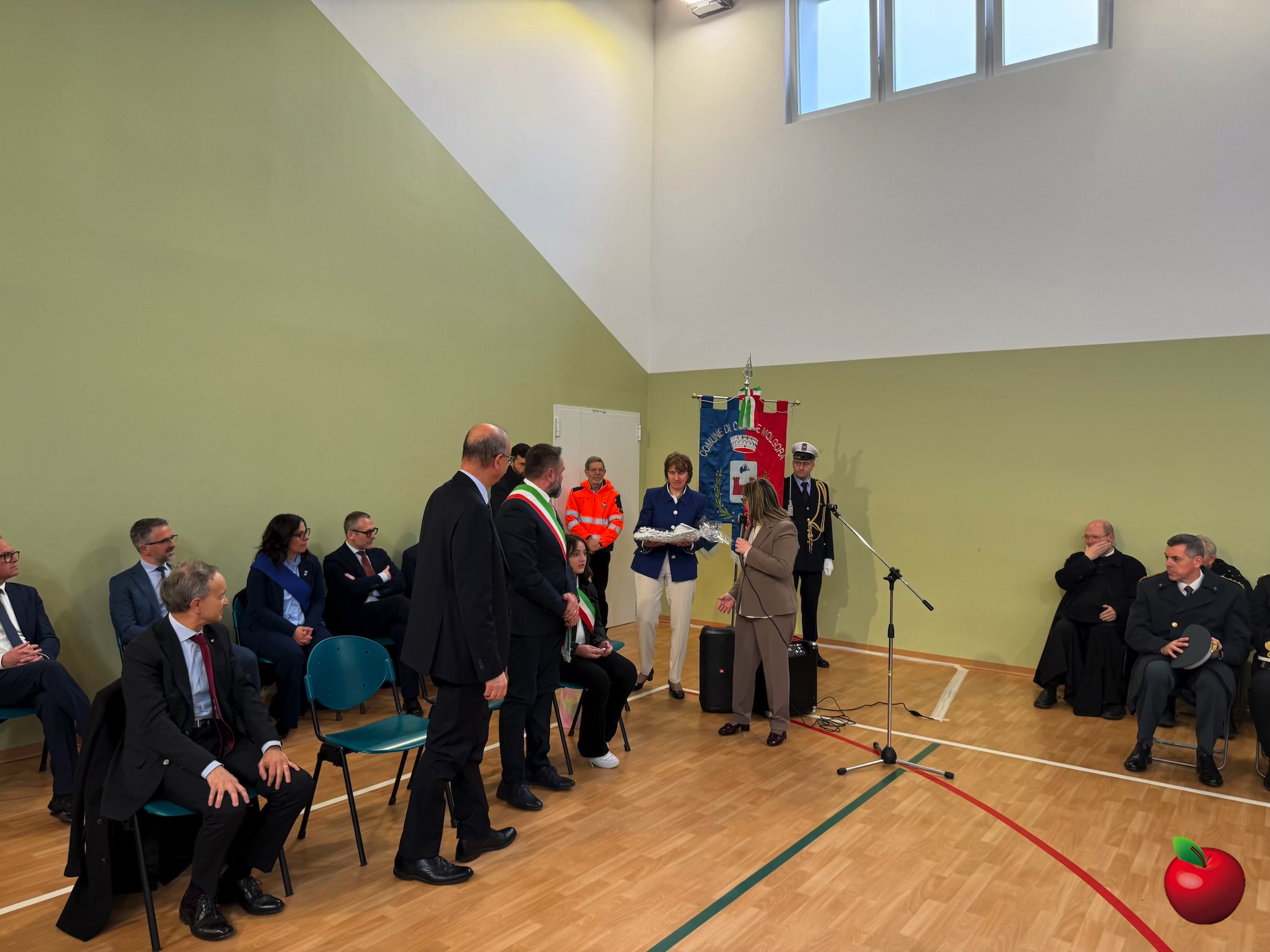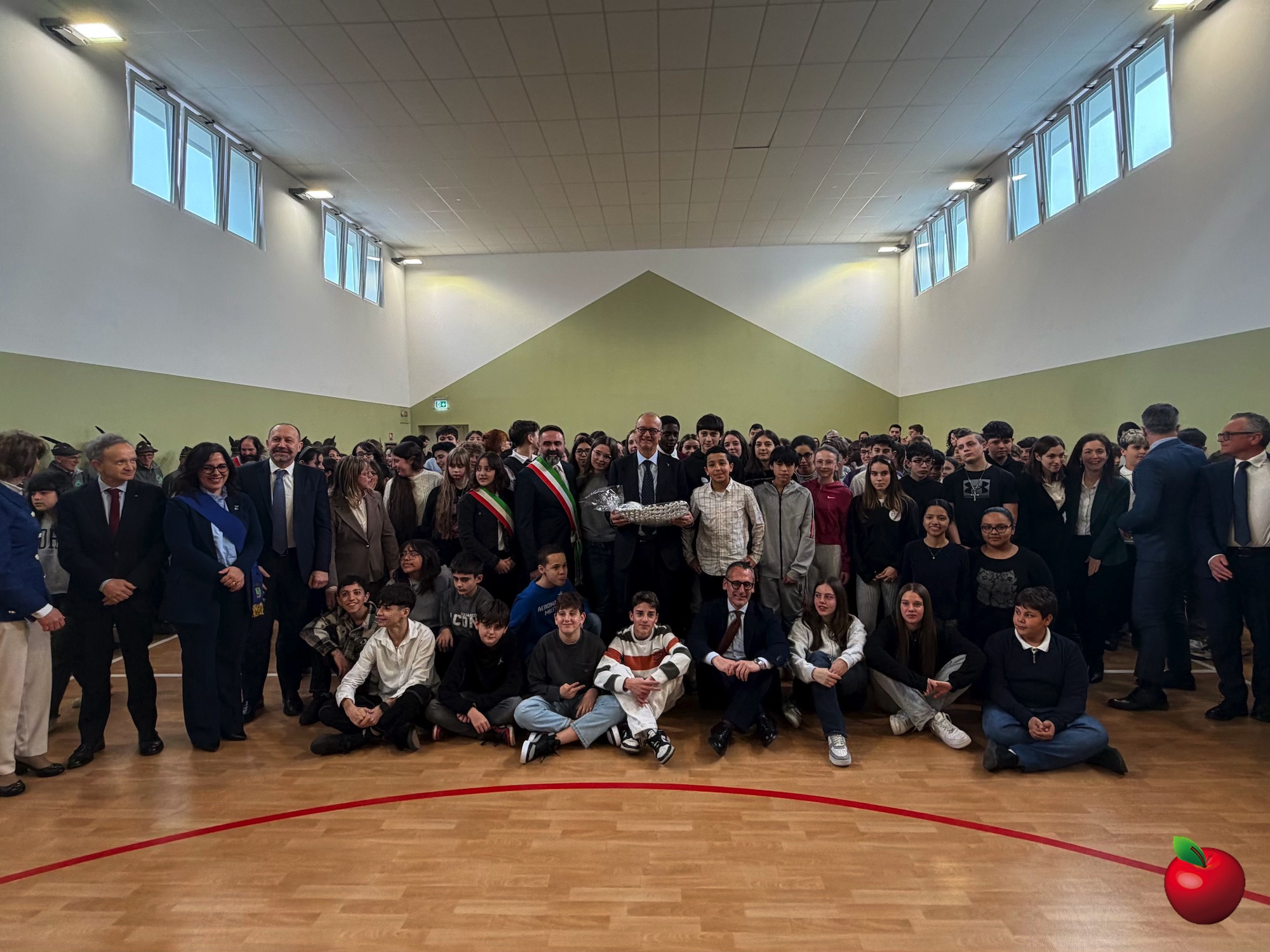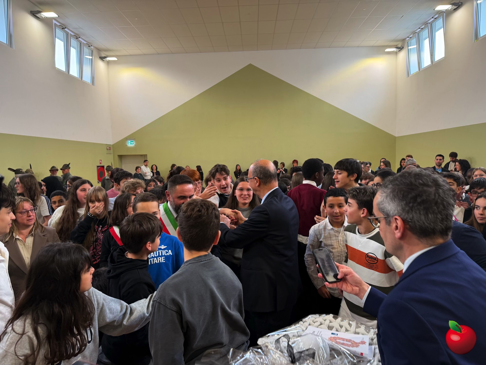 La mattinata è proseguita in palestra, dove si sono riunite tutte le classi e si sono tenuti gli interventi istituzionali. La dirigente Chiara Ferrario ha sottolineato come la nuova scuola sia stata concepita come uno spazio innovativo e inclusivo, dove ogni studente possa sentirsi accolto e valorizzato. Non solo innovazione strutturale e tecnologica, ma una comunità attiva capace di coniugare sostenibilità ambientale, competenze digitali e civiche per formare cittadini consapevoli dei valori della Costituzione italiana e pronti alle nuove sfide globali. Un richiamo speciale è stato rivolto agli studenti, primi ad abitare questi nuovi spazi, chiamati a custodirli con cura e senso di responsabilità.
