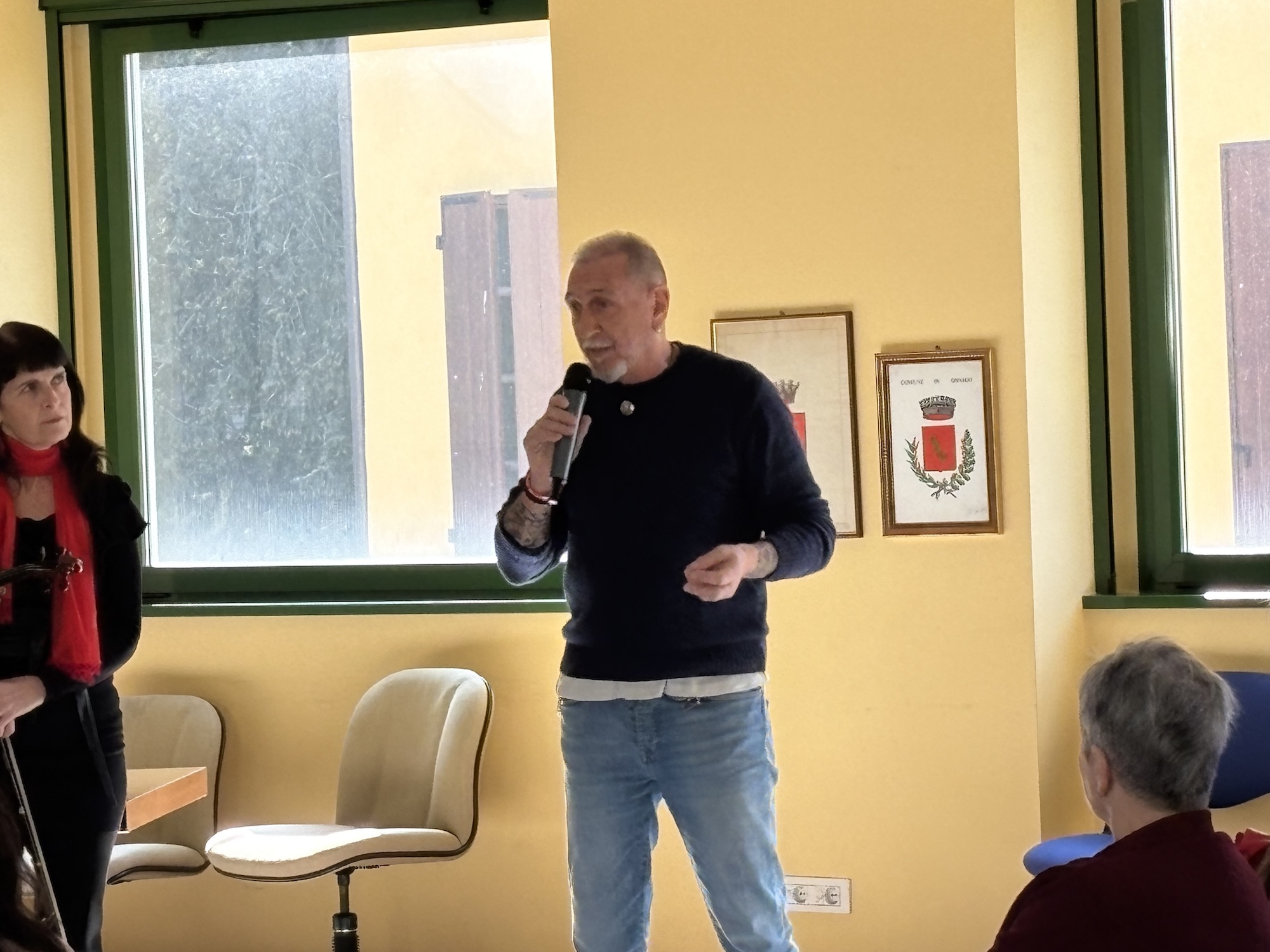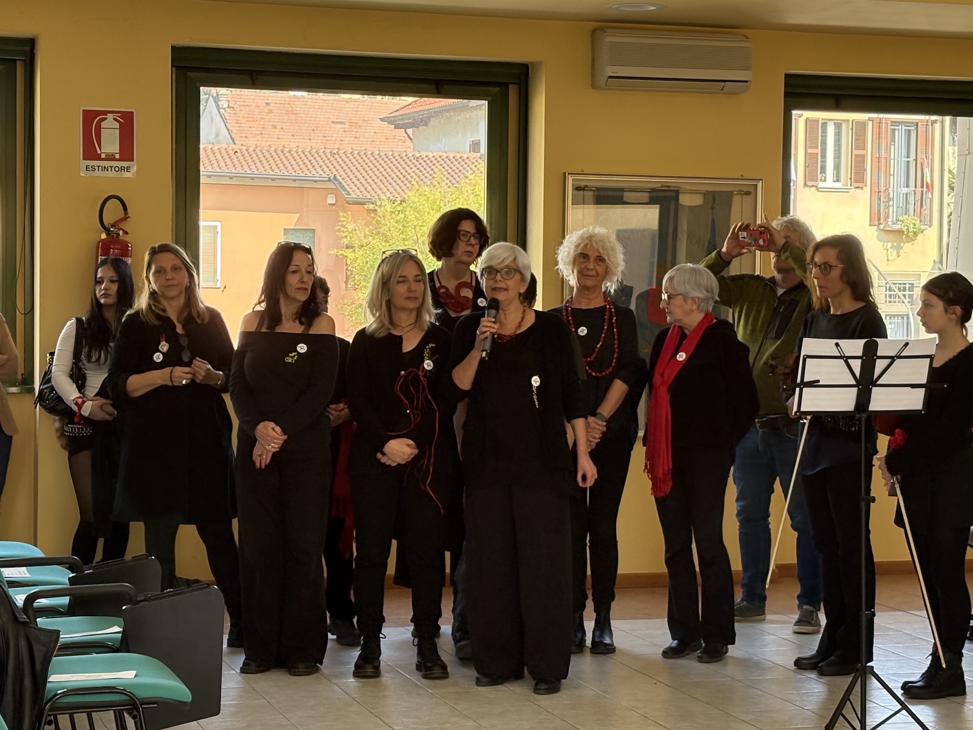 La mattinata è poi proseguita nella sala civica Sandro Pertini, dove l’associazione Arci La Loco ha dato vita, con l’accompagnamento musicale dell’associazione Archè, a una performance simbolica dedicata alle donne vittime di violenza.