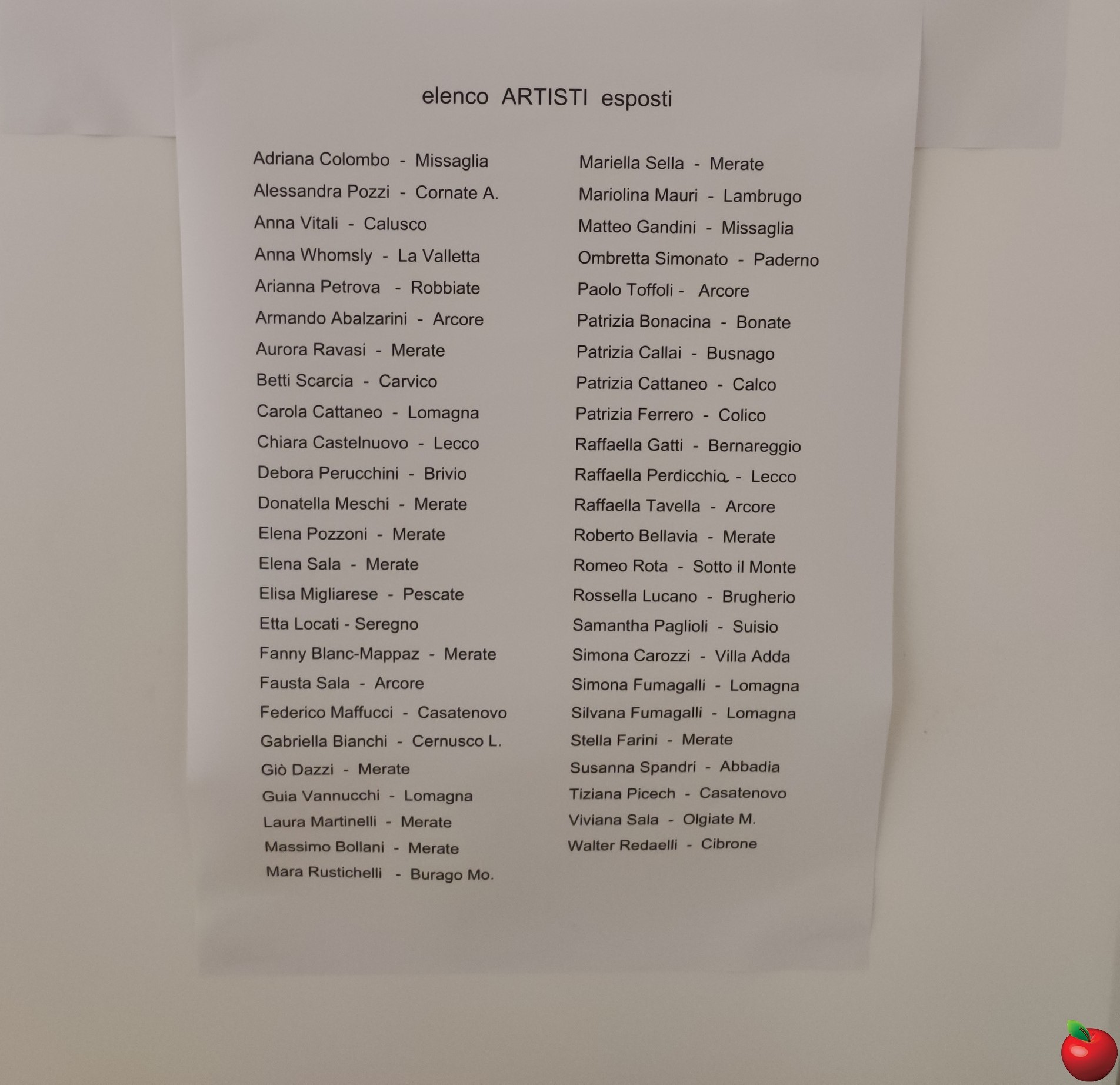 L'elenco degli artisti in mostra