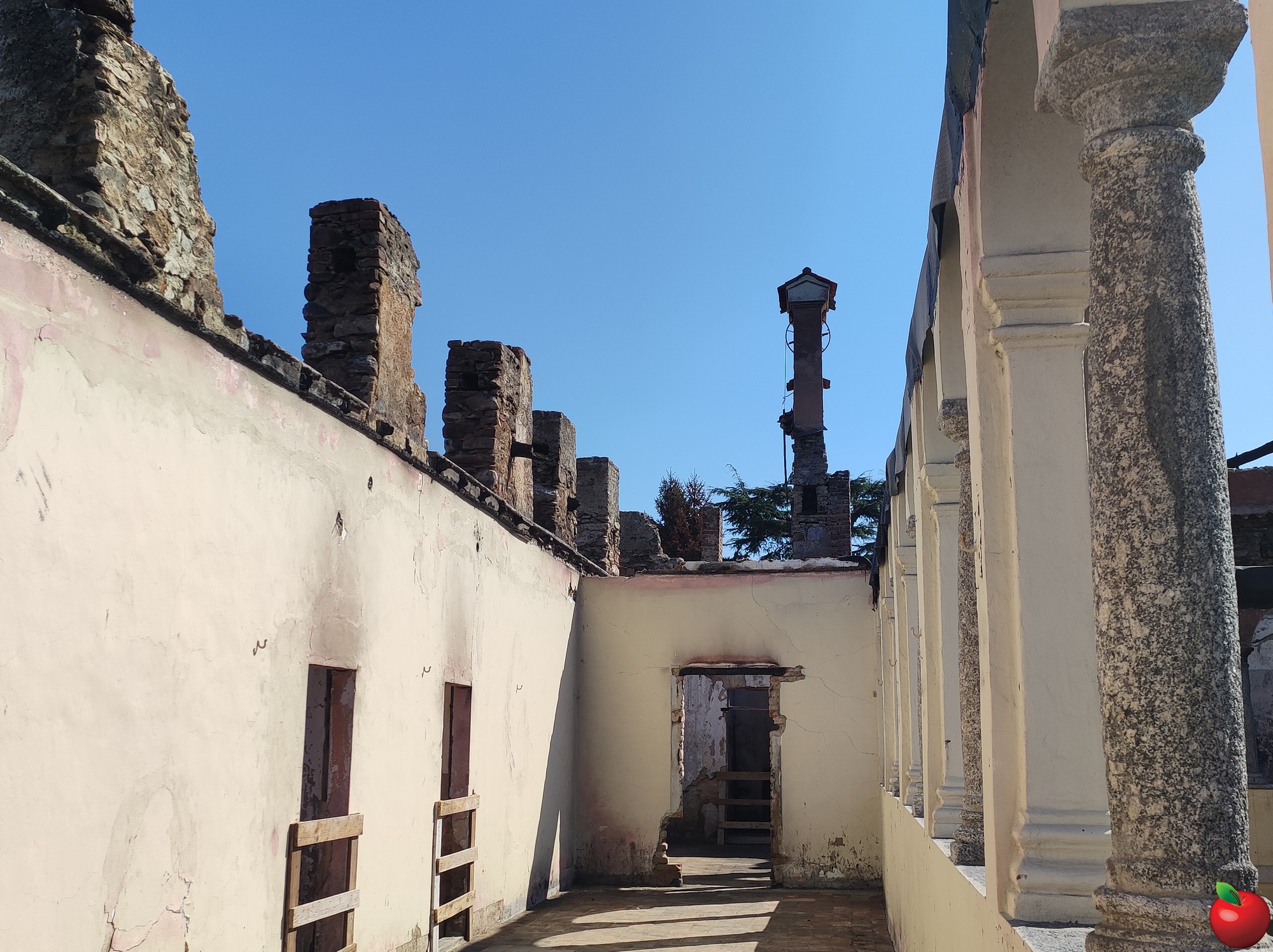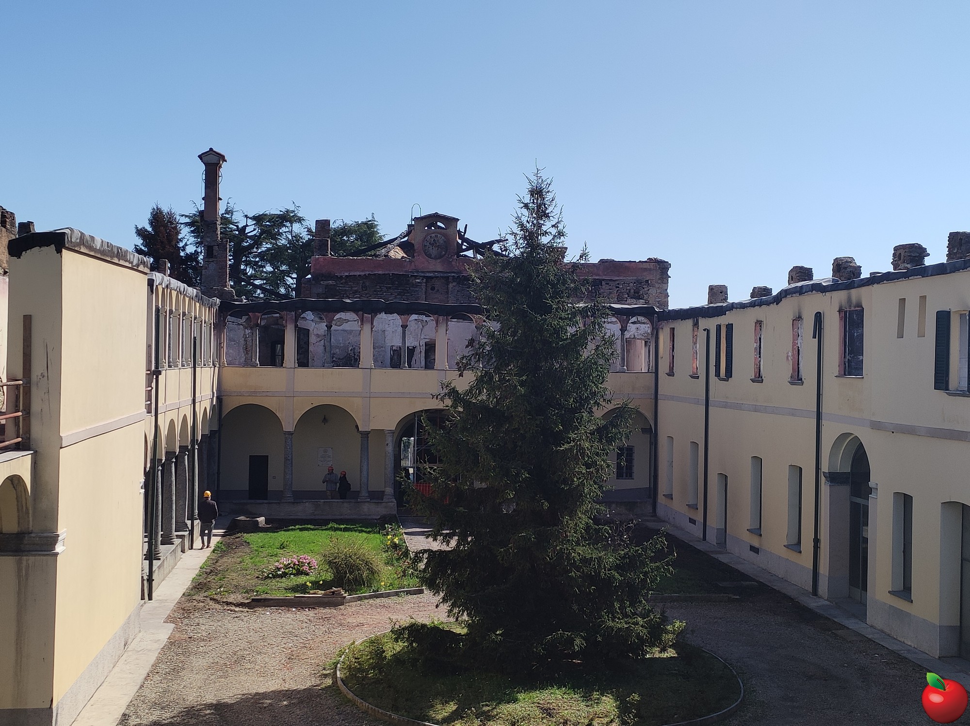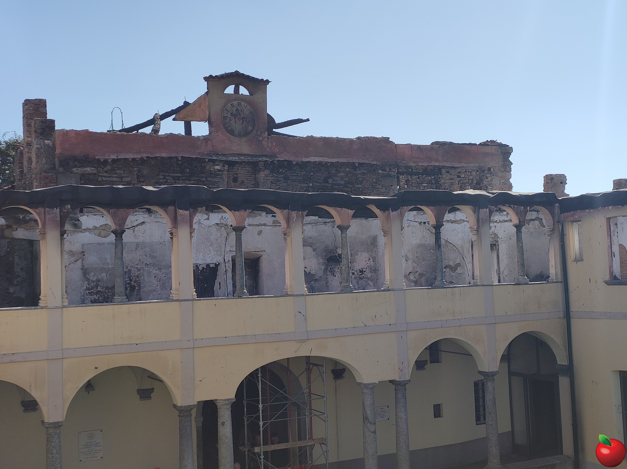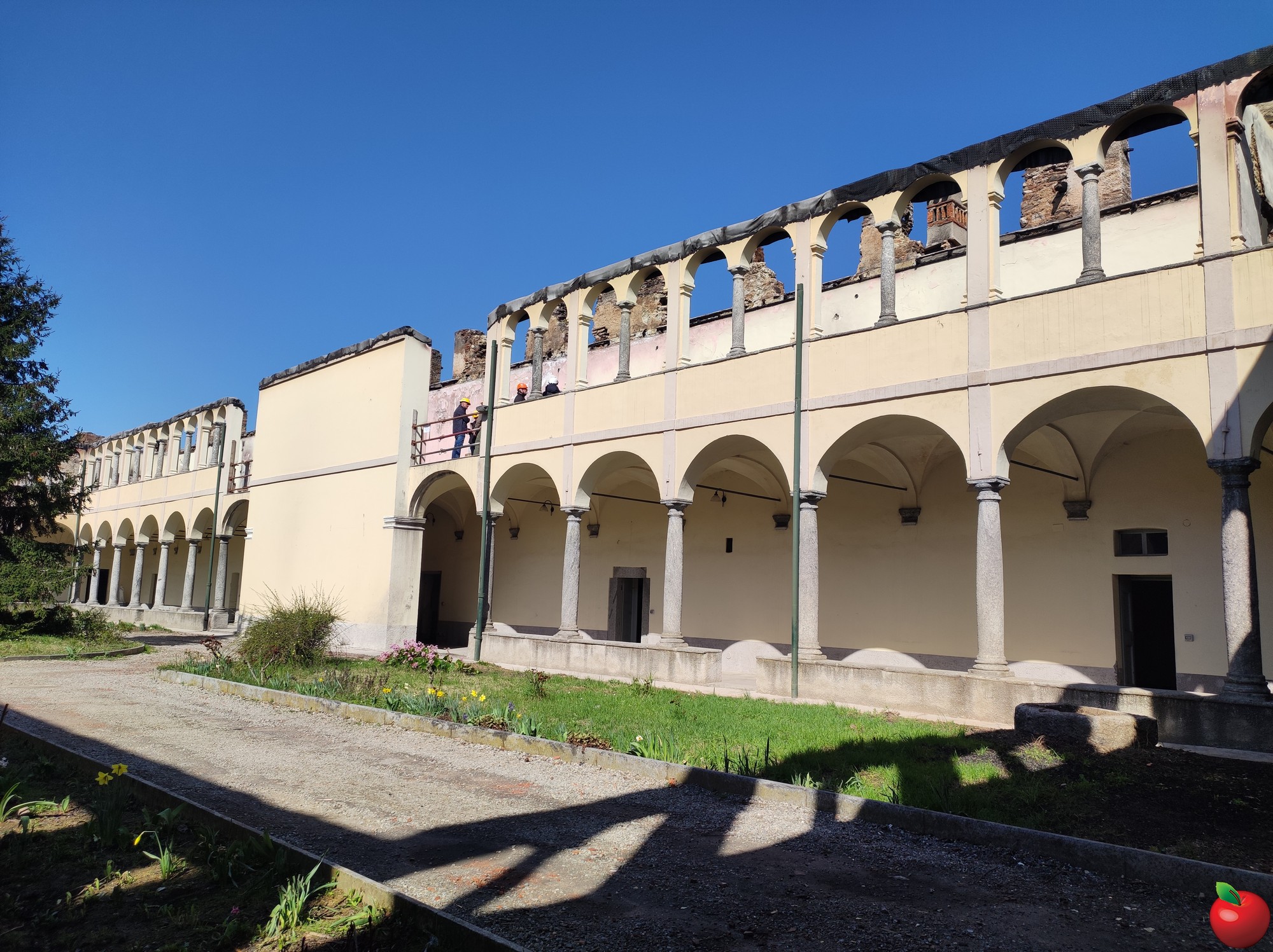 La combustione e crollo totale della copertura di legno, il cedimento dei solai in legno con crollo di elementi strutturali e danneggiamenti estesi alle murature del primo piano del monastero hanno portato all'elaborazione, da parte dell'ingegnere Gianluigi Meroni, di un piano con tre obbiettivi principali: la protezione dell'edificio dagli agenti atmosferici, il sostegno strutturale alle murature e interventi futuri di consolidamento strutturale e di restauro. “Verrà montato un ponteggio per permettere la creazione di una copertura in capriate reticolari in acciaio rivestite di un manto di lamiera grecata che fungerà da tetto provvisorio” ha specificato Meroni, “si procederà poi a una stabilizzazione di colonne e murature per evitare ribaltamenti e collassi”.