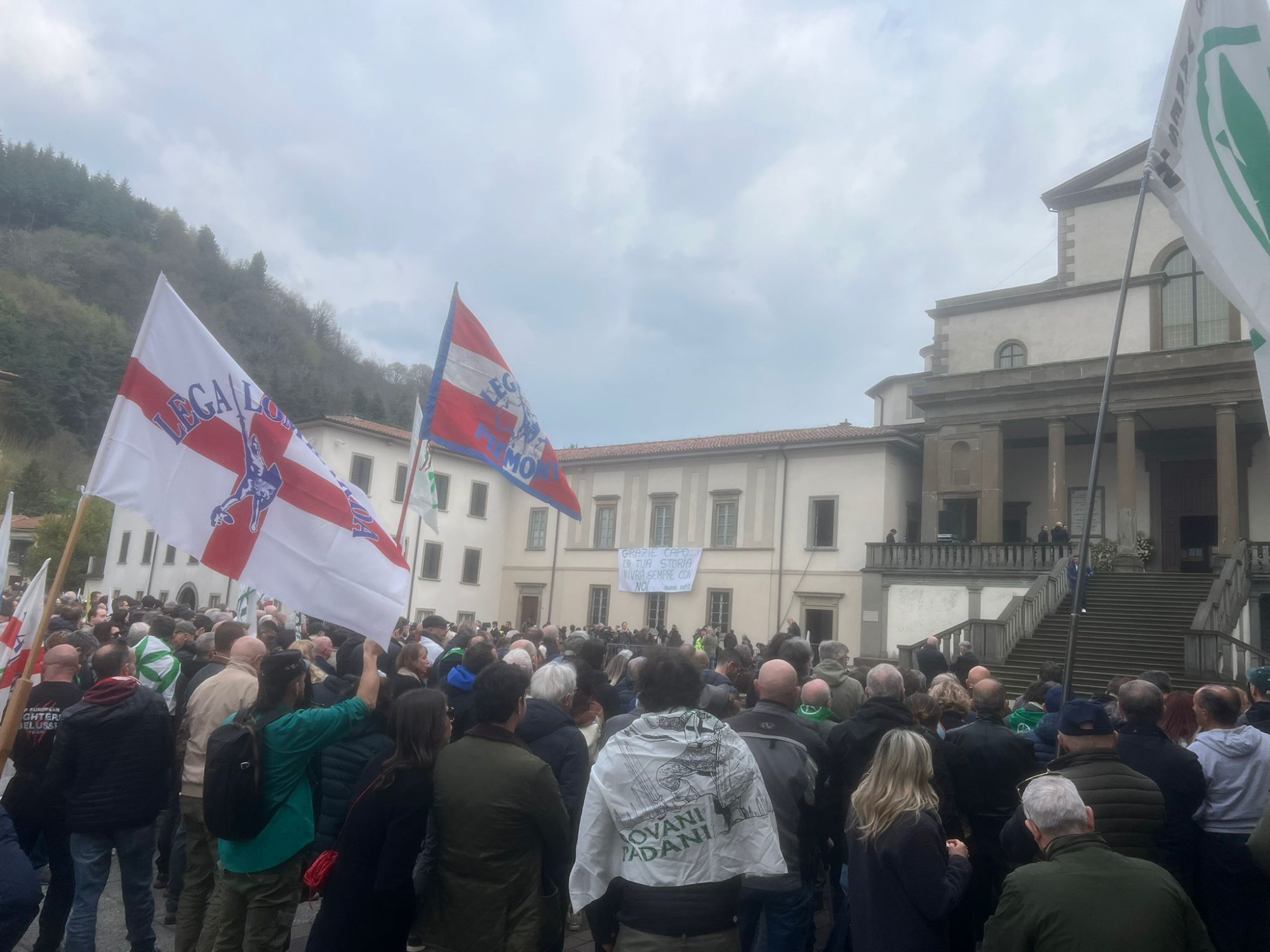 Fin dalle prime ore del mattino, Pontida si riempie. Arrivano da tutta la Lombardia, ma anche da più lontano. Volti segnati dal tempo, militanti storici, molti amministratori locali. È evidente che non si tratta solo di un funerale: è un ritorno alle origini, a quel luogo che per i leghisti, quelli veri, è sempre stato molto più di un semplice luogo. Pontida non è solo un luogo: è un pezzo dell’anima leghista che non si racconta, si vive. E si capisce davvero solo se l’hai attraversata da militante, sotto la pioggia, con i piedi immersi nel fango o sotto il sole cocente, dove si respira un senso di appartenenza che da fuori non si spiega e forse può apparire fuori dal tempo. Anche se, indubbiamente, negli ultimi anni è cambiata: gli appuntamenti politici si sono via via trasformati, perdendo quella tensione originaria, fino ad assomigliare più a una sagra di paese che a un momento identitario capace di segnare davvero una comunità.