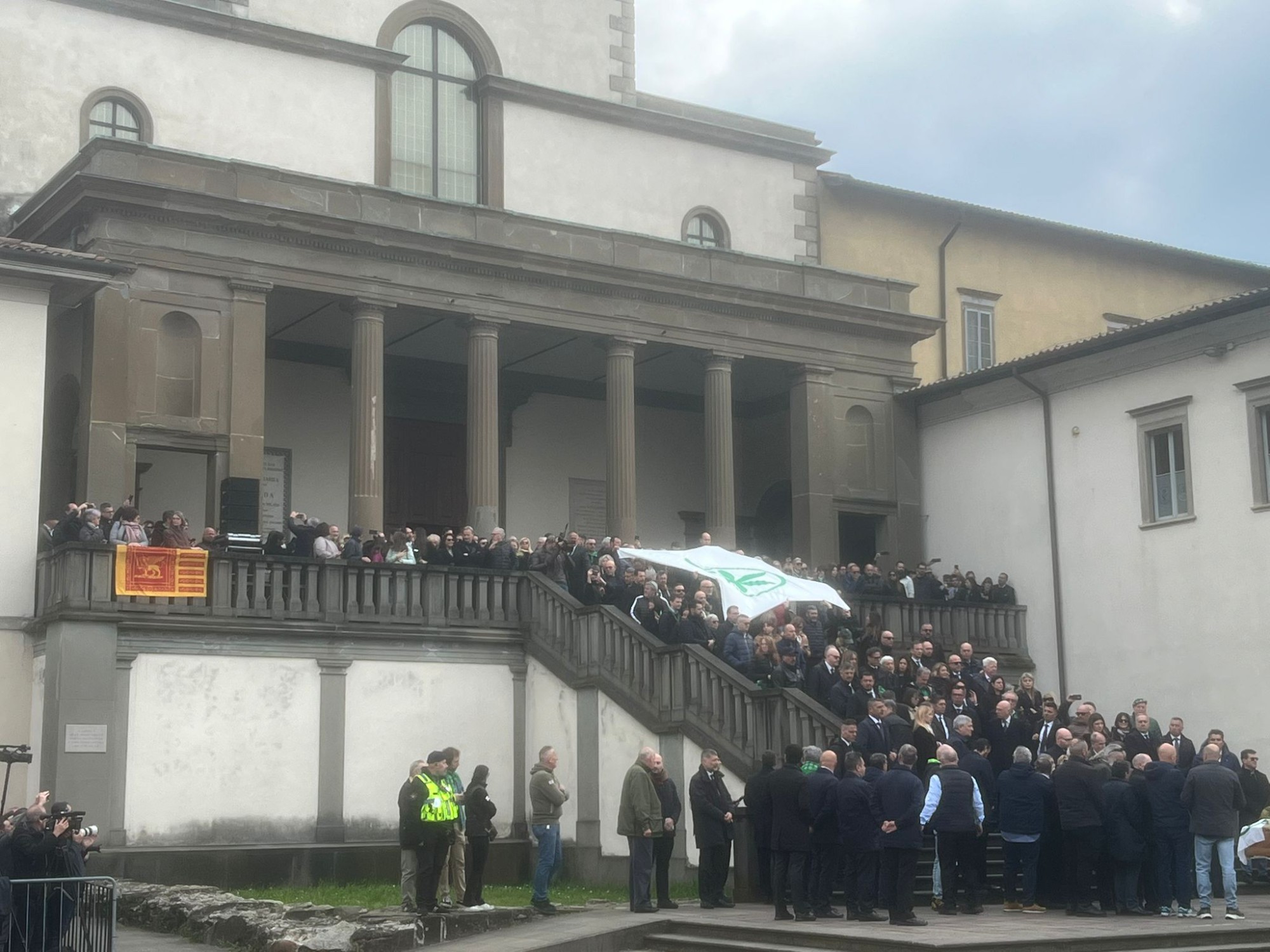 Tra la folla si respira un sentimento difficile da definire con una sola parola. C’è dolore, certo. Ma anche orgoglio. E, sotto traccia, qualcosa di più complesso: una domanda sospesa su cosa sia oggi quel movimento nato proprio attorno alla figura di Bossi. Quando arriva Luca Zaia, gli applausi tornano, caldi, convinti. In lui, molti vedono ancora un legame diretto con quella stagione politica fatta di territori, identità, autonomia. Un filo che, per una parte della base, non si è mai spezzato. Qualche applauso si leva dalle persone assiepate dietro le transenne all’arrivo delle personalità di governo: Giorgia Meloni, Antonio Tajani, Ignazio La Russa, Lorenzo Fontana e poi i ministri Giorgetti, Valditara, Locatelli; mentre qualche fischio si leva nei confronti di Mario Monti e Daniela Santanchè. Si nota la mancanza di leader politici e rappresentanti del centrosinistra.