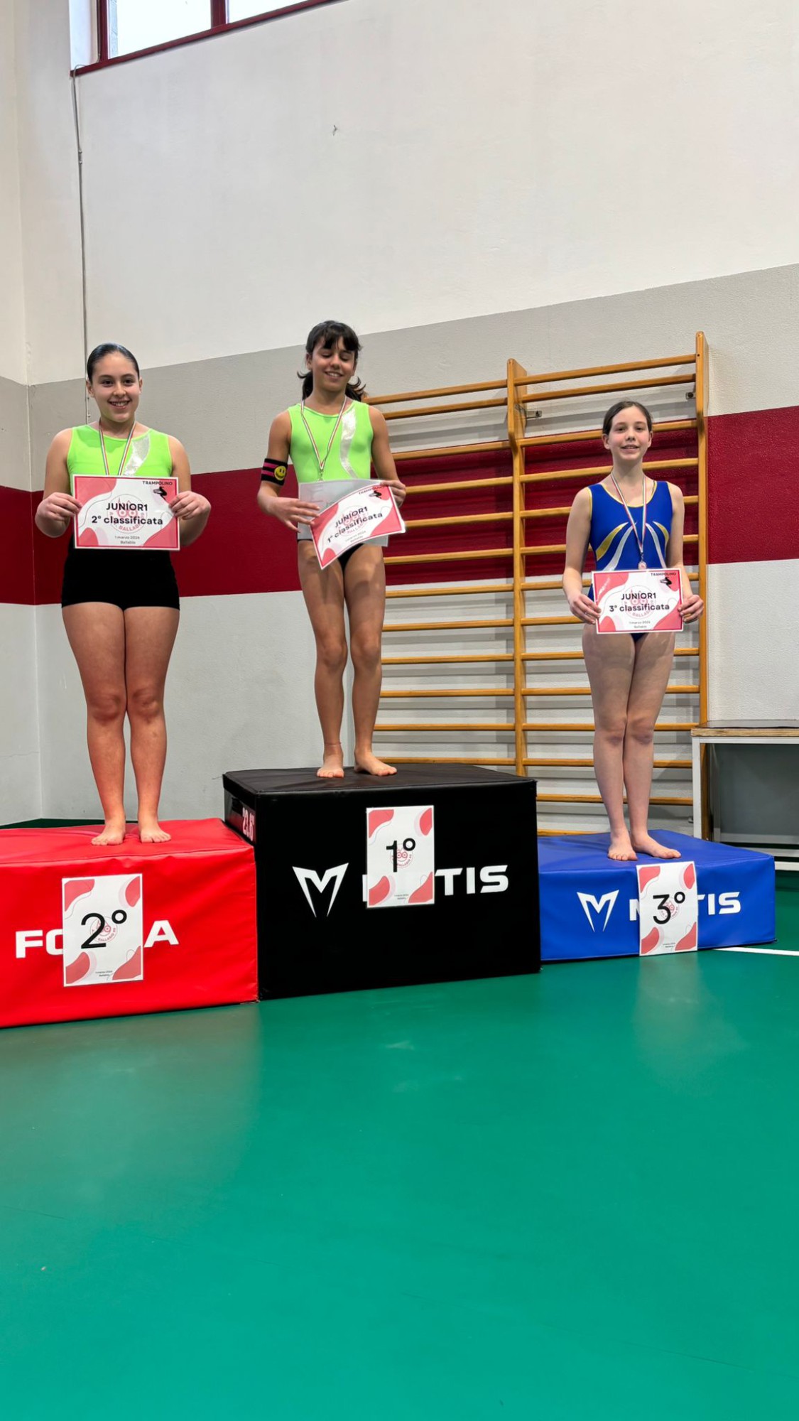 Sveva vince il terzo posto nella classifica assoluta, Agatha si classifica seconda nella specialità del corpo libero e terza al trampolino e Ginevra conquista il primo gradino del podio alla trave.