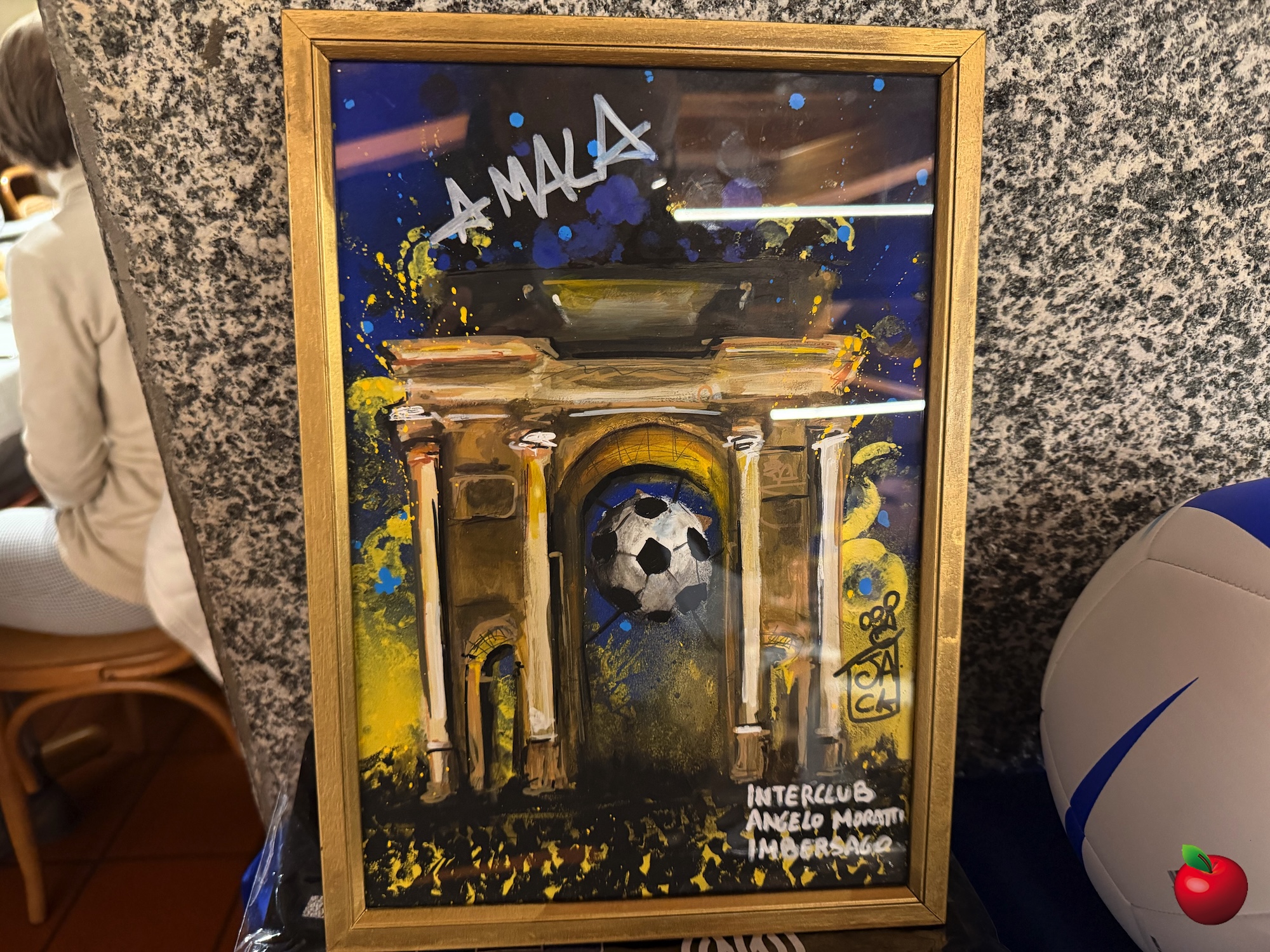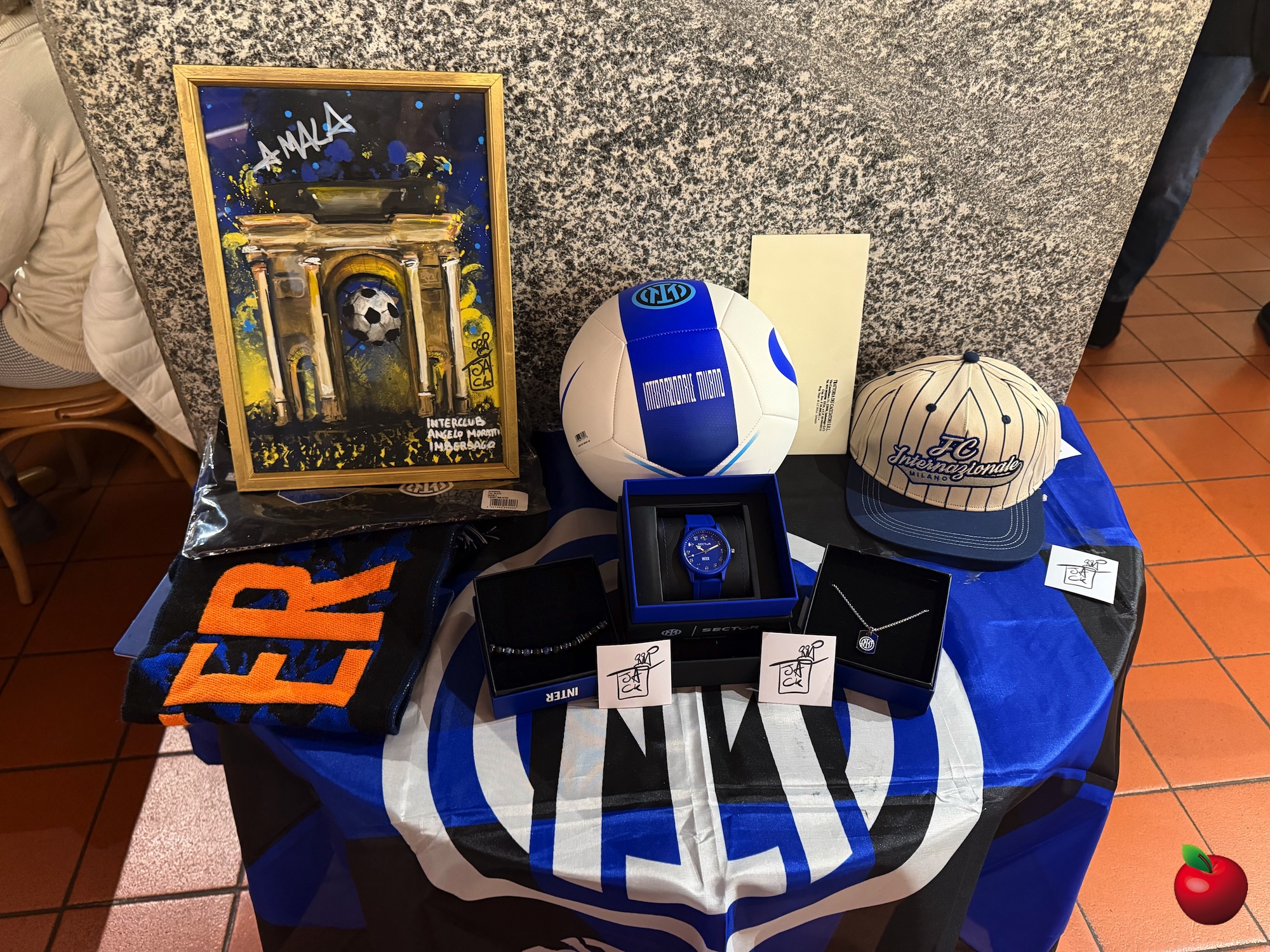 Il gran finale di serata è stata la tradizionale lotteria, ricca di premi a tema nerazzurro: magliette, bandiere e gadget molto apprezzati dai partecipanti. Tra i premi più originali, anche un’opera realizzata dallo street artist imbersaghese Giacomo “Jack” Perego, il cui laboratorio si trova proprio accanto alla trattoria.