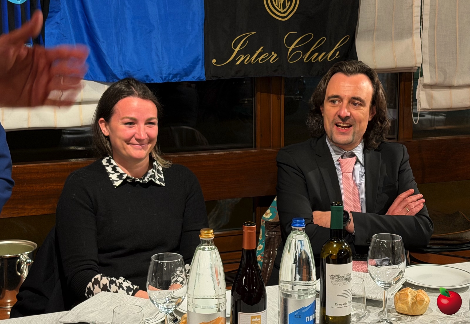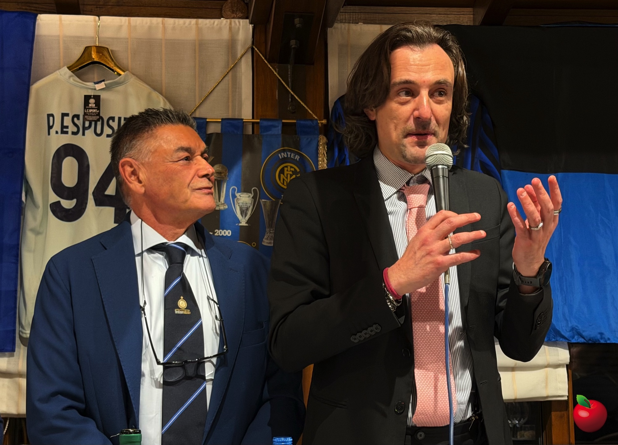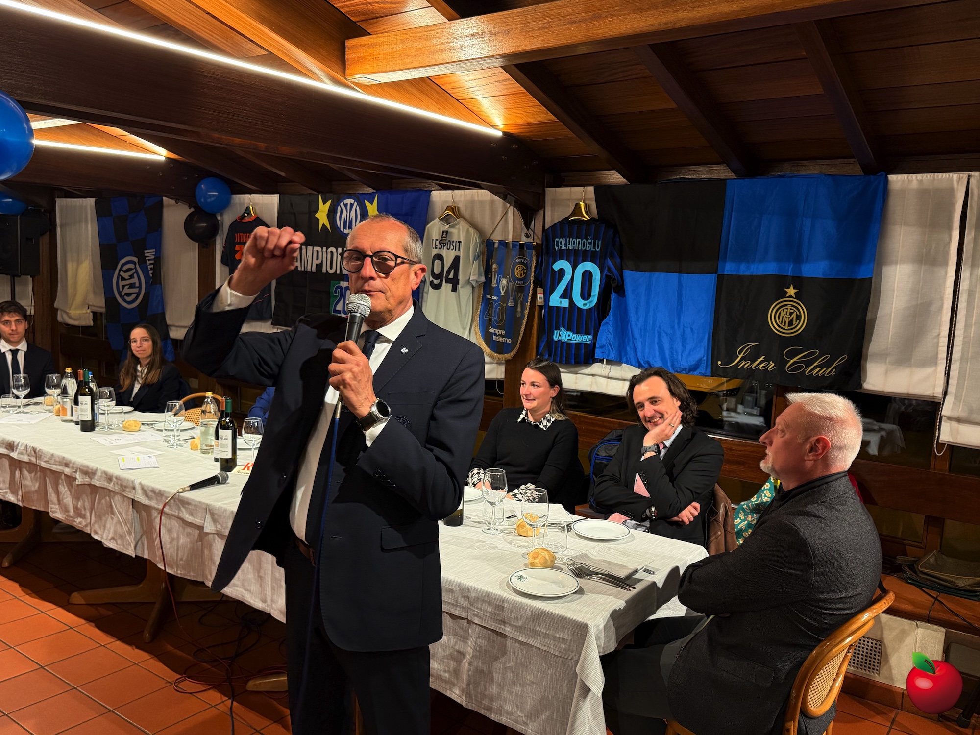 Non è mancato un momento di leggerezza, grazie a Giovanni Sandrè che ha lodato la generosità degli interisti presenti, scherzando poi sulla fede calcistica del direttore e trascinando la sala in un coro da stadio contro il Milan, subito accolto con entusiasmo dai commensali.