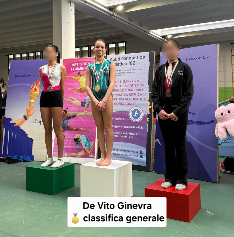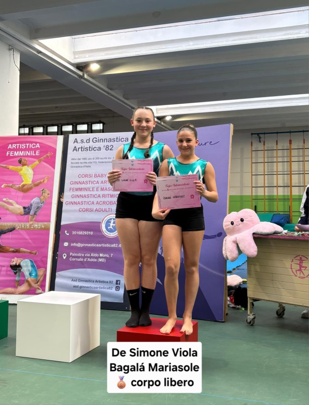 Ottime prove anche per Cecilia Ferrario e Greta Meloni (rispettivamente 1° e 3° nella classifica generale) e per Viola De Simone (3° posto alla trave e corpo libero) e Mariasole Bagalà (3° posto a volteggio e corpo libero)
