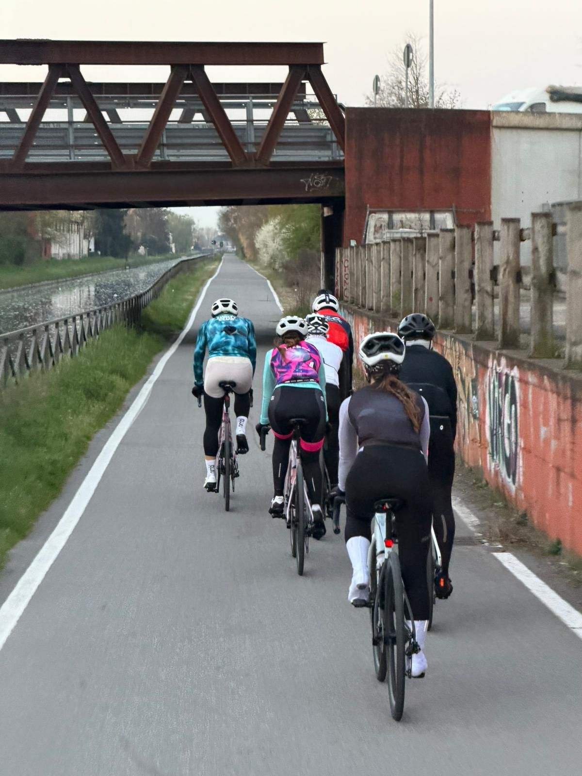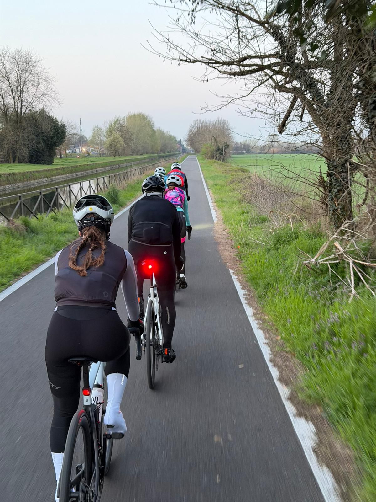 Spinta sul pedale e via verso sud attraversando città note per lo shopping, il lavoro, la scuola (e meno per una traversata in bici) come Monza, Sesto, i Navigli per poi proseguire verso Pavia con sosta per una indimenticabile foto di gruppo.