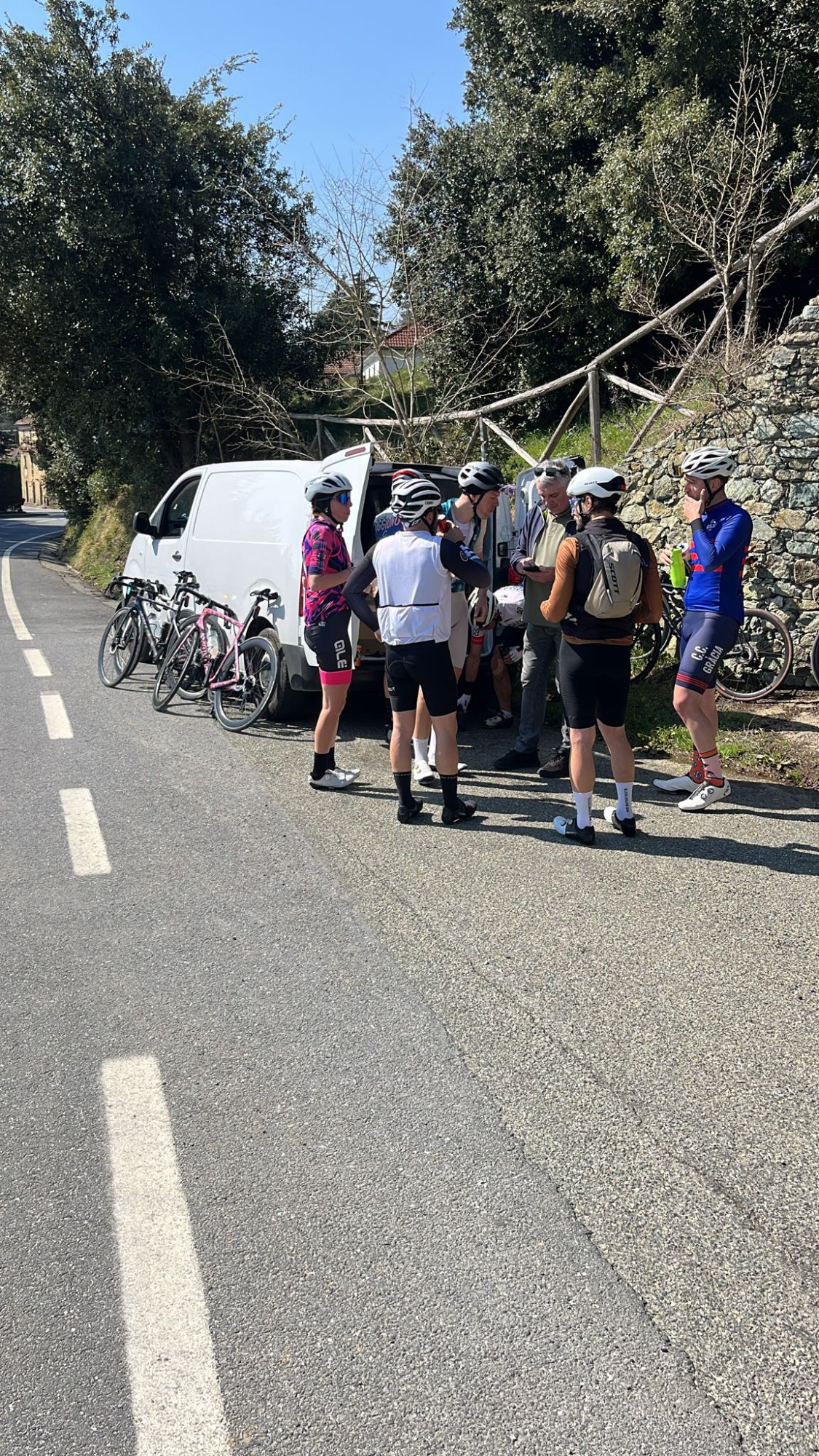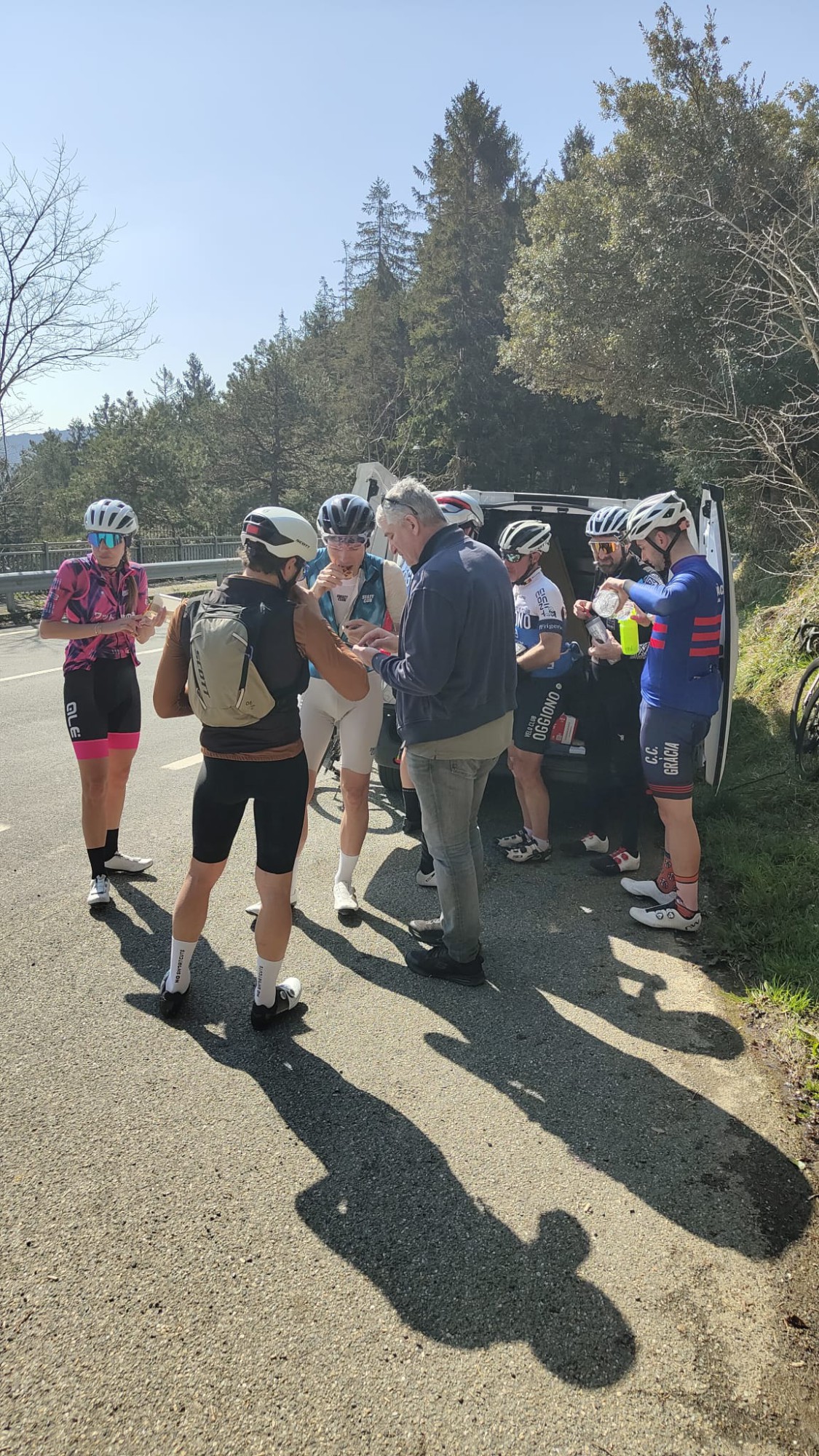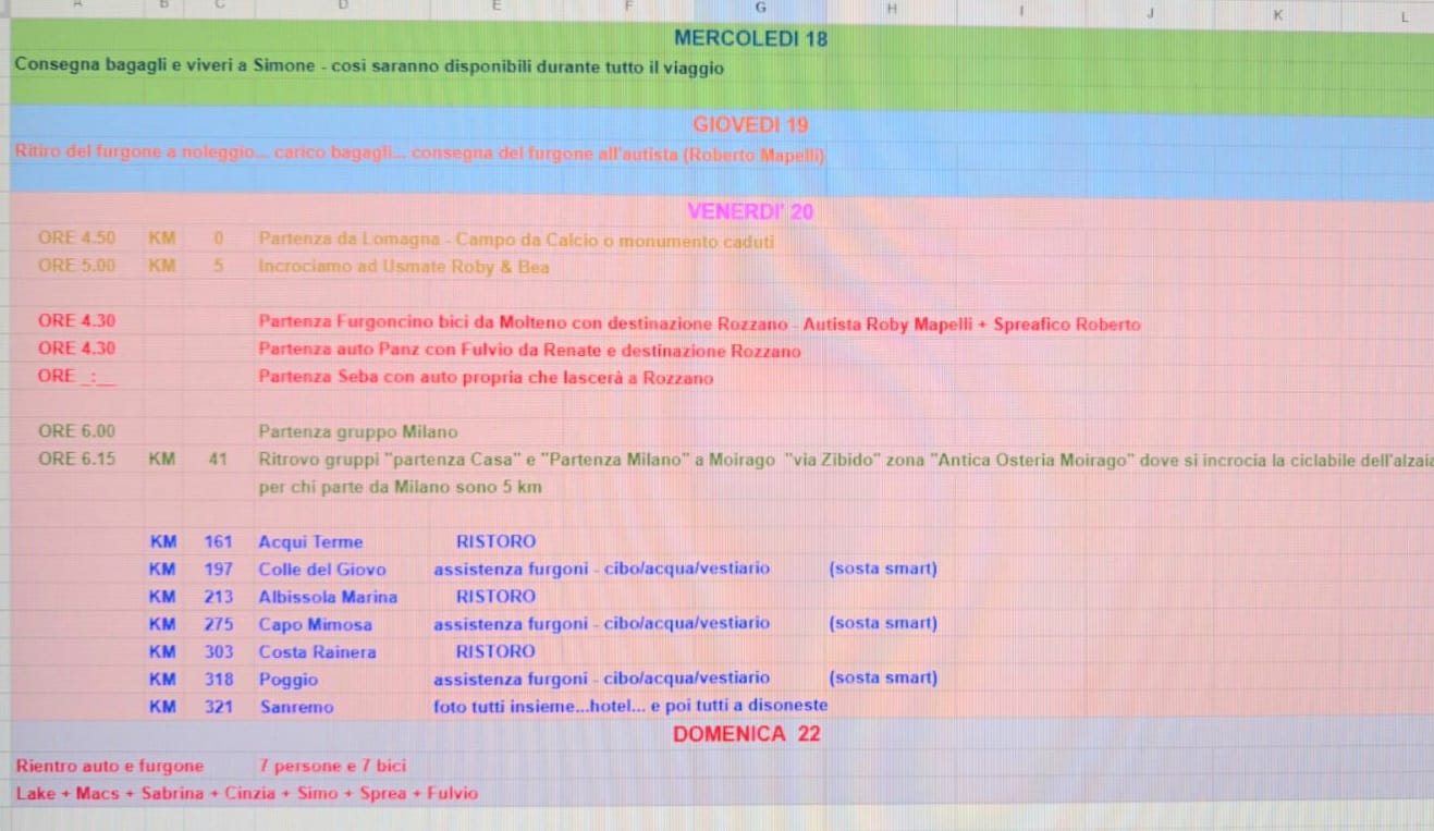 Stefano,. Roberto, Beatrice, Cinzia, Simone, Francesco, Massimiliano, Fulvio, Sebastiano, Sergio, Roberto accompagnati da Andrea e Roberto hanno così percorso la più nota tratta “Milano-Sanremo” partendo però dall'ultimo comune della provincia di Lecco e aggiungendo qualche km in più allo storico tragitto.