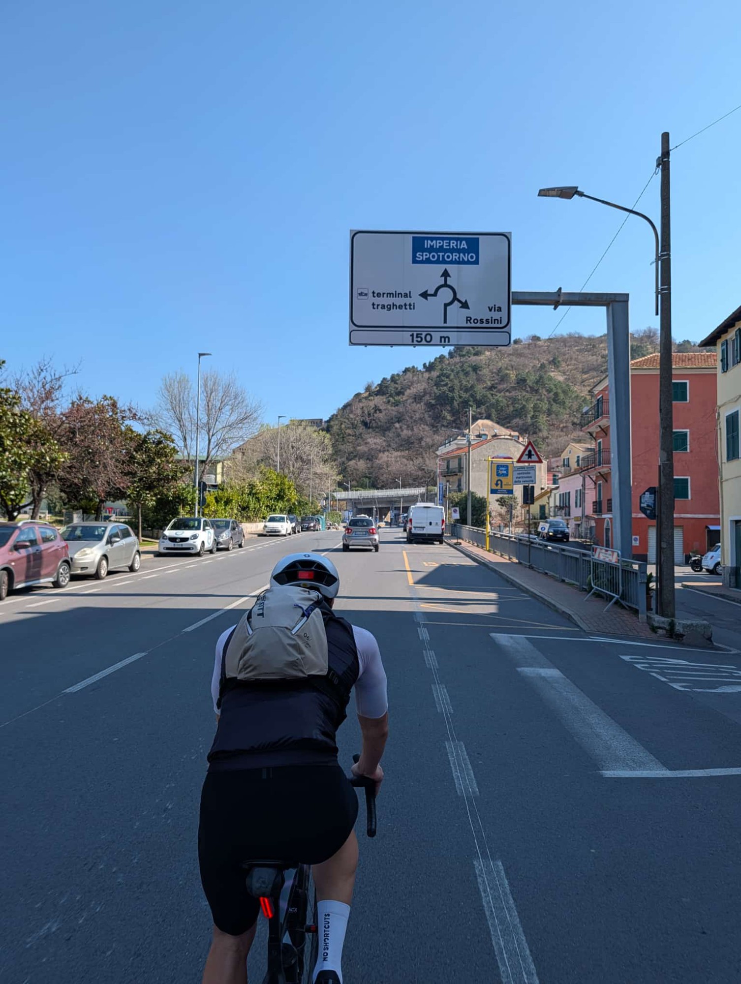 Ad accompagnare il tratto di costa è stata naturalmente l'Aurelia che tutti conoscono, con i suoi impegnativi tornanti e i suoi lunghi tratti tra i paesi. Uno dopo l'altro si sono susseguiti capo Mele, capo Cervo, capo Berta con panorami mozzafiato e luoghi fatati come l'isola di Bergeggi e la baia dei Saraceni.