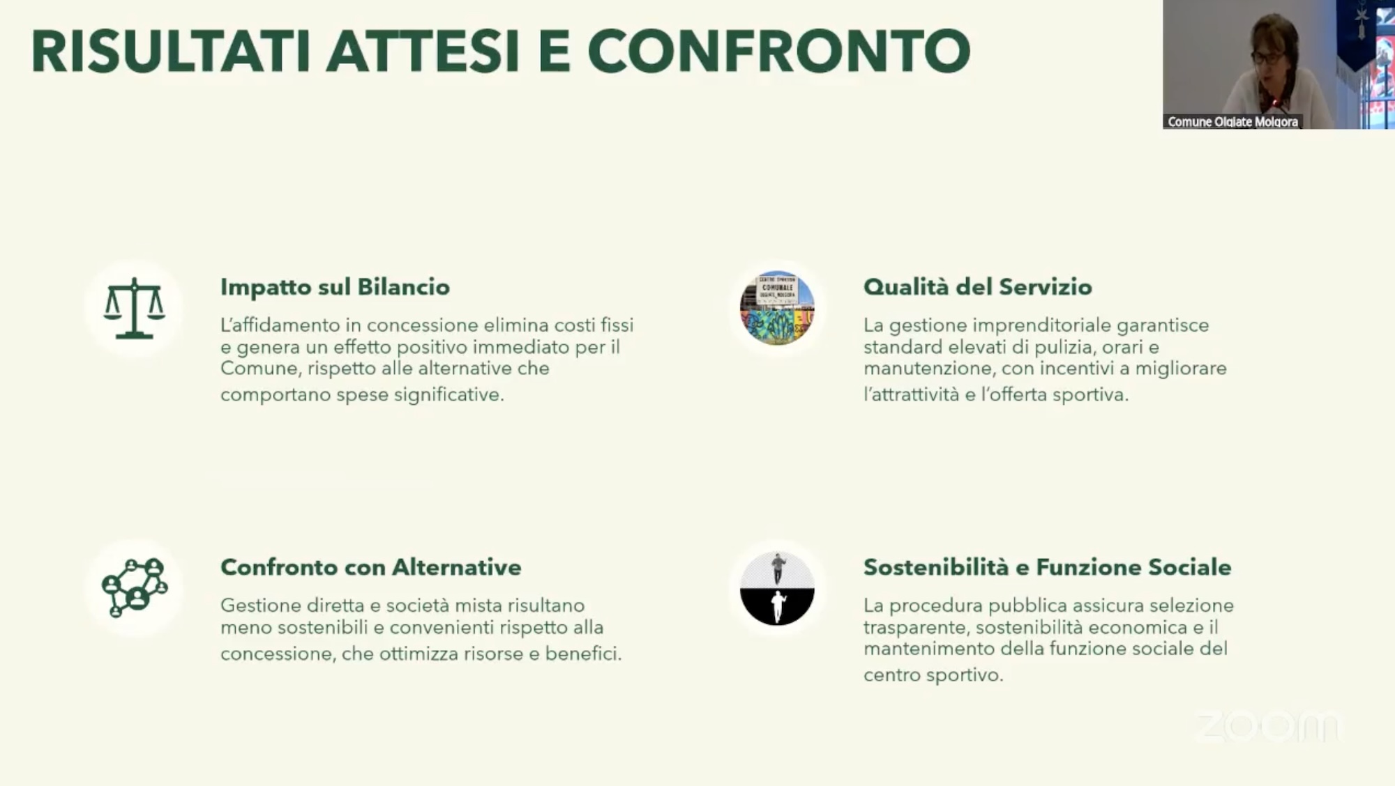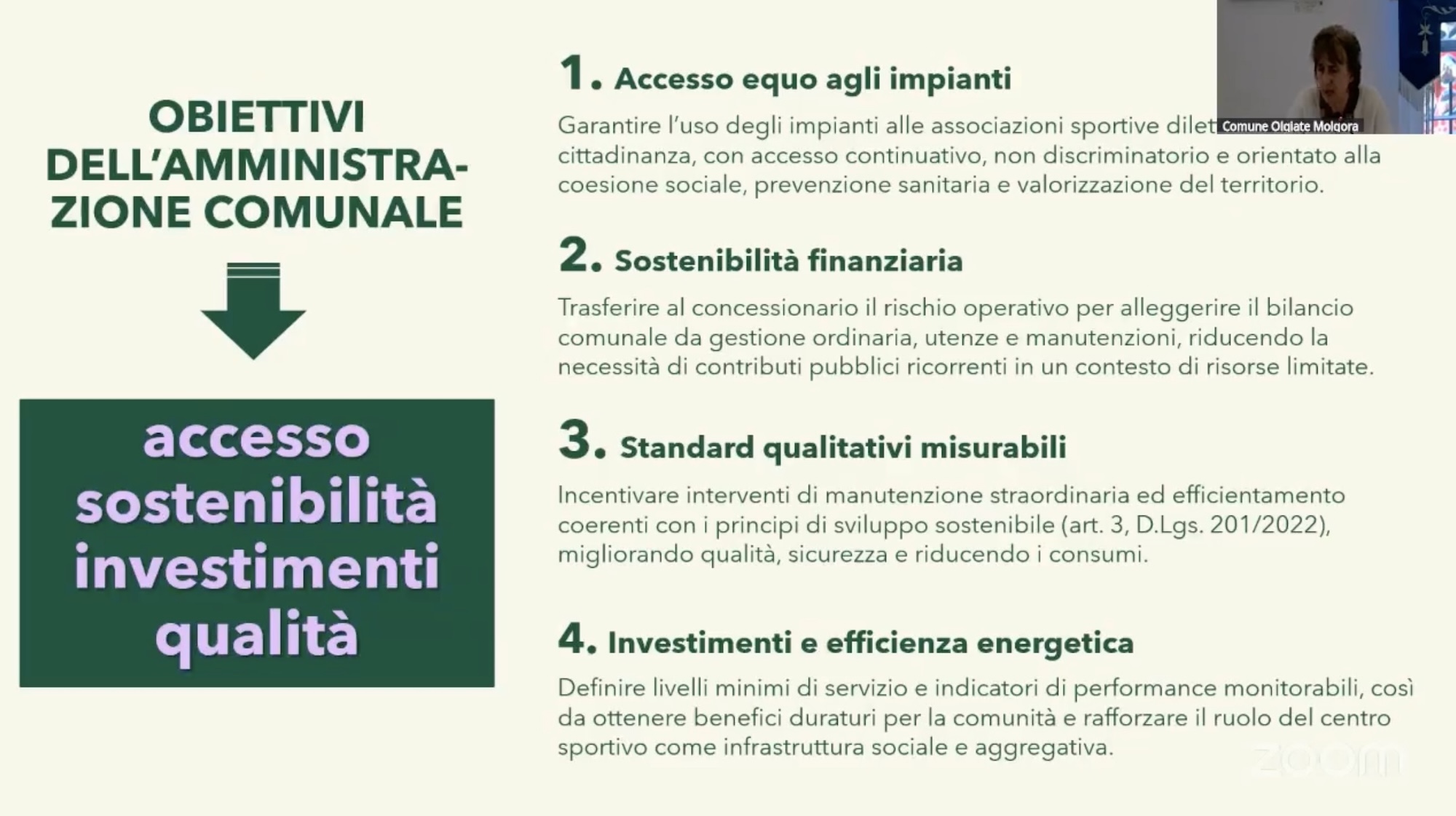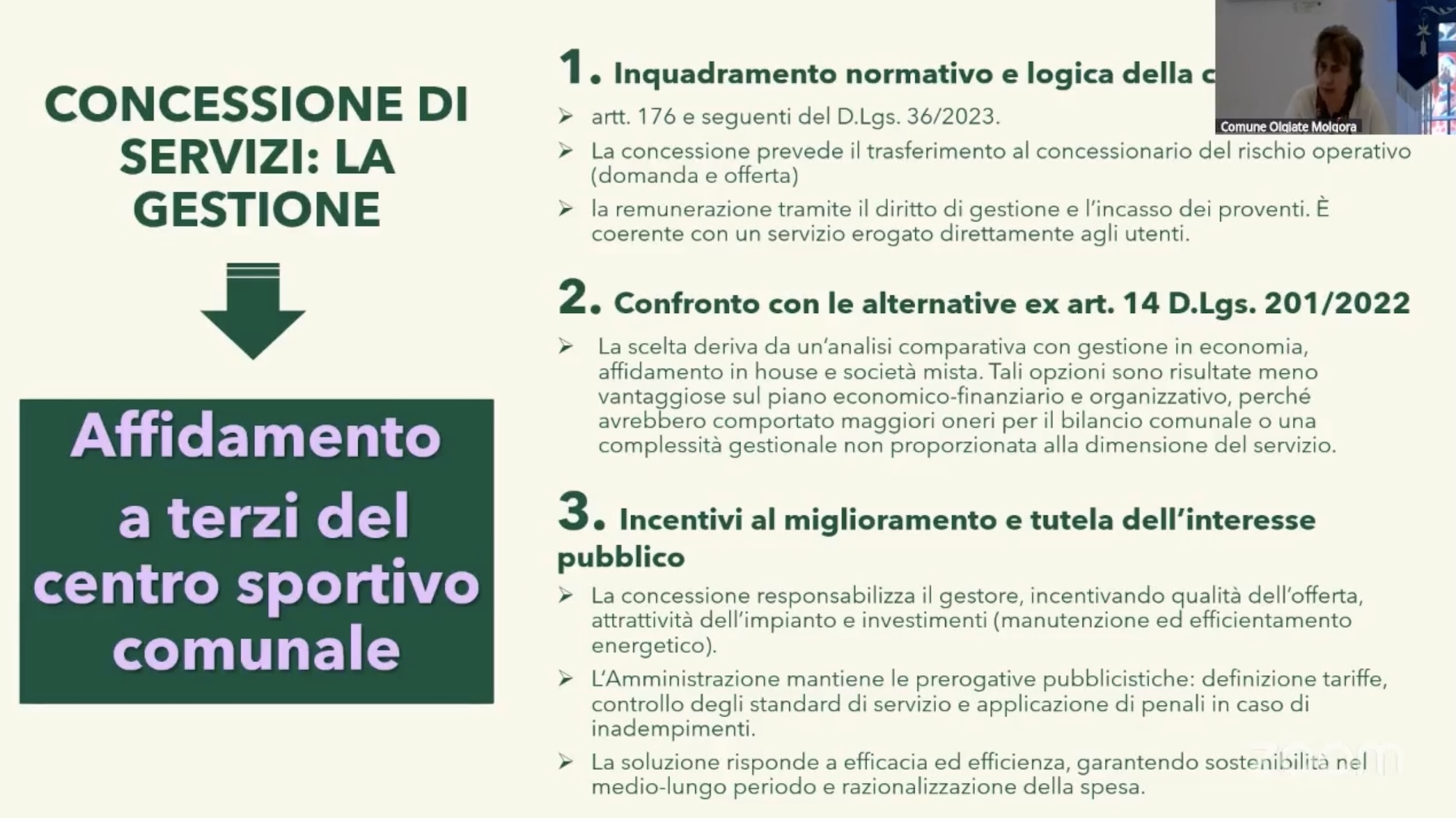 Tra le varie possibilità di scelta per la gestione, il Comune ha optato ancora per la concessione, benché questa non si riferisca al Centro in sé – dunque agli edifici veri e proprio – quanto più ai servizi che in esso vengono erogati. “Questa scelta perché è la migliore in termini di costi e benefici” ha proseguito l’assessore. “Ora il bene fisico resta al Comune, il nuovo gestore avrà solo i servizi, ma vogliamo che vengano garantiti accessibilità, sostenibilità e investimenti”.