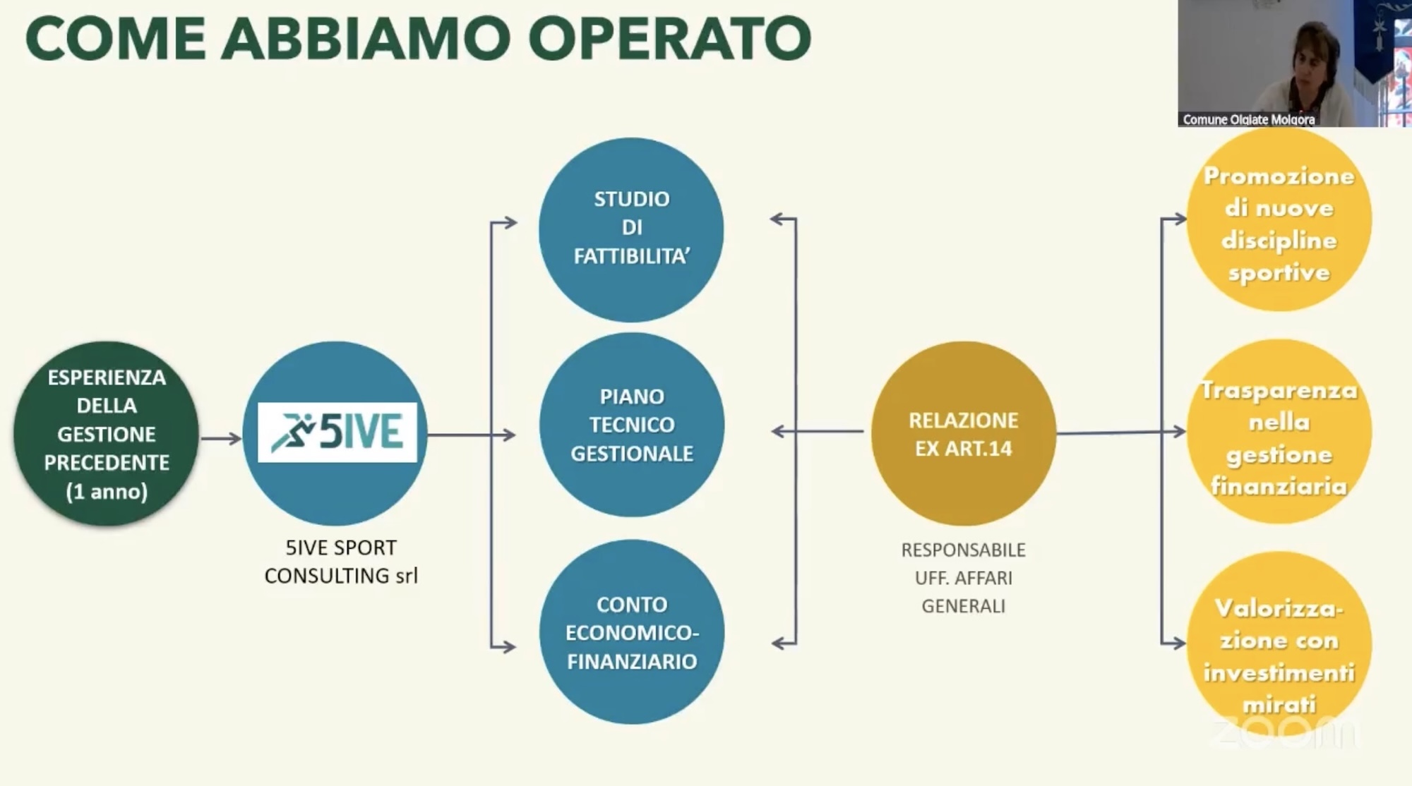 “Lo scorso anno è stata un’esperienza di prova” ha ricordato l’assessore Colombo. “Questo ci ha permesso di prendere coscienza delle potenzialità del nostro Centro Sportivo”. La società a cui si è affidato il Comune è la 5ive Sport Consulting Srl. Dalla relazione è emerso, come era intuibile, che il Centro Sportivo ha un’importante rilevanza economica, data non solo dalle infrastrutture che presenta al suo interno, ma anche dalla sua collocazione in pieno centro paese, accanto per di più alla stazione ferroviaria.