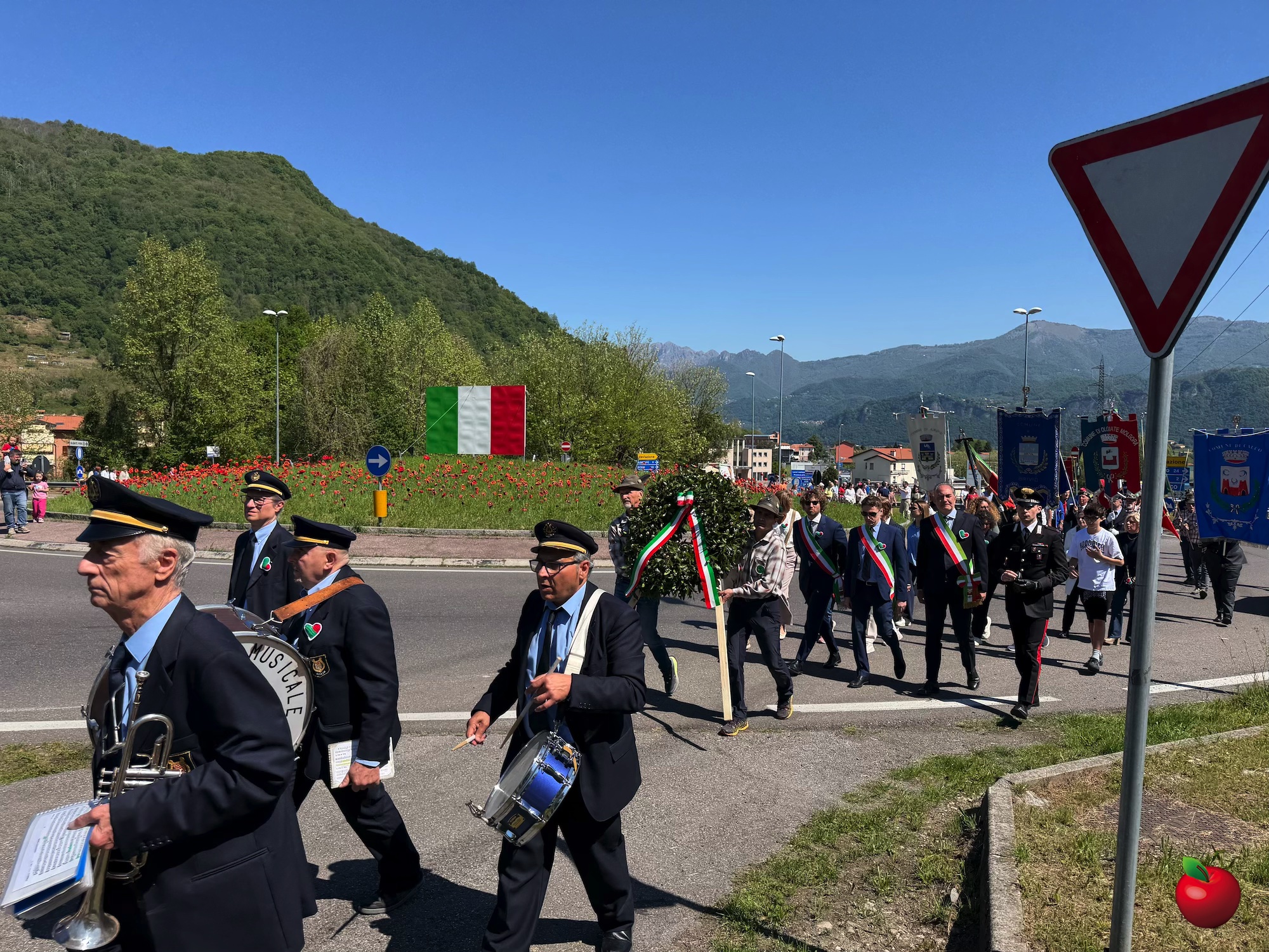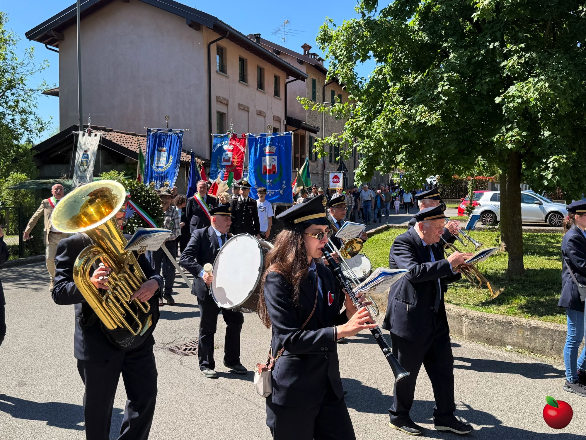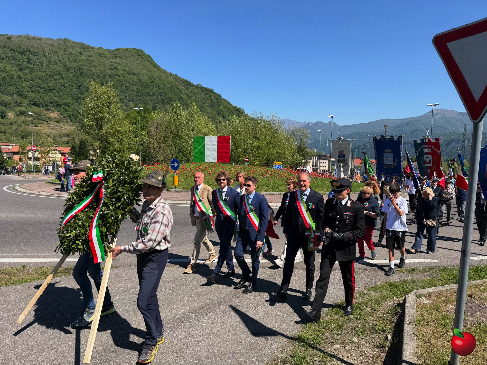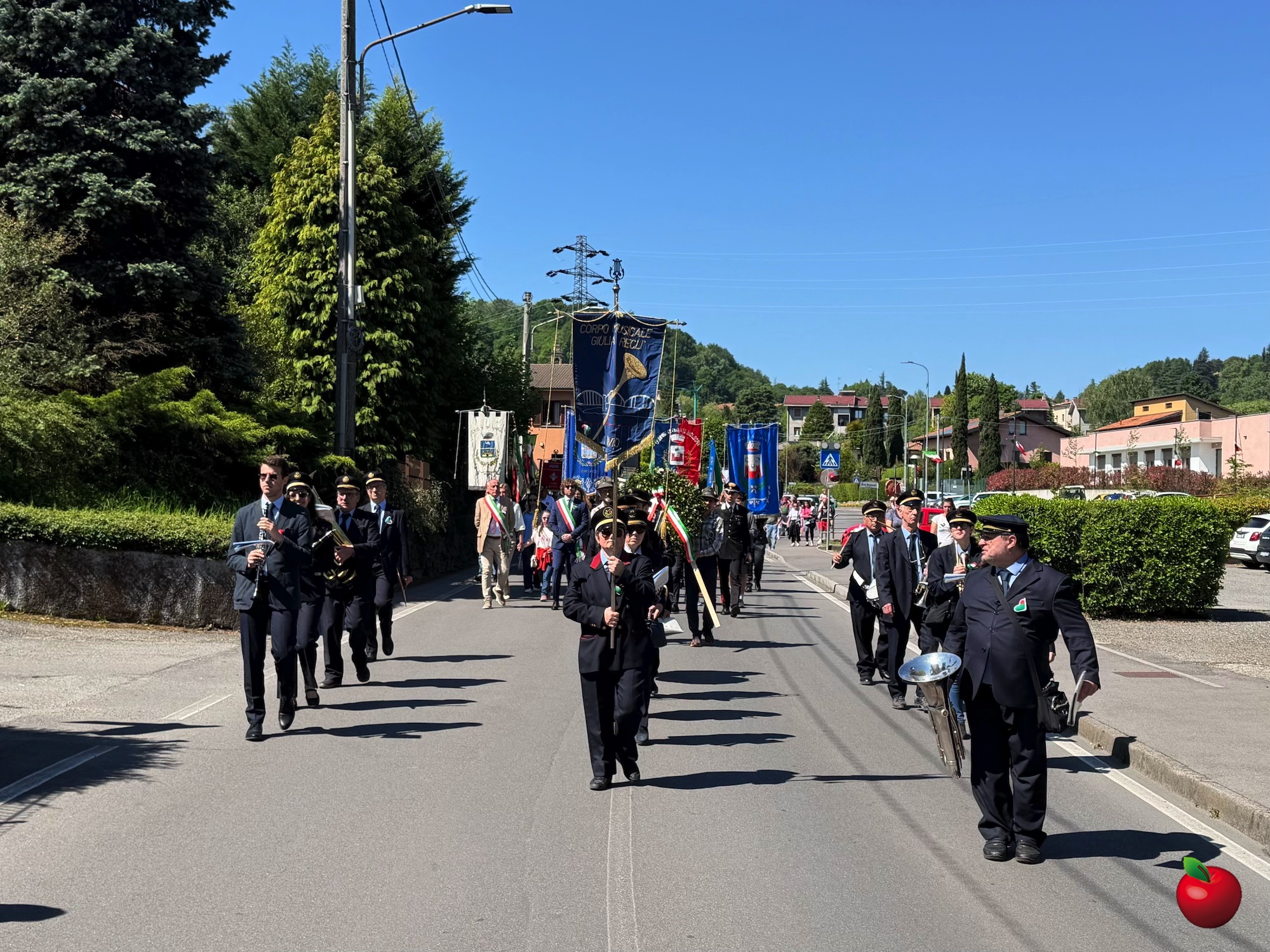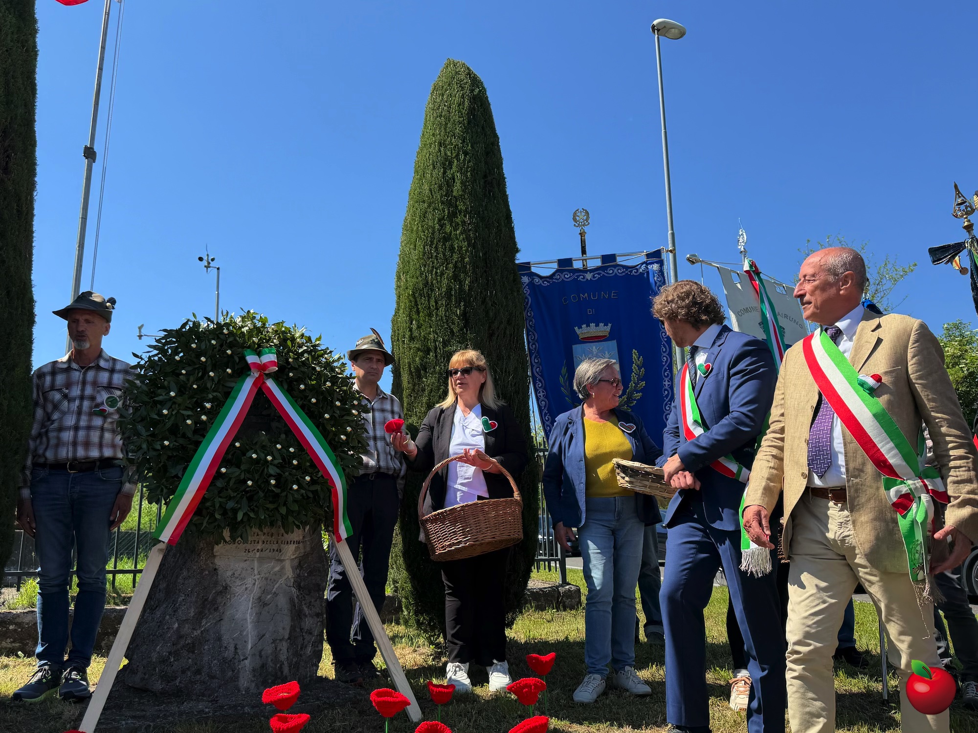 Come da consuetudine, la giornata è iniziata nei singoli comuni con la deposizione delle corone ai monumenti ai caduti, sia nei centri cittadini sia nelle frazioni, in un momento raccolto e partecipato. Successivamente, intorno alle 10:30, amministratori, cittadini e rappresentanti delle associazioni si sono riuniti nel parcheggio della Casa dei Ragazzi IAMA Onlus, punto di partenza del corteo commemorativo.