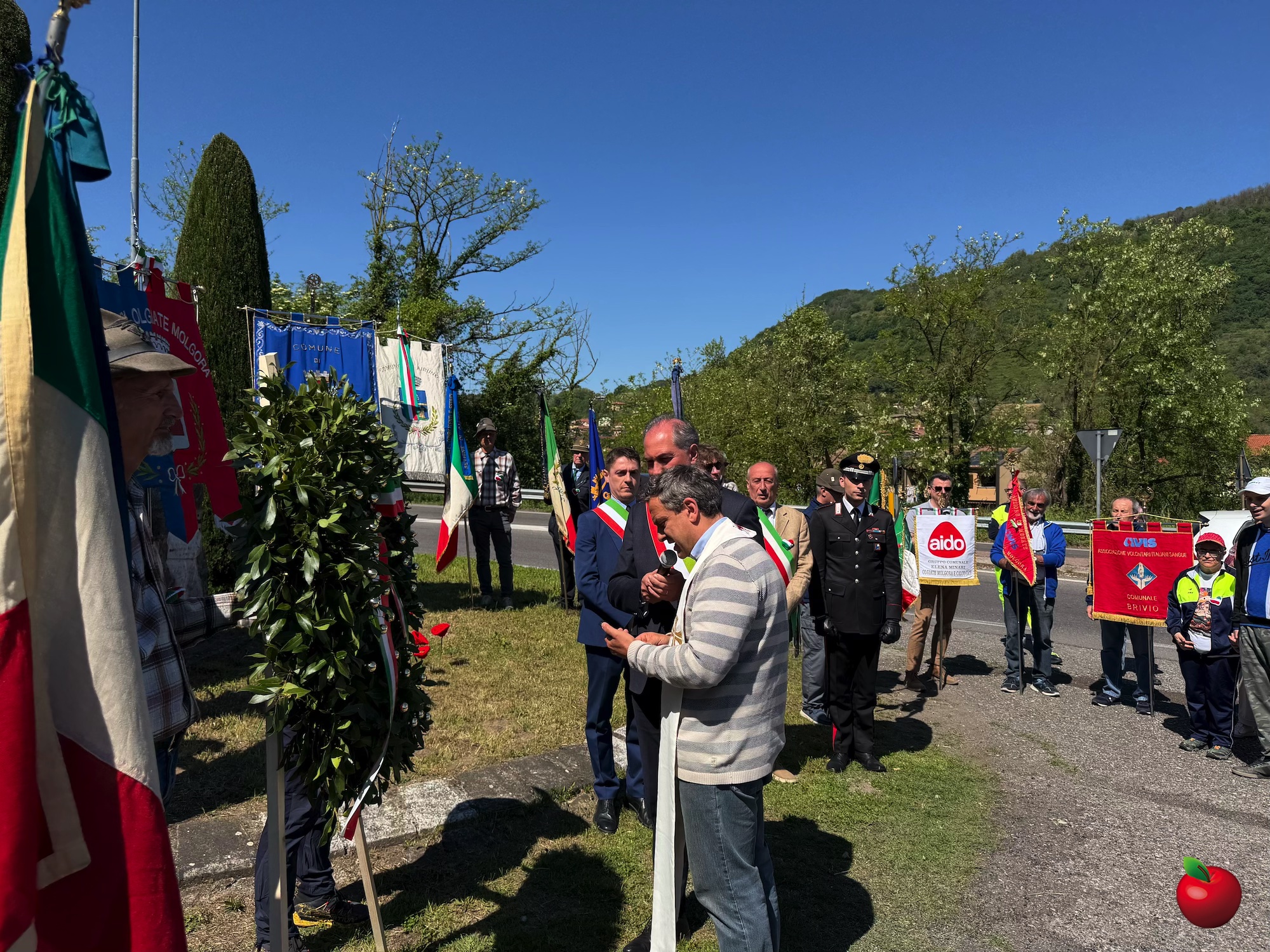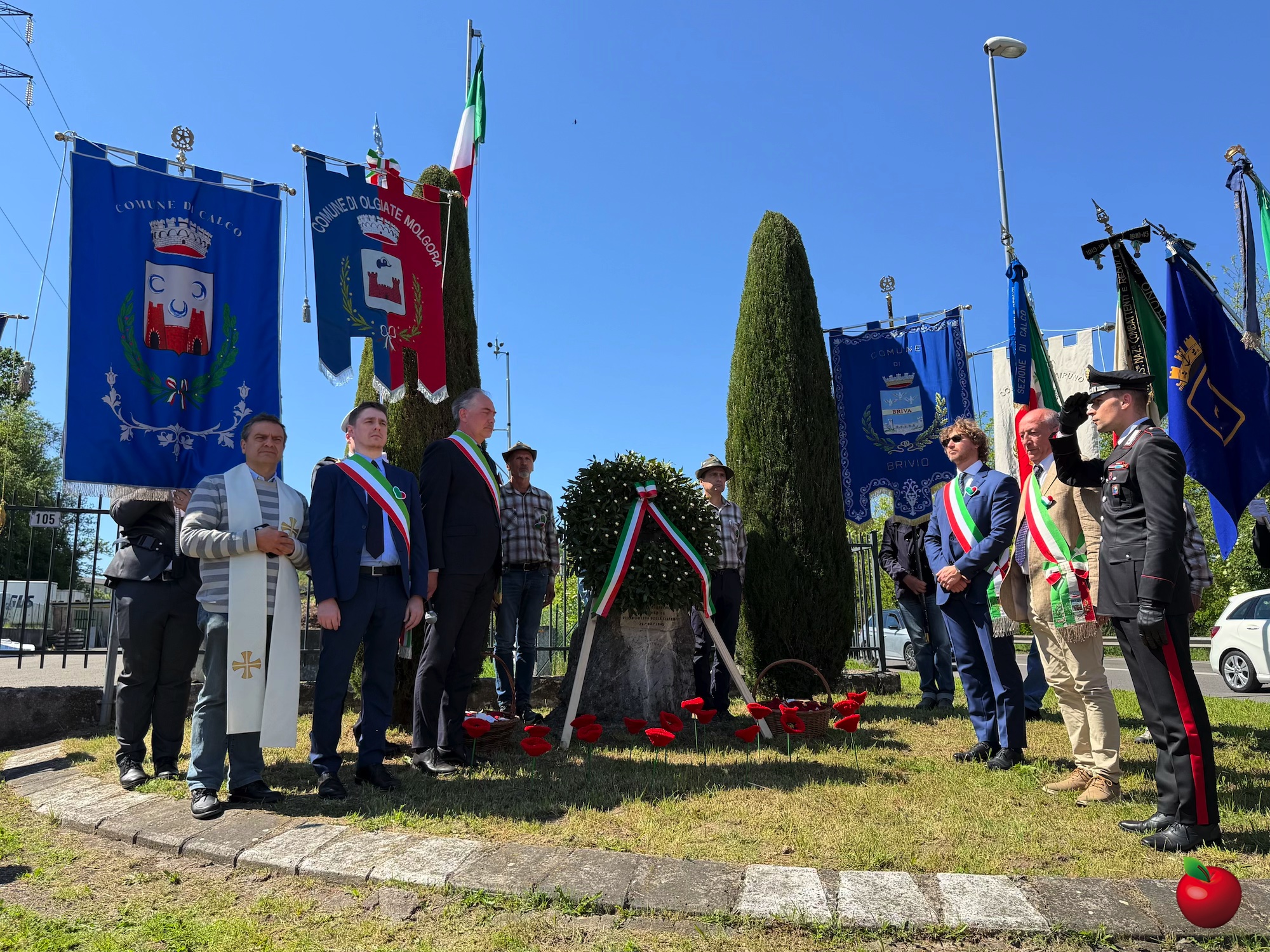 Presenti, in rappresentanza dei Comuni, il sindaco di Airuno Gianfranco Lavelli, il sindaco di Brivio Federico Airoldi, il sindaco di Calco Stefano Motta e il vicesindaco di Olgiate Molgora Matteo Fratangeli, incaricato quest’anno del discorso ufficiale, oltre al comandante della stazione dei Carabinieri di Brivio, maresciallo Umberto Bonetto.