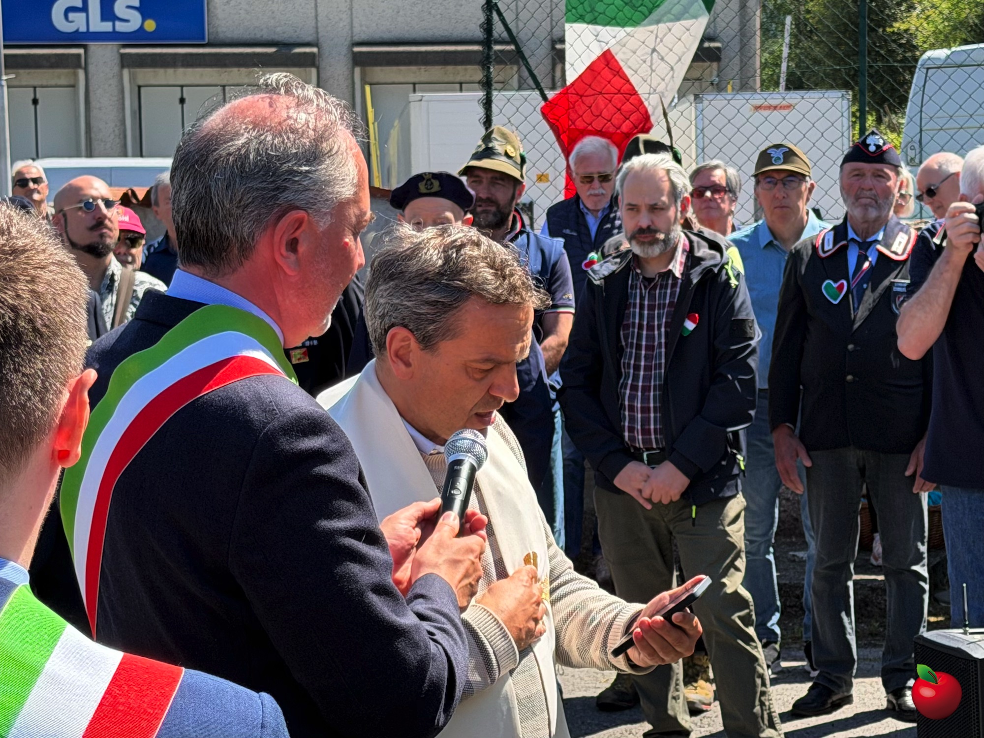 Davanti al monumento si è svolto il momento più solenne della cerimonia, l’alzabandiera e la benedizione della corona, impartita da don Giuseppe Sala, che ha guidato i presenti in un momento di preghiera.