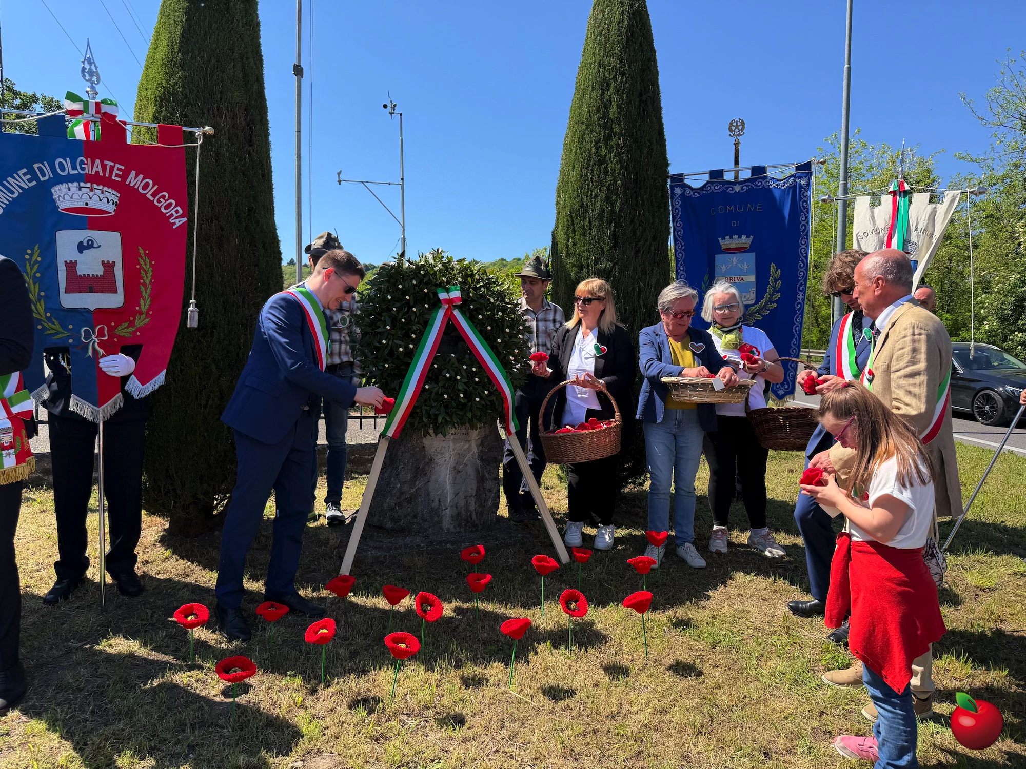 A concludere gli interventi è stato il sindaco di Calco, Stefano Motta, che ha ringraziato sentitamente i presenti e tutte le associazioni coinvolte — Pro Loco, AIDO, AVIS, gruppi alpini, associazione carabinieri in congedo, marinai d’Italia — con un’attenzione particolare per l’impegno creativo e simbolico dell’associazione Artelab e del gruppo “Fili e Trame”. Le loro decorazioni all’uncinetto, con papaveri e cuoricini tricolore distribuiti ai partecipanti, hanno dato un tocco visivo e umano alla celebrazione. Particolarmente significativo il dono dei papaveri fatti all’uncinetto contenenti semi veri, simbolo di memoria viva e da coltivare nel tempo.