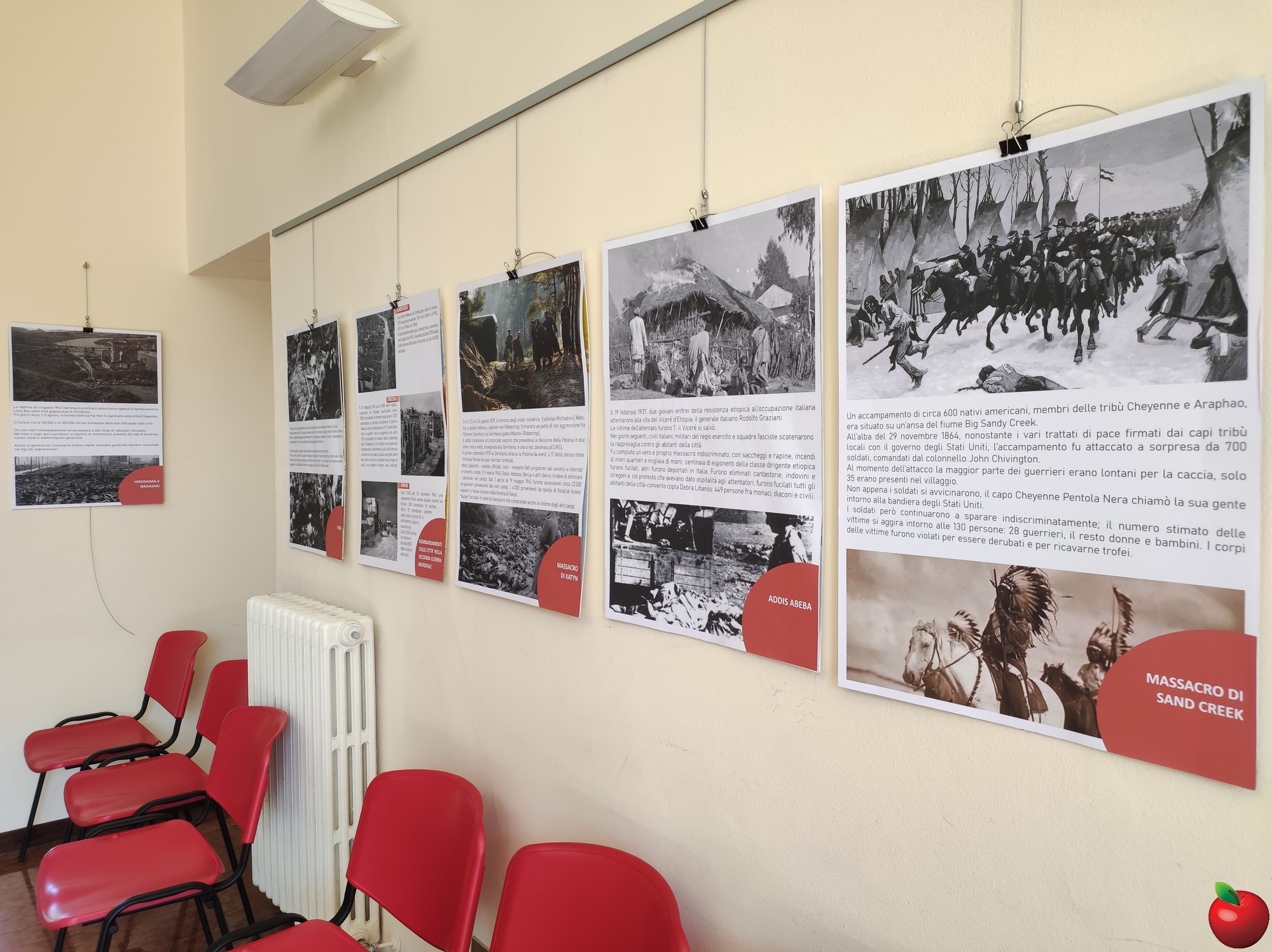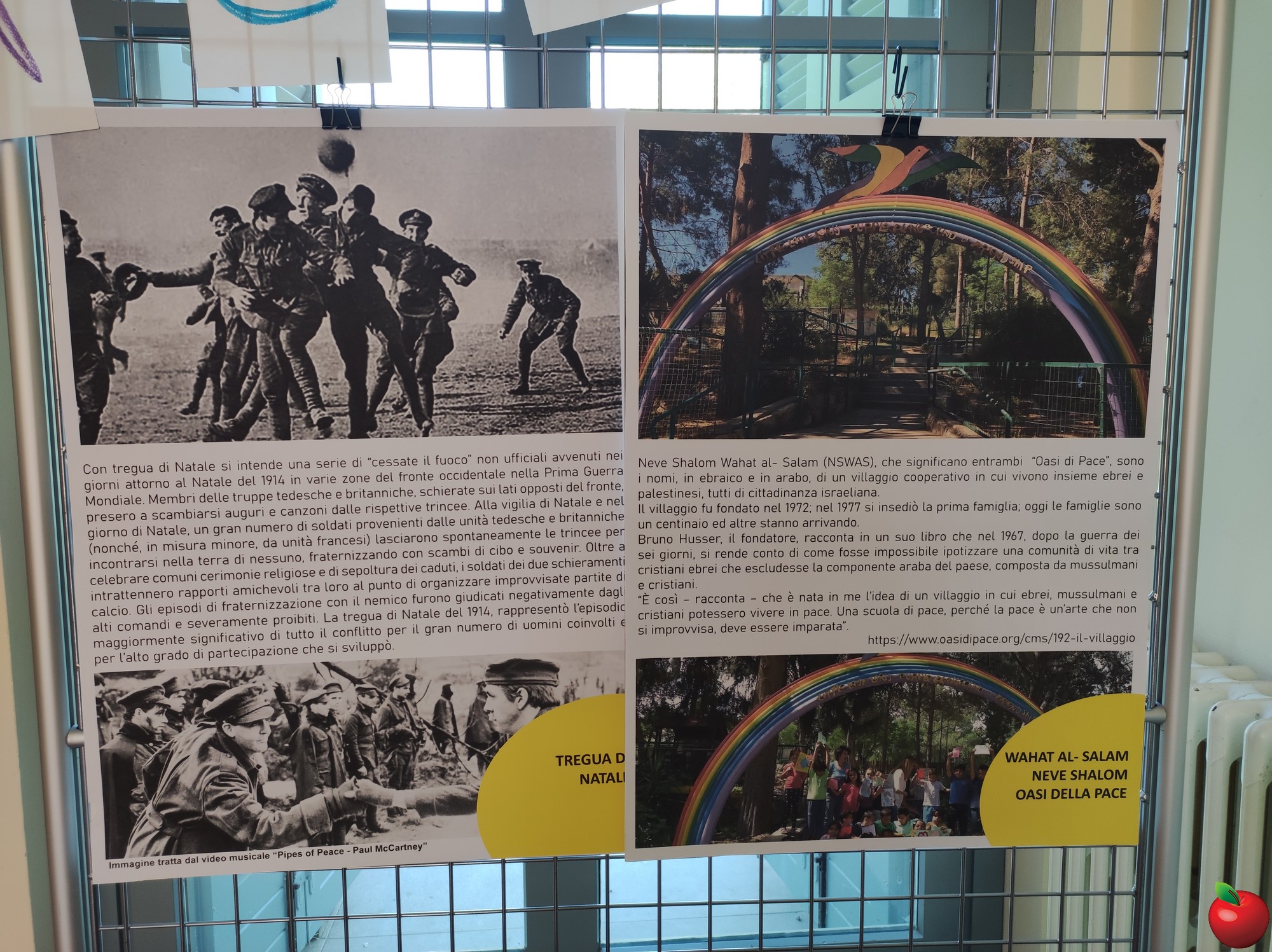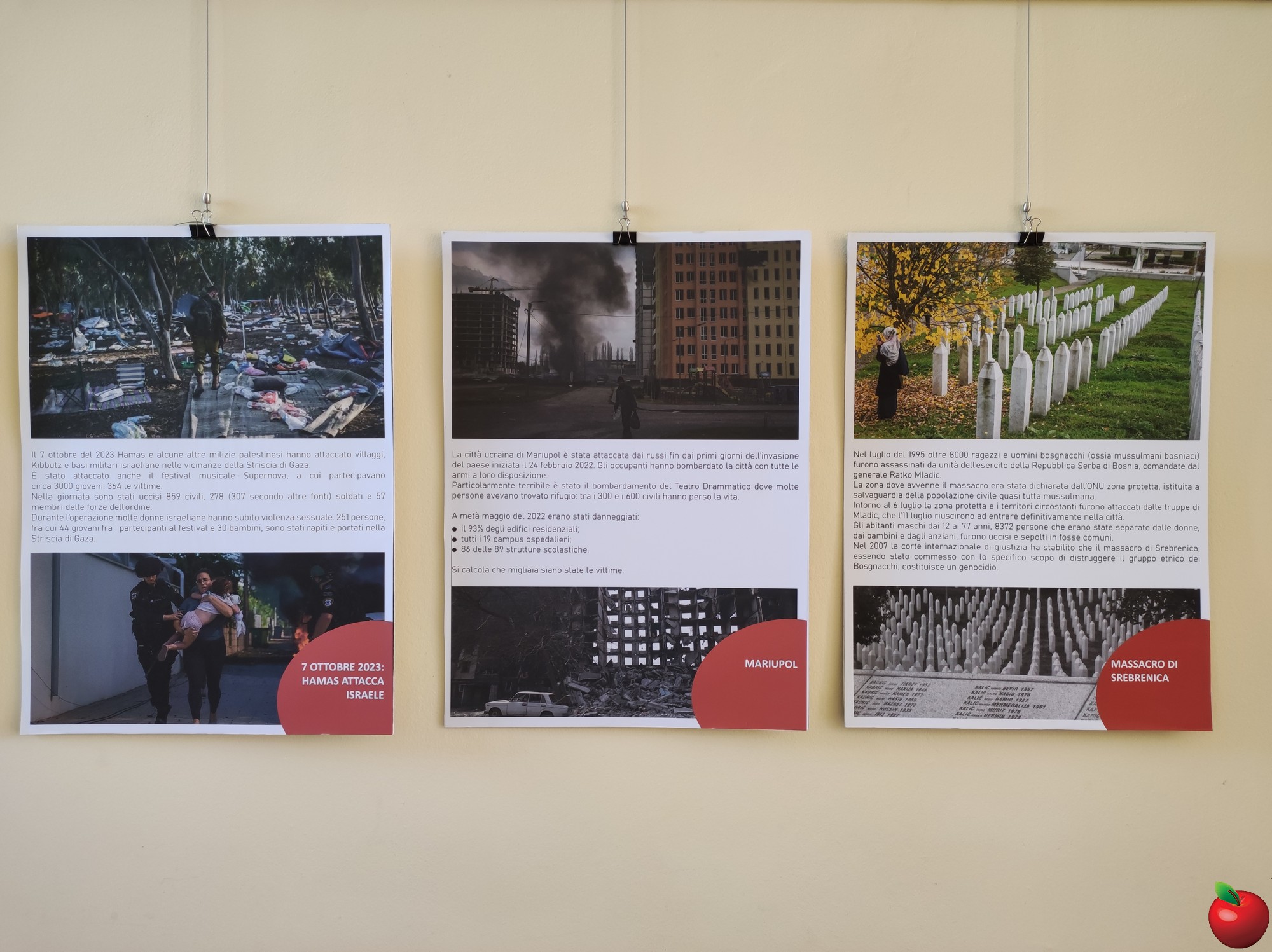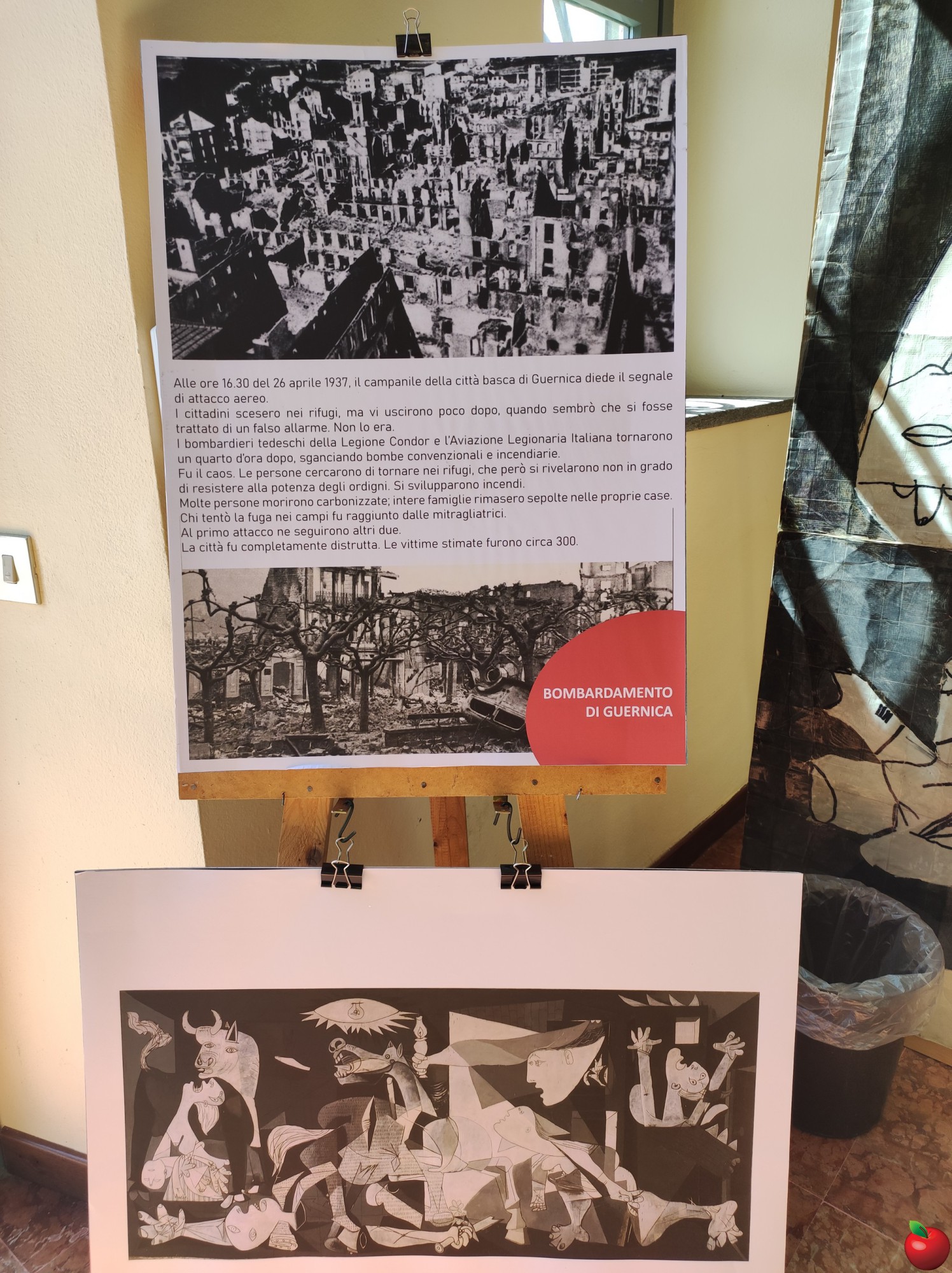 La mostra, che sarà visitabile lunedì 27, mercoledì 29 aprile e venerdì 1° maggio è stata allestita da Denise Motta, Enrico Seregni, Giovanna Villa, Laura Mandelli e Marco Bartesaghi grazie al “Guernica” realizzato dagli alunni della quinta elementare di Adele Recalcati nel 1999 e al contributo di Maurizio Besana e Akram Karouache.
