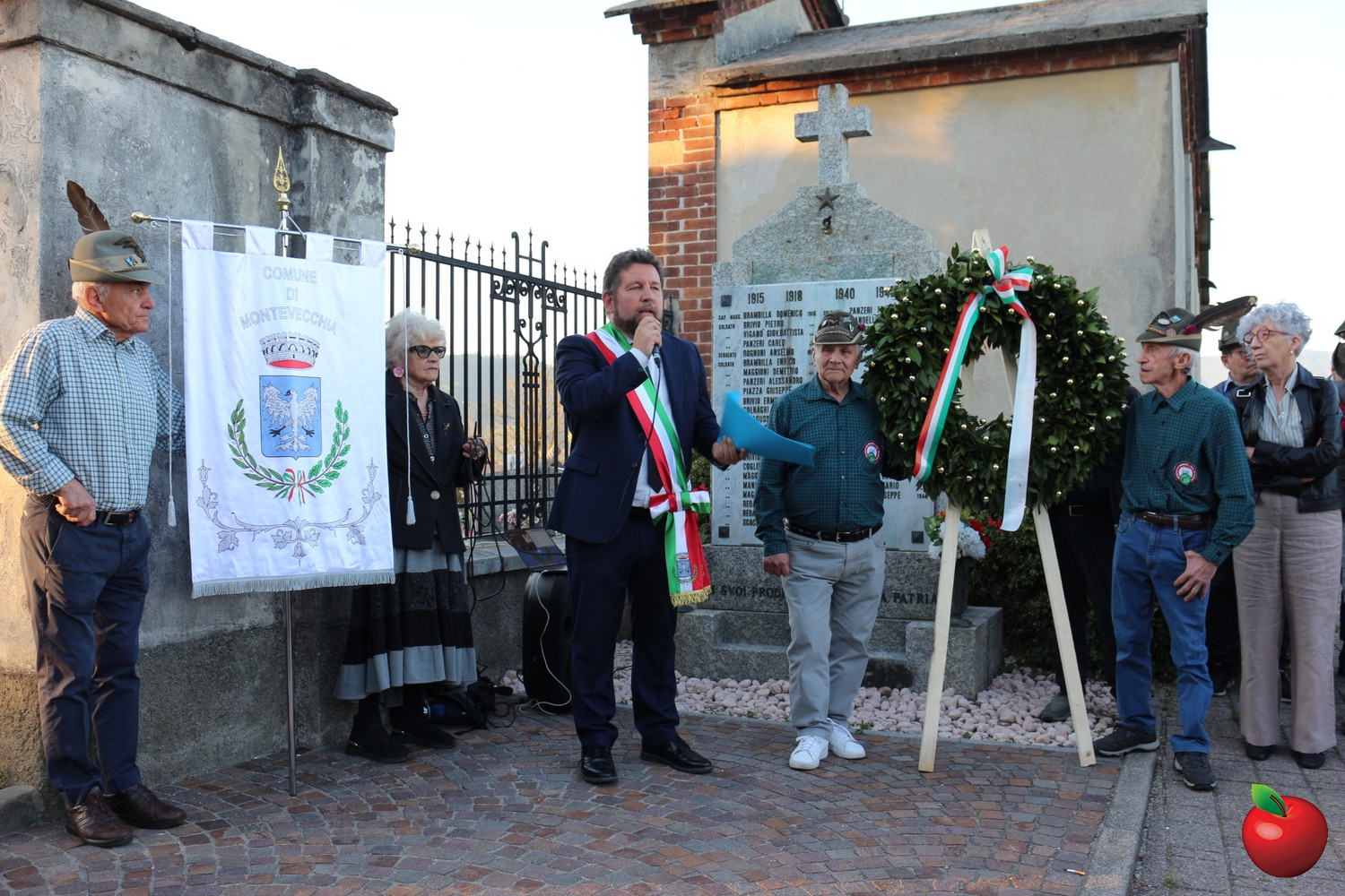 Conclusa la parte religiosa, i partecipanti si sono mossi in corteo per raggiungere il Monumento ai Caduti, posizionato fuori dal cimitero in alta collina, per il momento centrale e più sentito della manifestazione. Qui, alla presenza dei cittadini, della sottosezione degli Alpini di Montevecchia e dei rappresentanti del consiglio comunale, il sindaco Ivan Pendeggia ha dato il via a quello che ha definito un "percorso della memoria" attraverso cinque testi fondamentali.